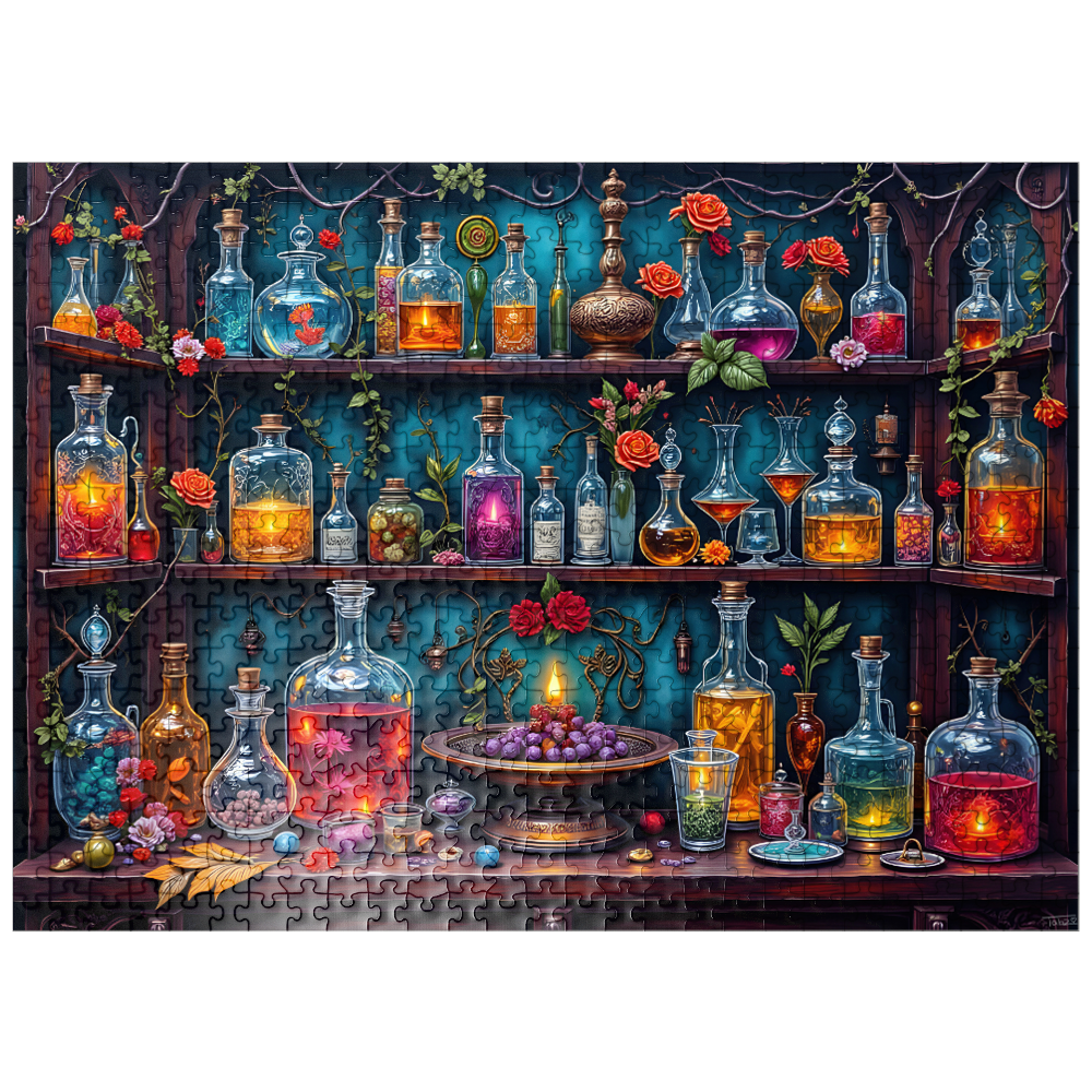 Enchanted Apothecary Shelf Glowing Potions