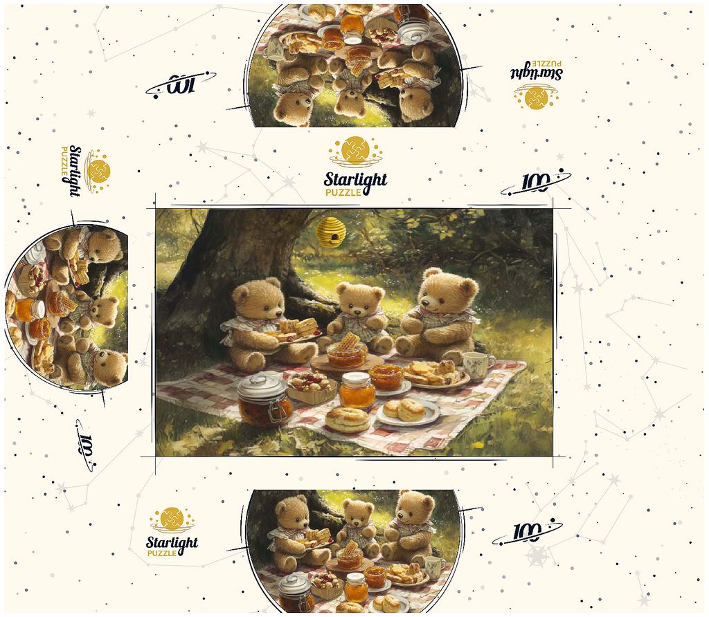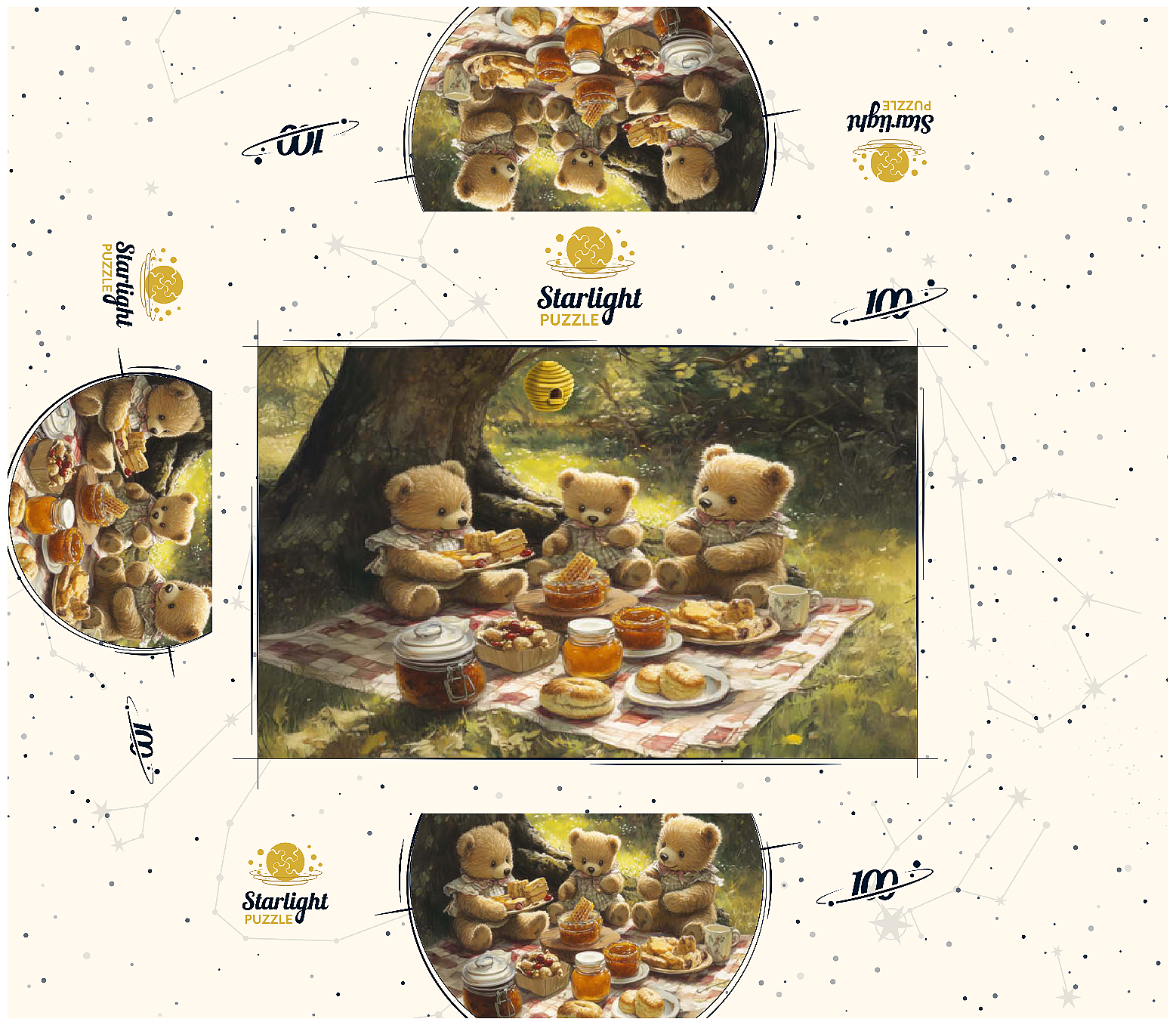 Adorable Teddy Bear Picnic in a Sunny Forest