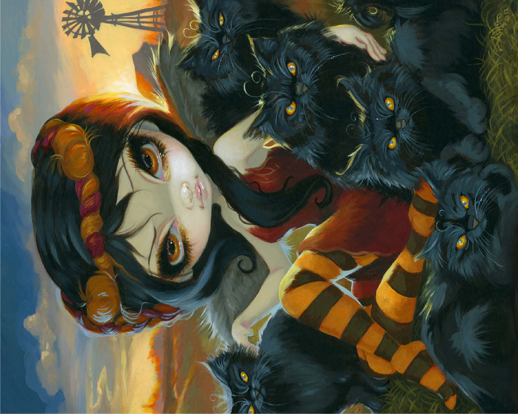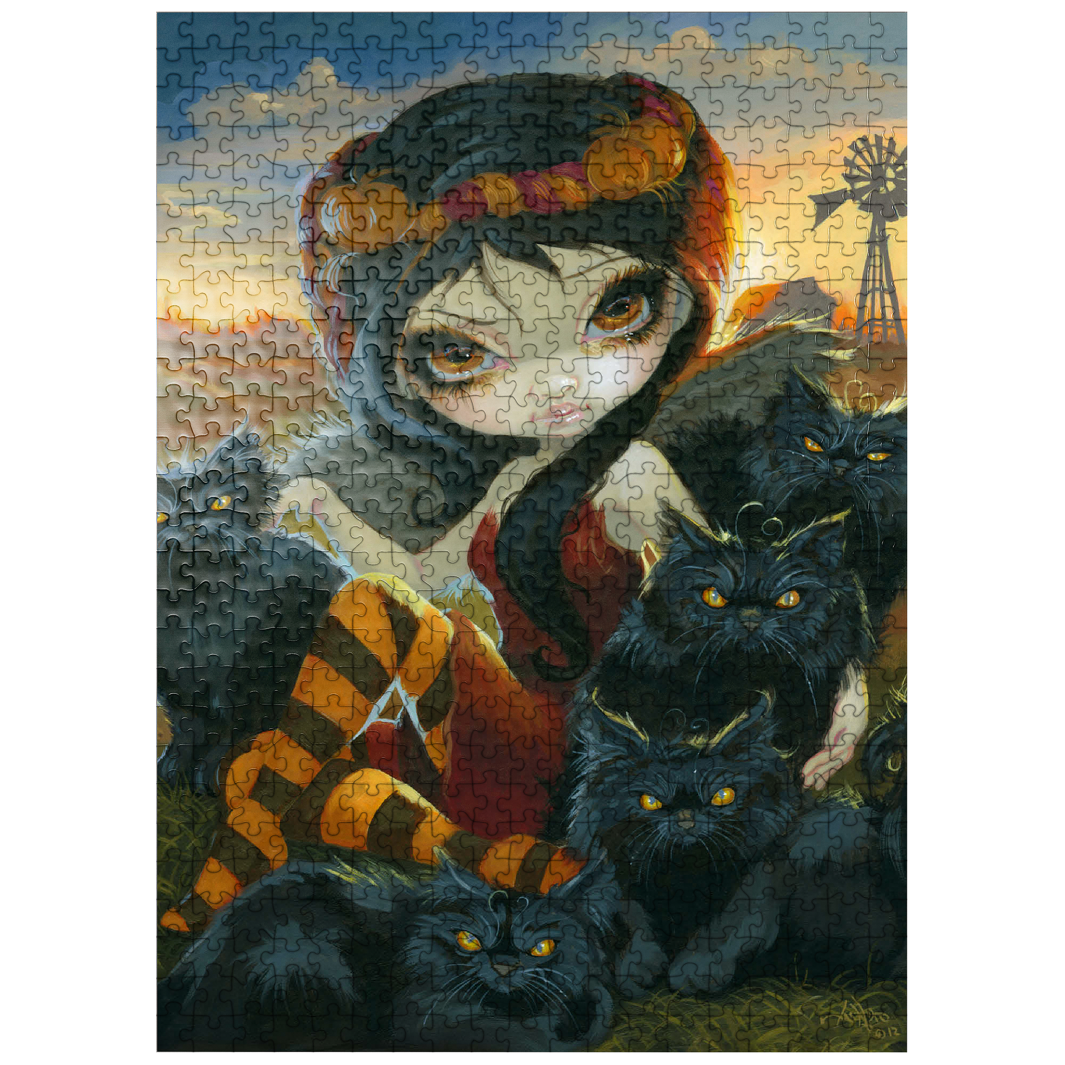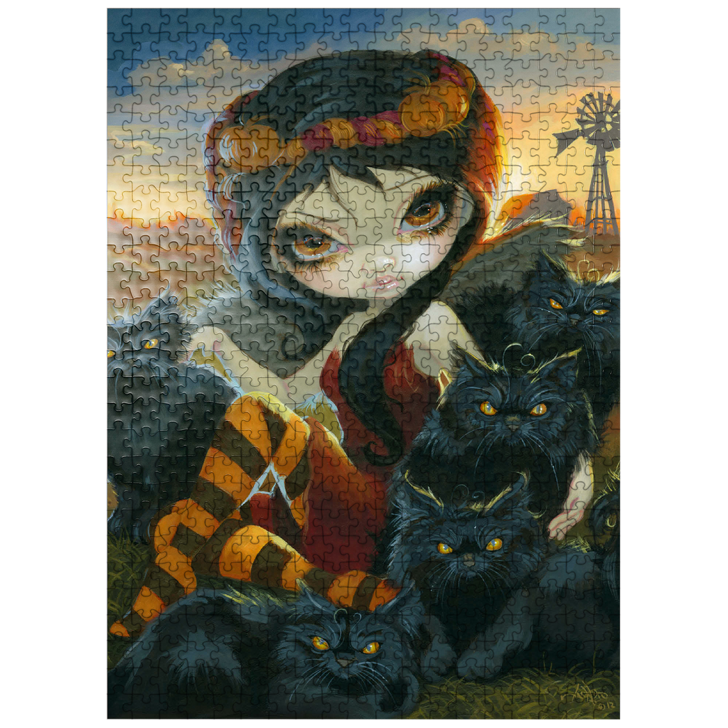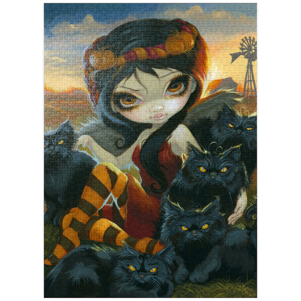 Solve a spooky cute puzzle! Uncover the Halloween charm of -Autumn Kitties,- featuring a dark angelic fairy amidst a gathering of adorably sinister black kittens on a farm. Piece together this unique blend of Halloween vibes and feline sweetness. A purrfectly enchanting puzzle for cat lovers and those who enjoy a touch of the macabre!