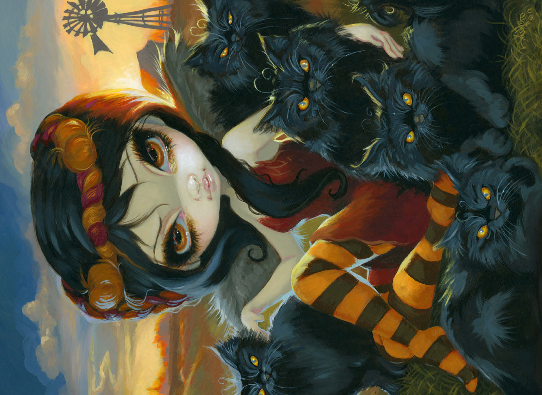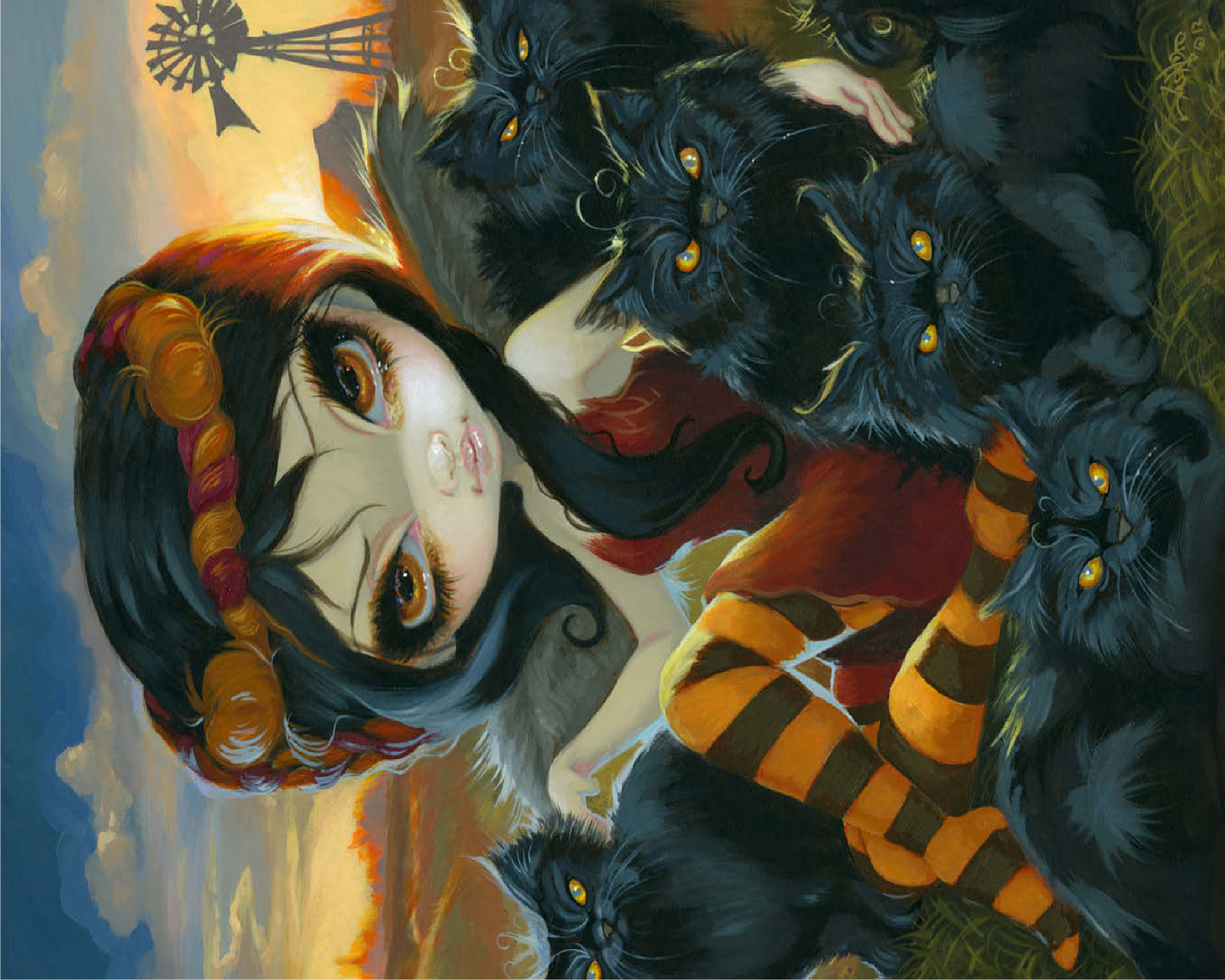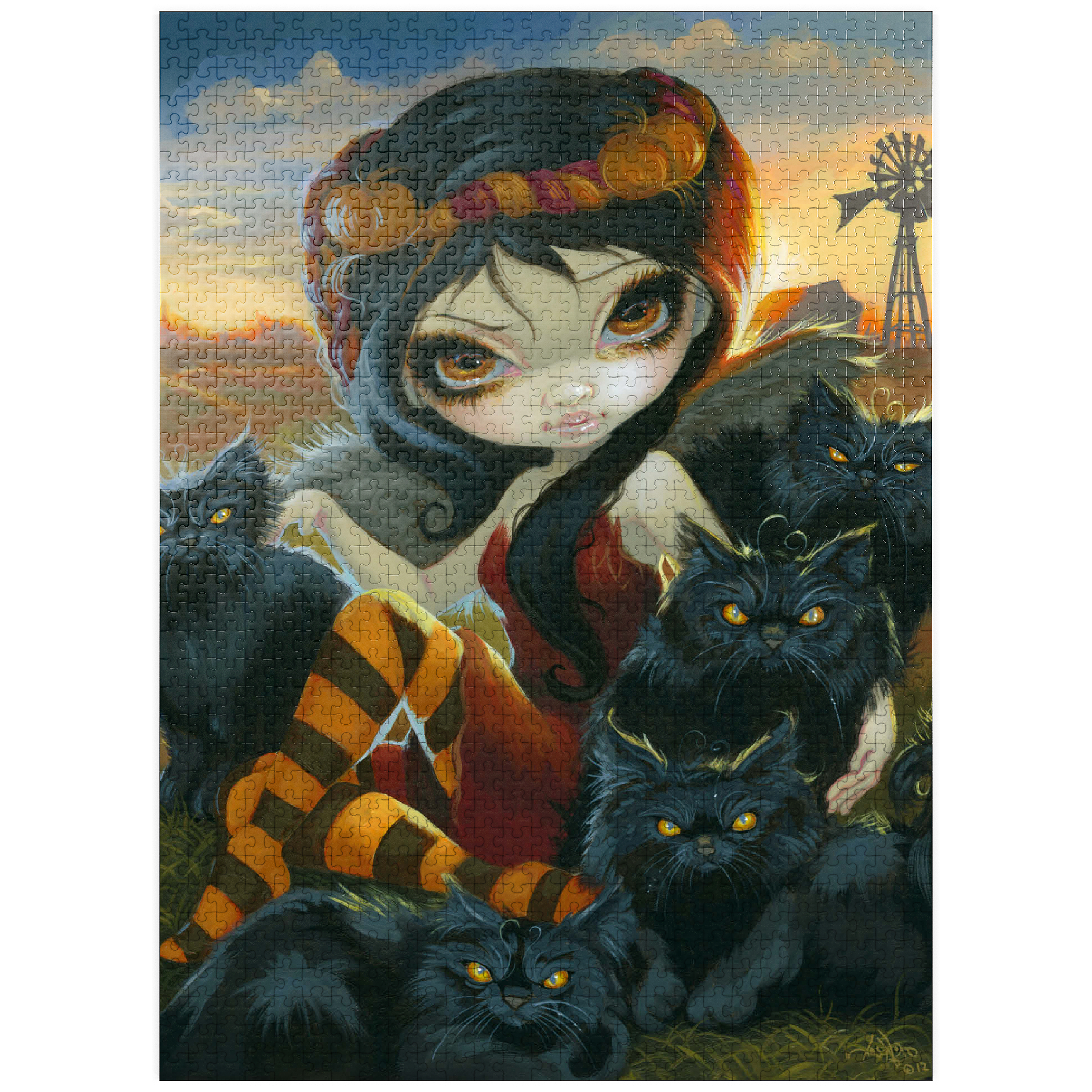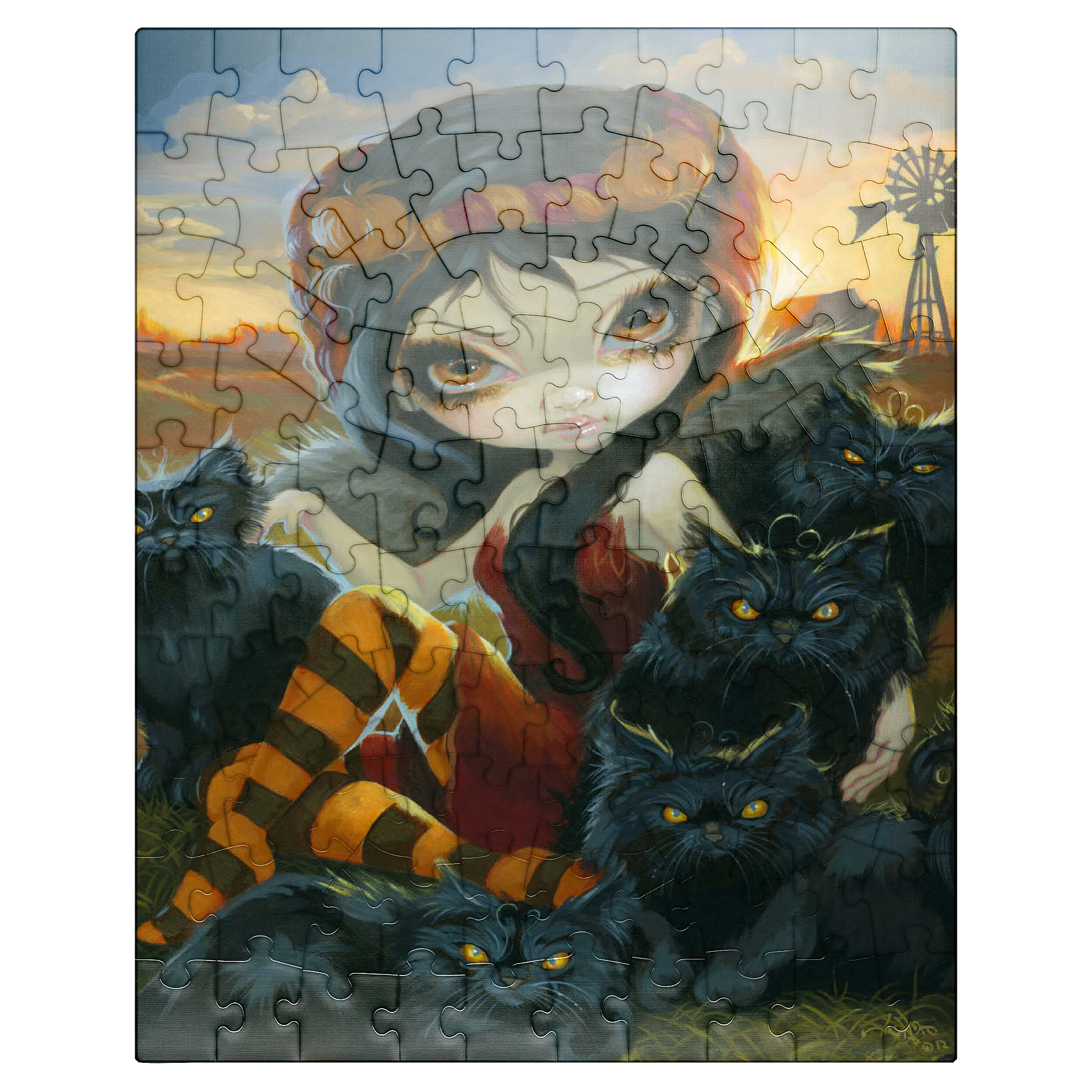 Solve a spooky cute puzzle! Uncover the Halloween charm of -Autumn Kitties,- featuring a dark angelic fairy amidst a gathering of adorably sinister black kittens on a farm. Piece together this unique blend of Halloween vibes and feline sweetness. A purrfectly enchanting puzzle for cat lovers and those who enjoy a touch of the macabre!