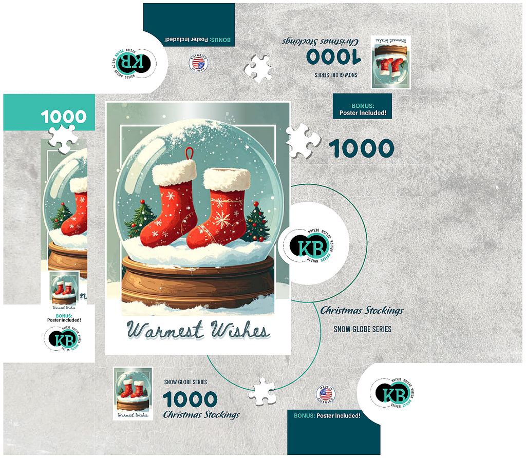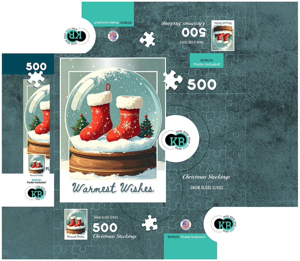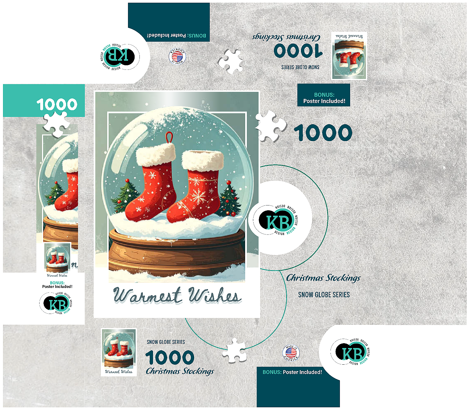 The Snow Globe Series puzzles are a whimiscally nostalgic way to celebrate the magic of the season. Choose two or more of our most treasured designs to create a stunning collage of your favorite images and adorn your walls for the holiday!