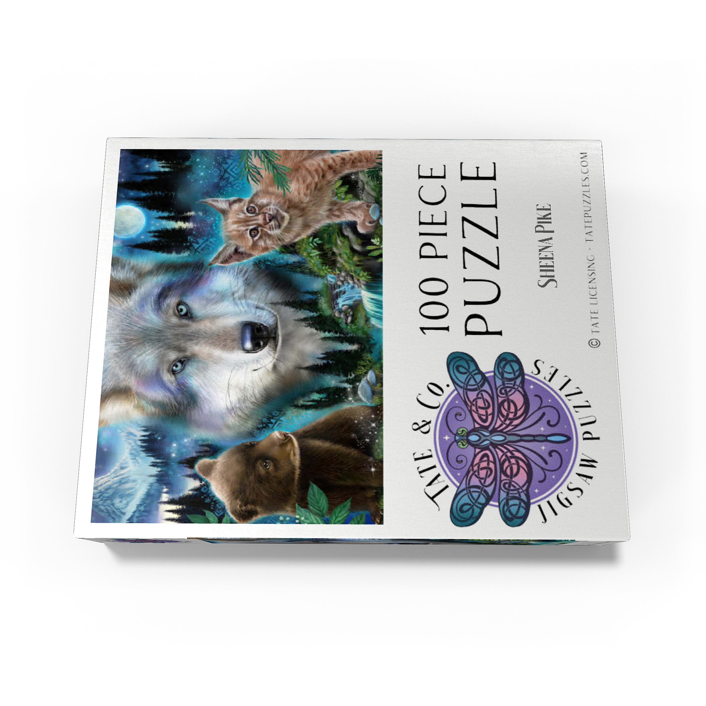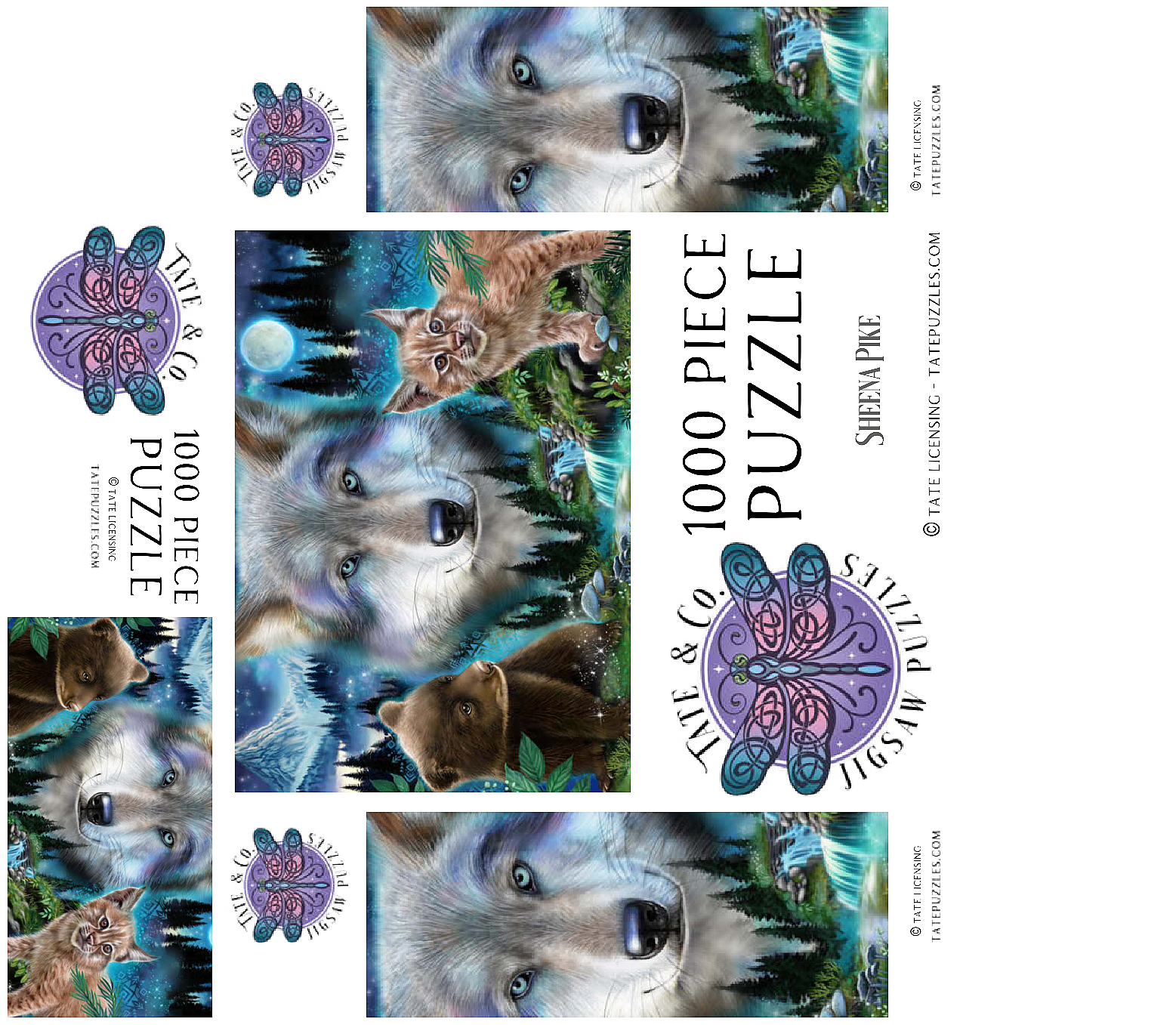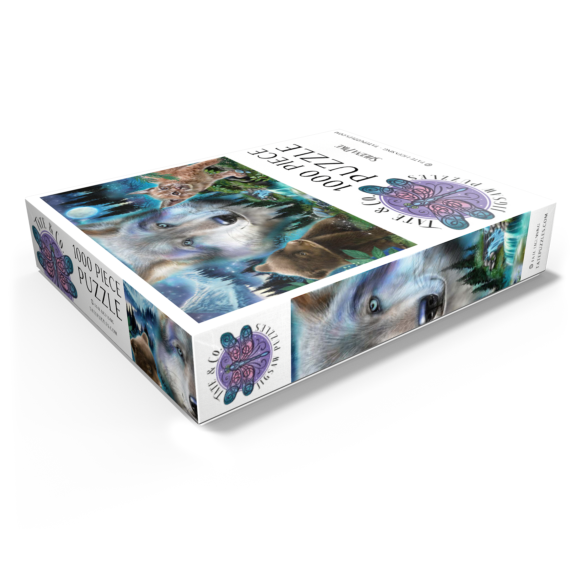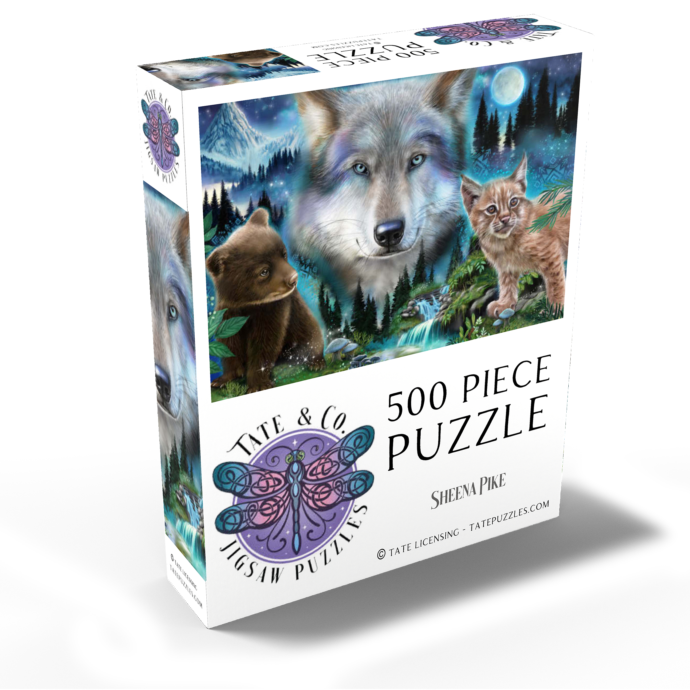 Immerse yourself in the enchanting wilderness with this stunning wildlife puzzle, by Sheena Pike featuring a majestic wolf, a playful bear cub, and a curious lynx. Set against a breathtaking backdrop of misty forests, cascading waterfalls, and a glowing moon, this puzzle captures the serene beauty of nature. The vibrant colors of the animals' fur and the mystical ambiance of the forest evoke a sense of wonder and tranquility. Ideal for nature enthusiasts and puzzle lovers alike, this captivating scene offers a relaxing challenge that transports you into the heart of the wild. Perfect for cozy evenings or as a thoughtful gift for those who appreciate the beauty of the natural world.
