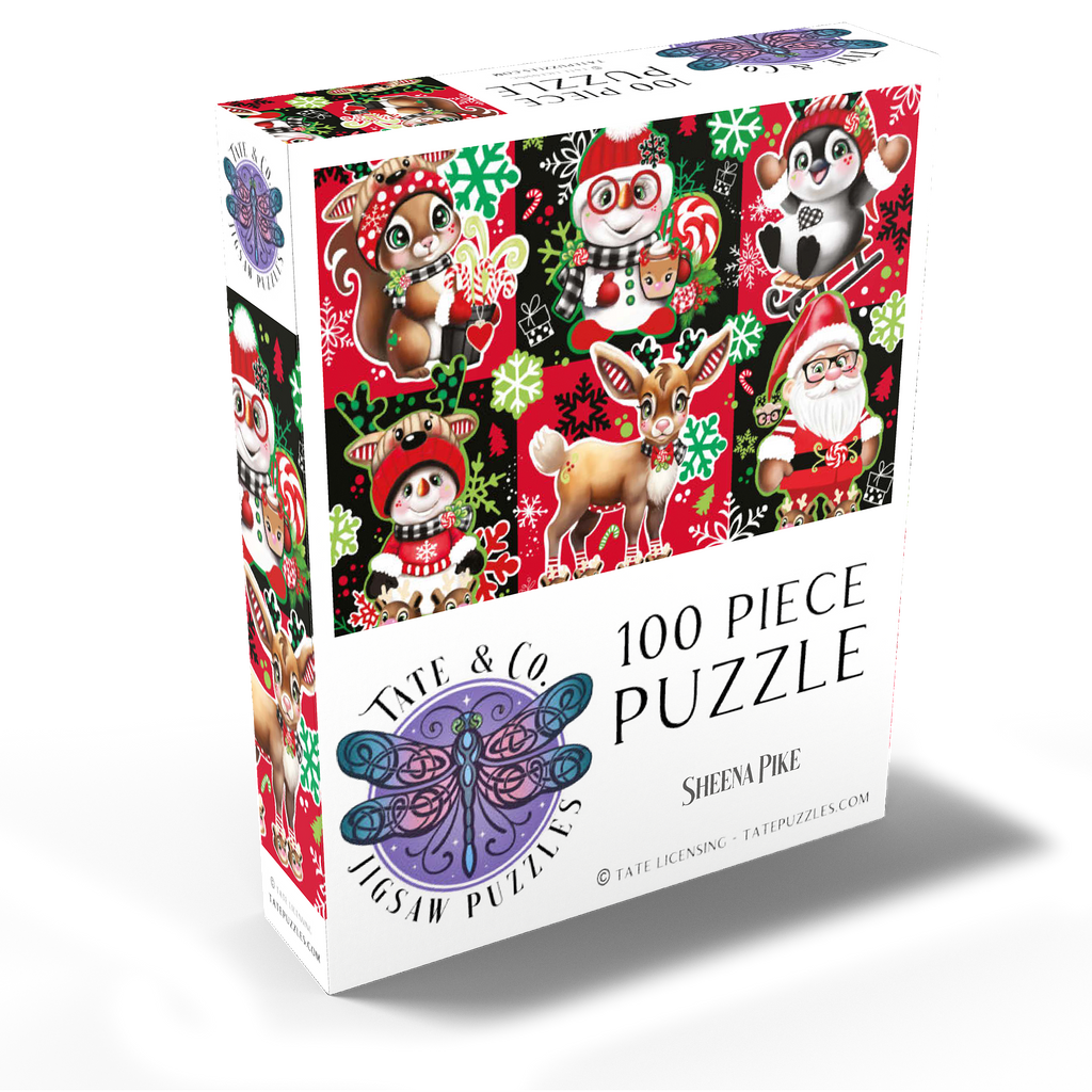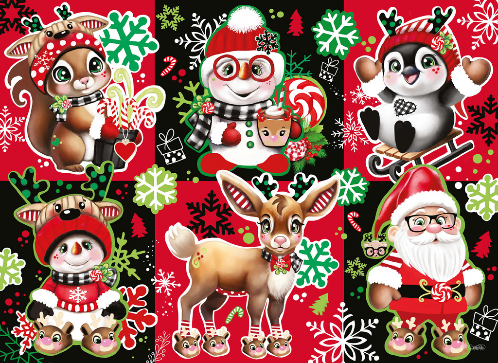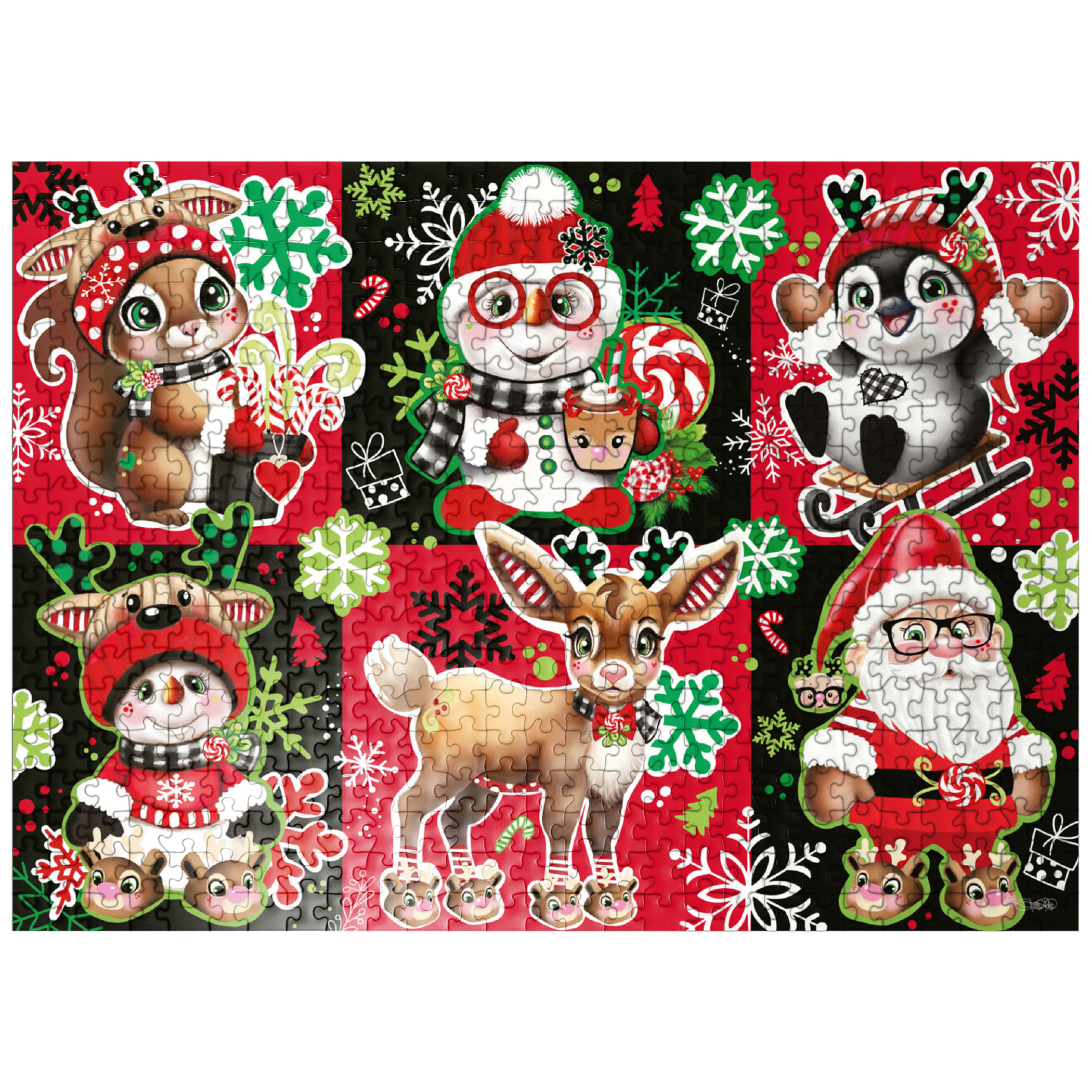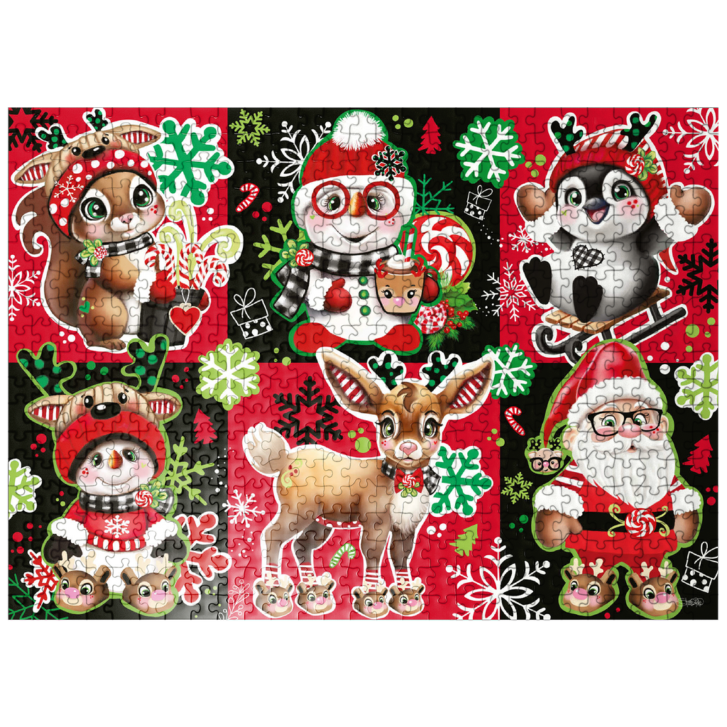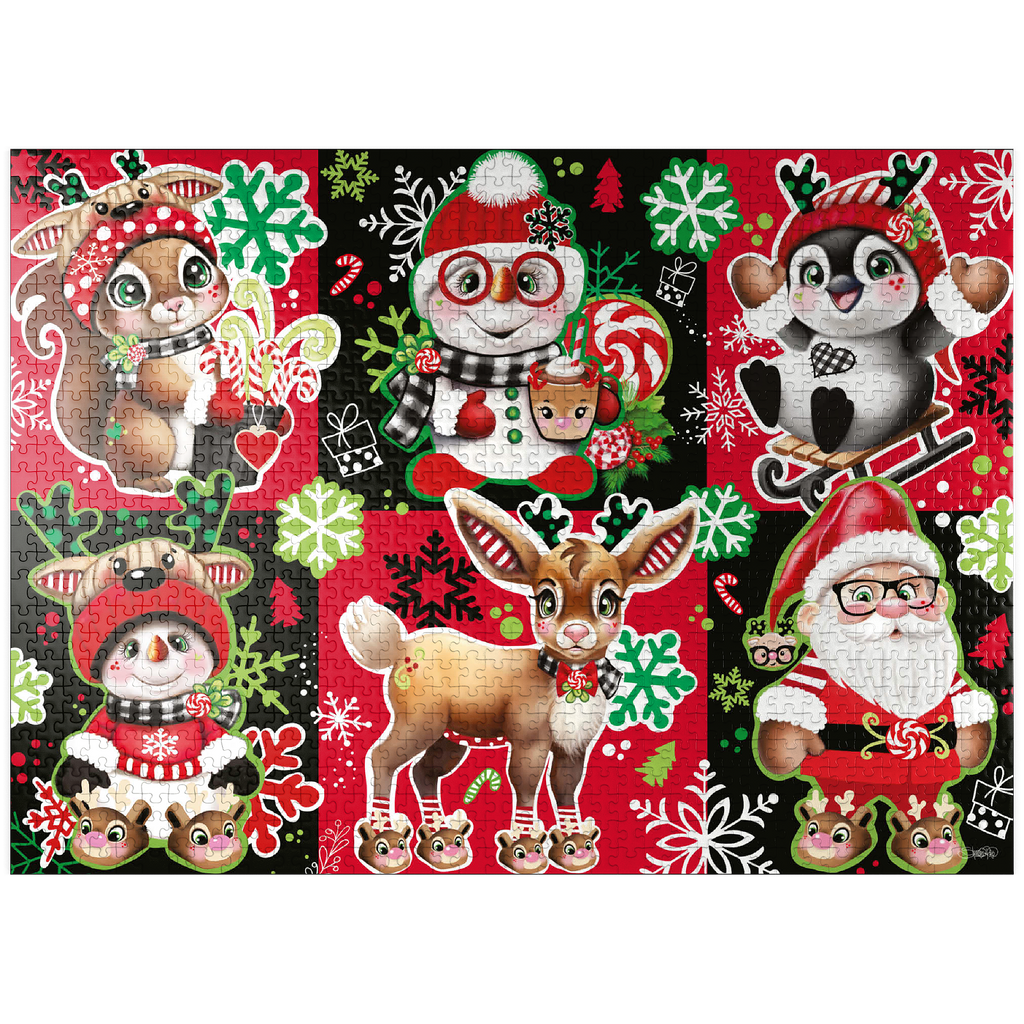 Bring the holiday spirit to life with this charming Christmas Character Collage Puzzle by Sheena Pike, designed to delight puzzlers of all ages. Featuring a vibrant and festive color palette of red, green, black, and white, this puzzle showcases an adorable collection of holiday characters-including Santa Claus, cheerful woodland animals, snowmen, and more. Each character is illustrated in a heartwarming style, surrounded by snowflakes, candy canes, and seasonal patterns that evoke the magic of Christmas. Whether enjoyed alone or with family, this puzzle offers both fun and relaxation, making it a perfect activity for cozy winter days or a thoughtful gift during the holiday season.