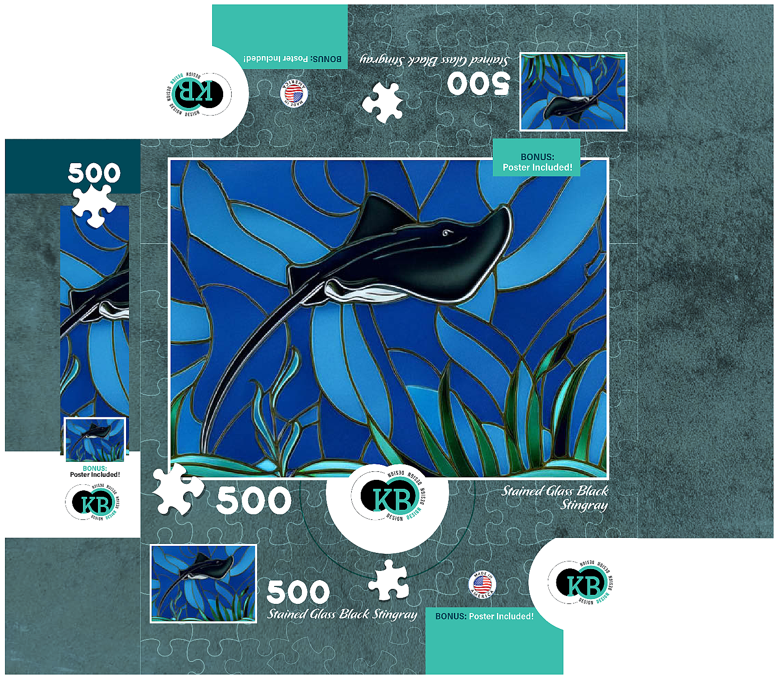 The abstract stained glass collection is a unique way to display some of your favorite subjects in artistic fashion. Designed to mimic the beauty of a stained glass window with bold panels of color-this sting ray is a must-have for any wall. Choose from many other puzzles in this collection and display them all together to bring brilliant hues of abstract color into your home.