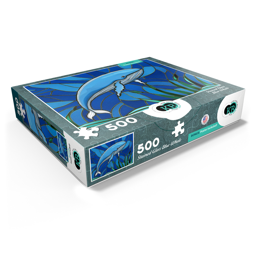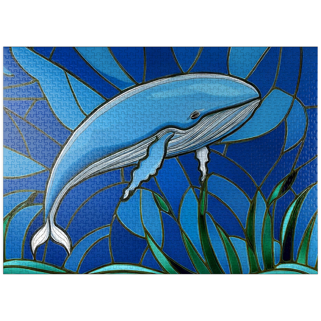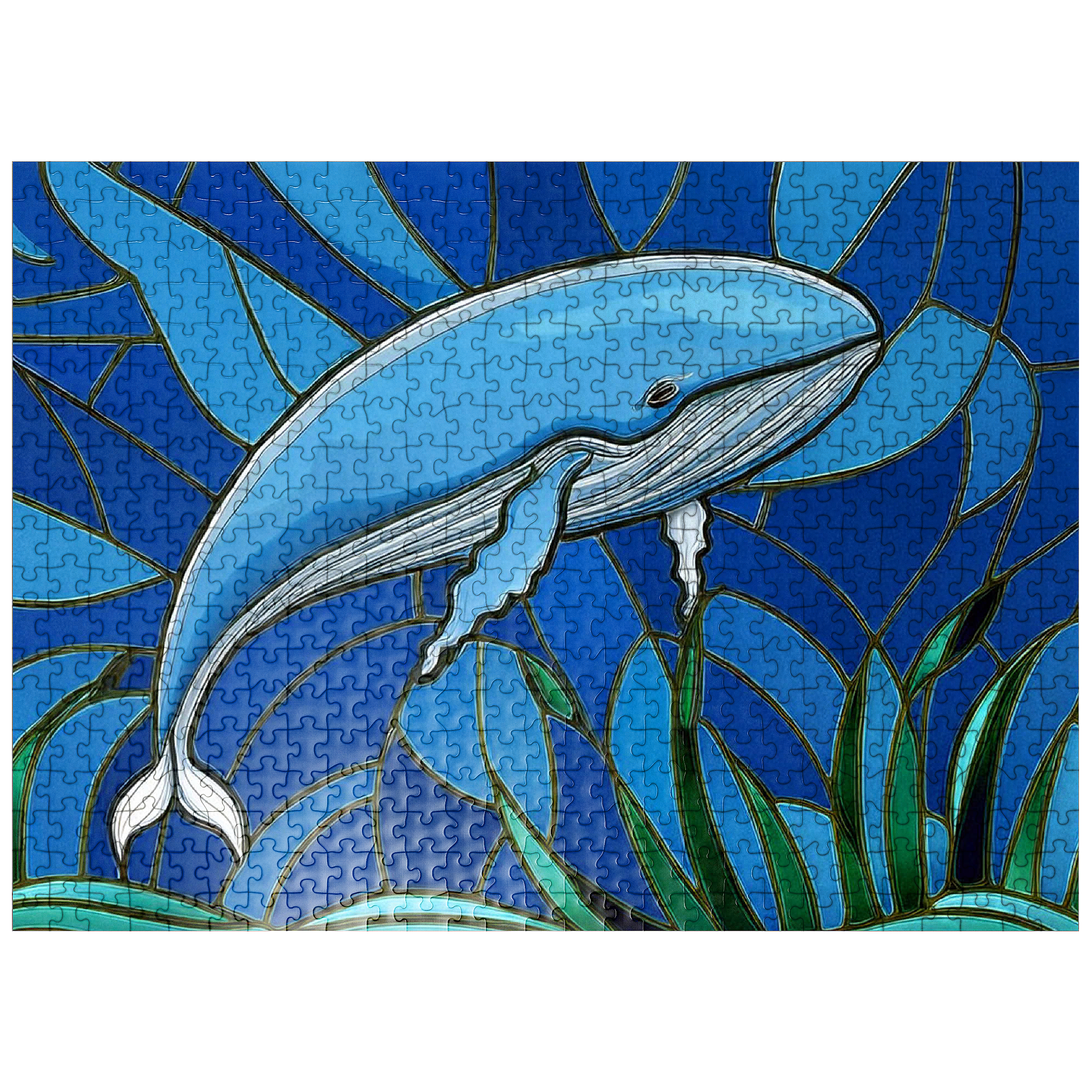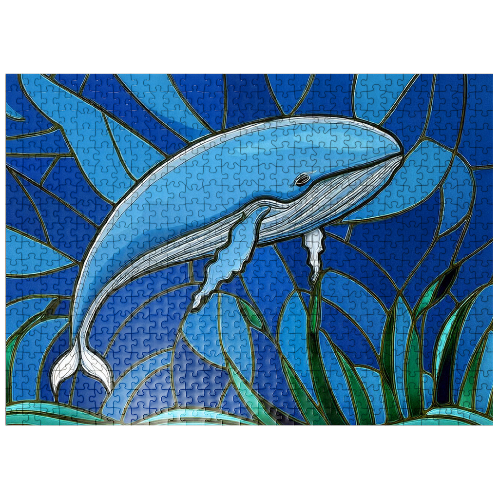 The abstract stained glass collection is a unique way to display some of your favorite subjects in artistic fashion. Designed to mimic the beauty of a stained glass window with bold panels of color-this blue whale is a must-have for any wall. Choose from many other puzzles in this collection and display them all together to bring brilliant hues of abstract color into your home.