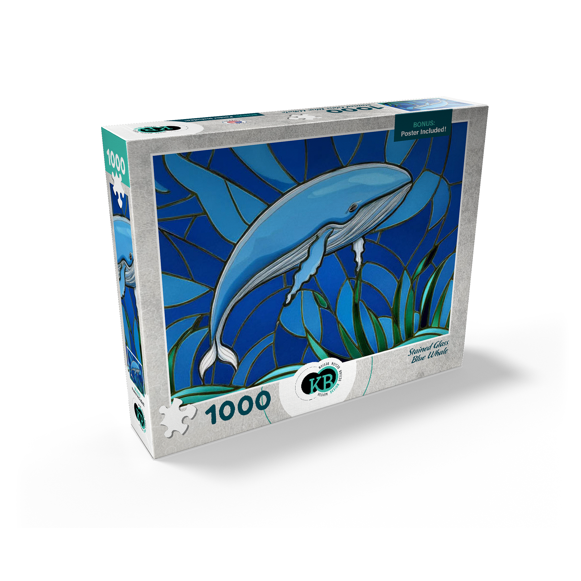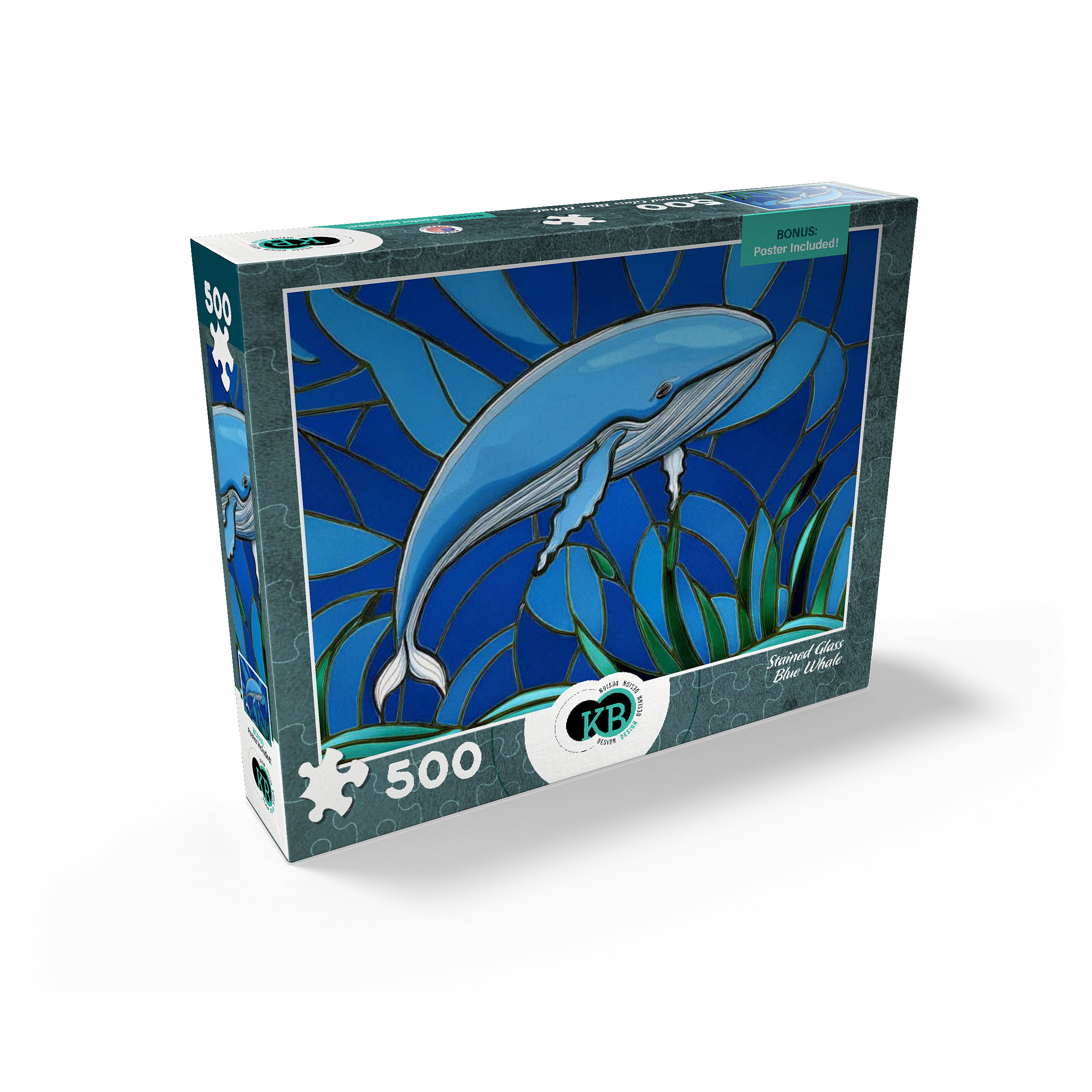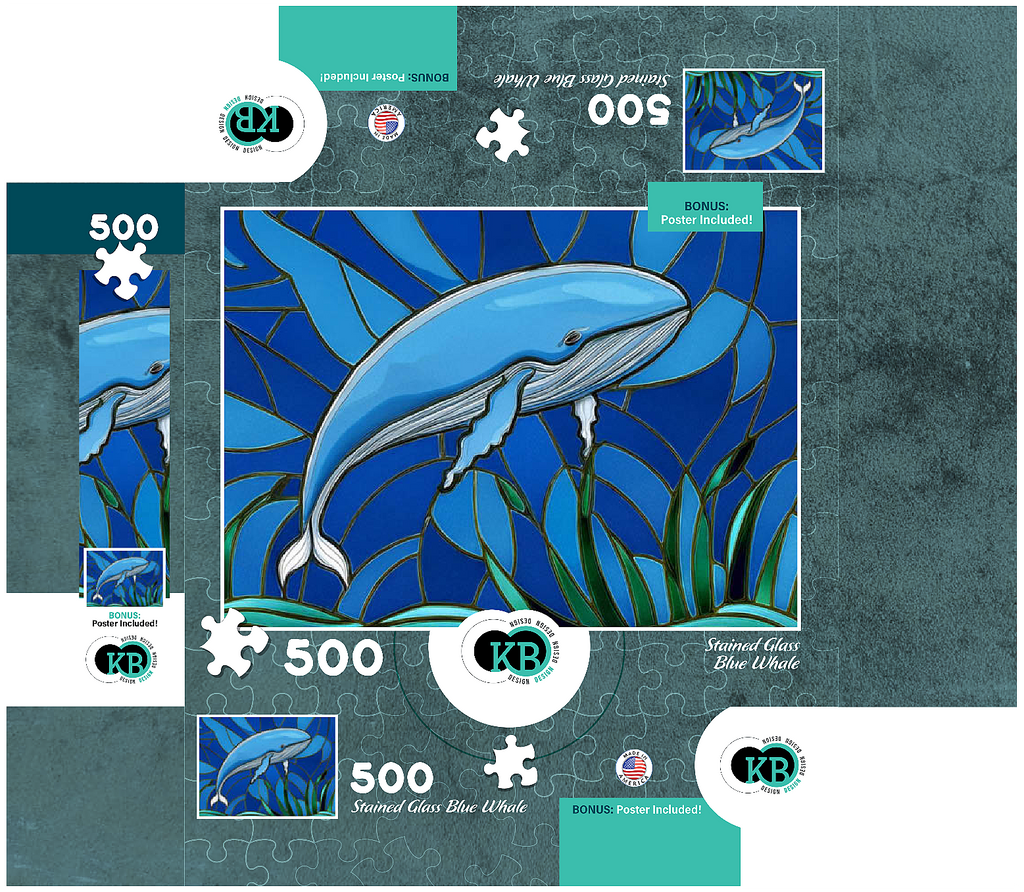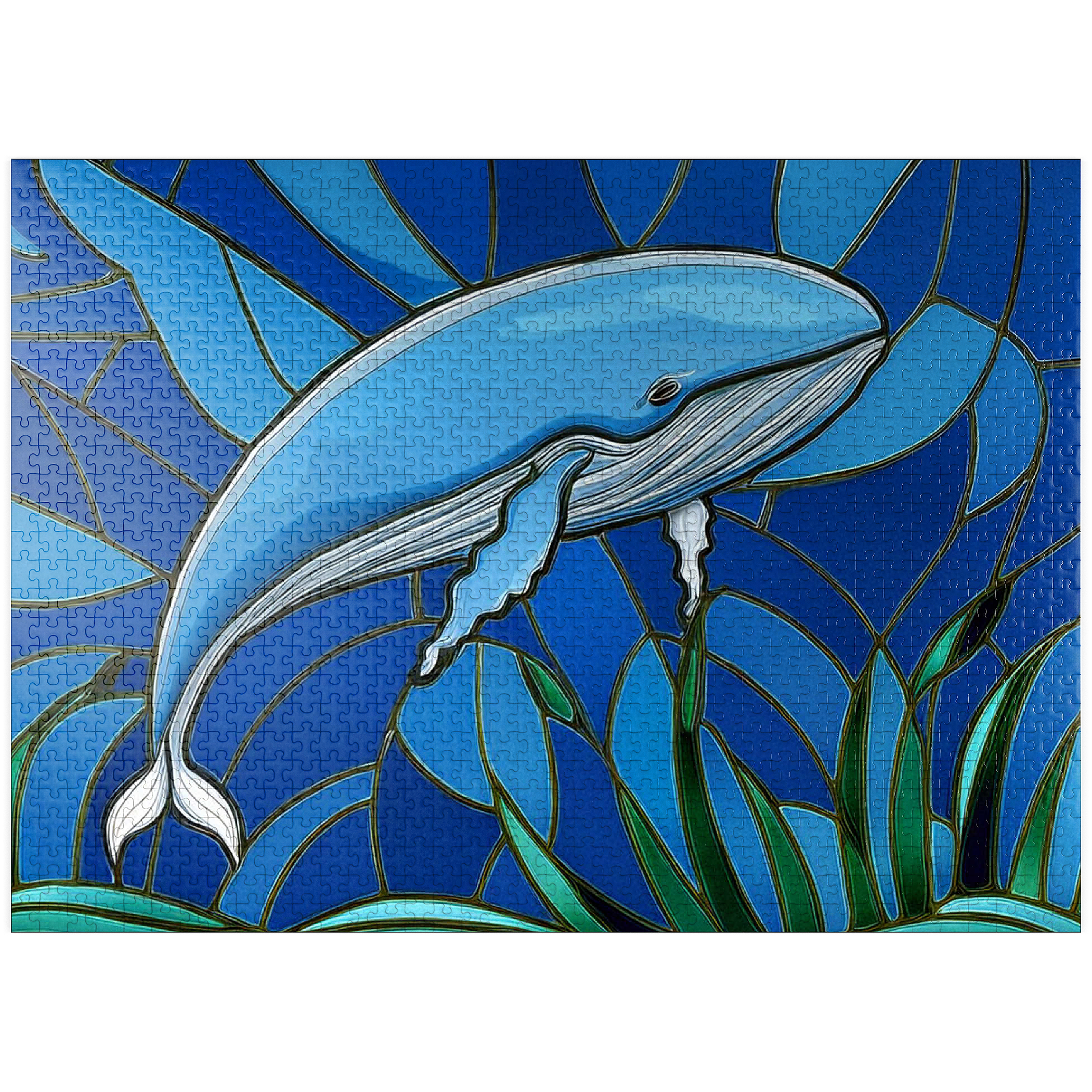 The abstract stained glass collection is a unique way to display some of your favorite subjects in artistic fashion. Designed to mimic the beauty of a stained glass window with bold panels of color-this blue whale is a must-have for any wall. Choose from many other puzzles in this collection and display them all together to bring brilliant hues of abstract color into your home.