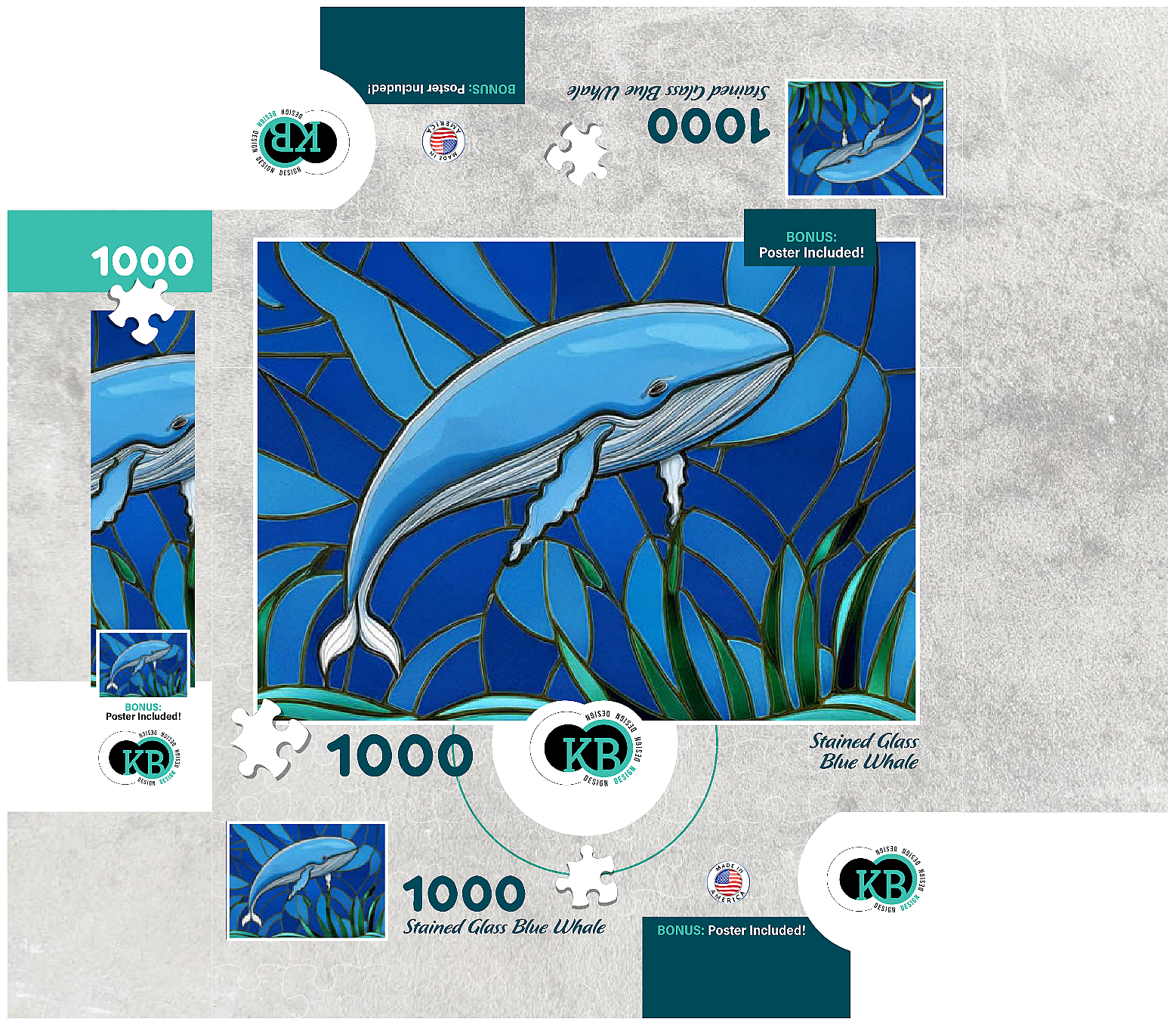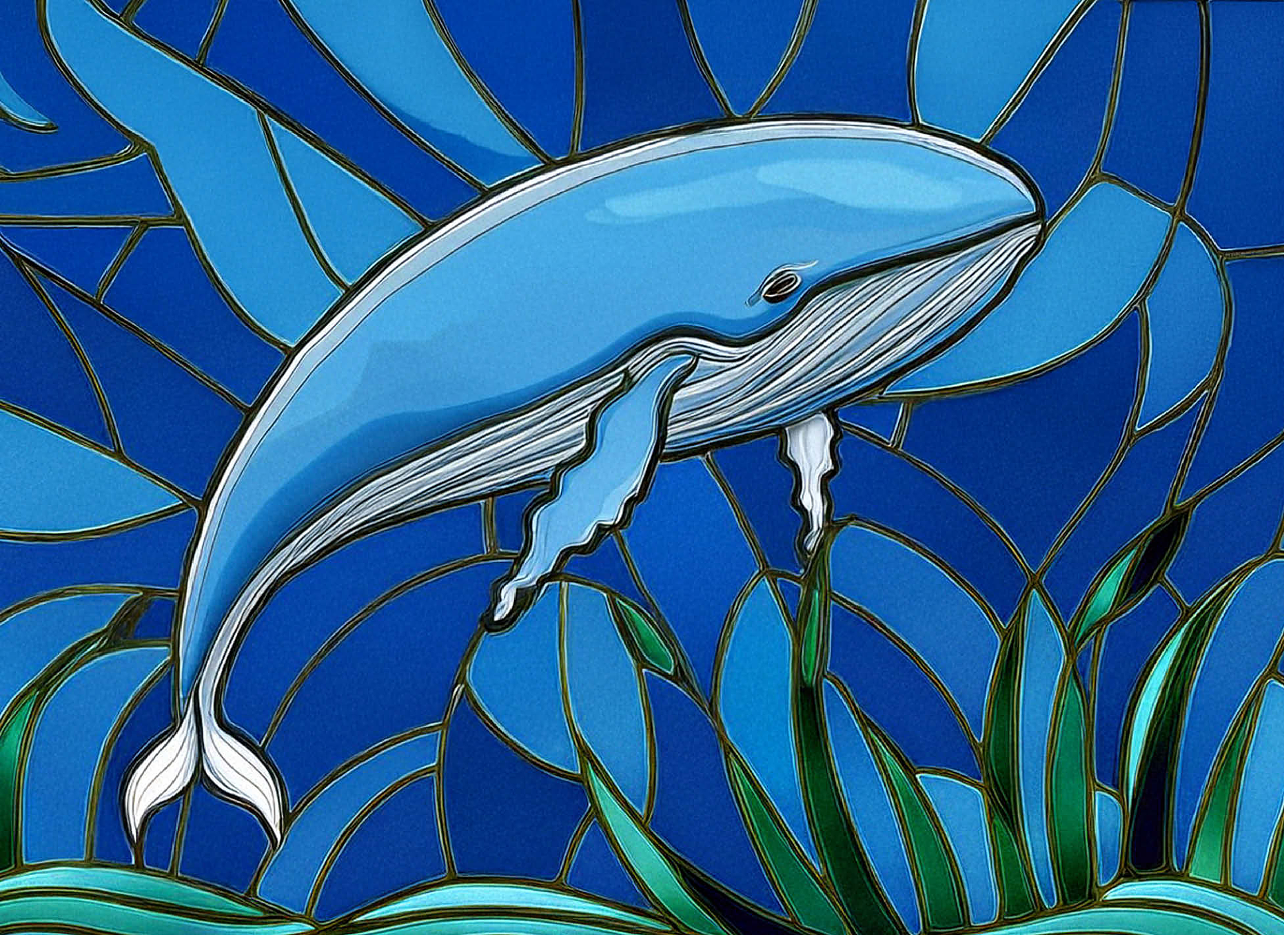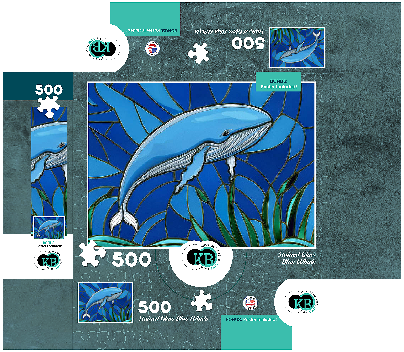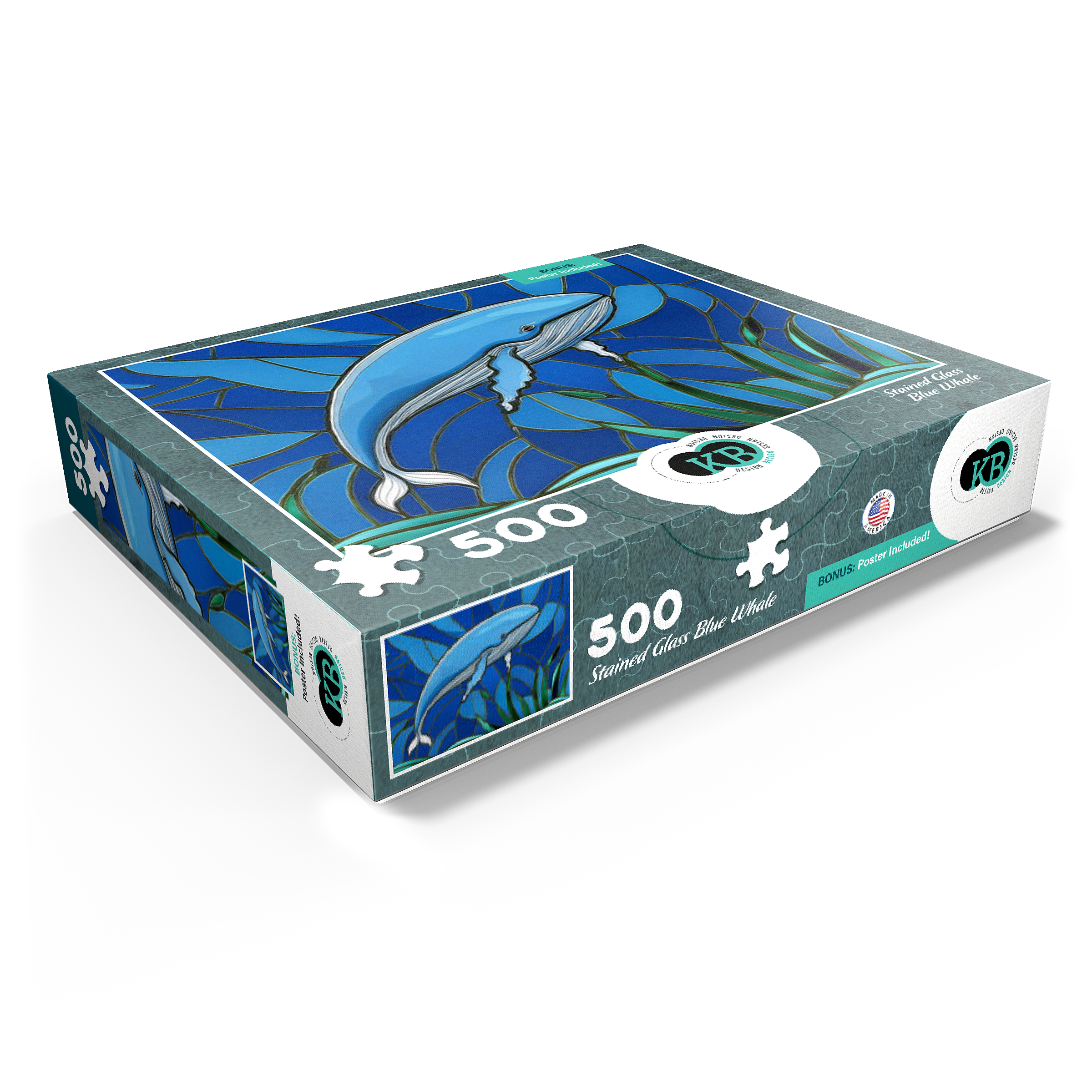 The abstract stained glass collection is a unique way to display some of your favorite subjects in artistic fashion. Designed to mimic the beauty of a stained glass window with bold panels of color-this blue whale is a must-have for any wall. Choose from many other puzzles in this collection and display them all together to bring brilliant hues of abstract color into your home.