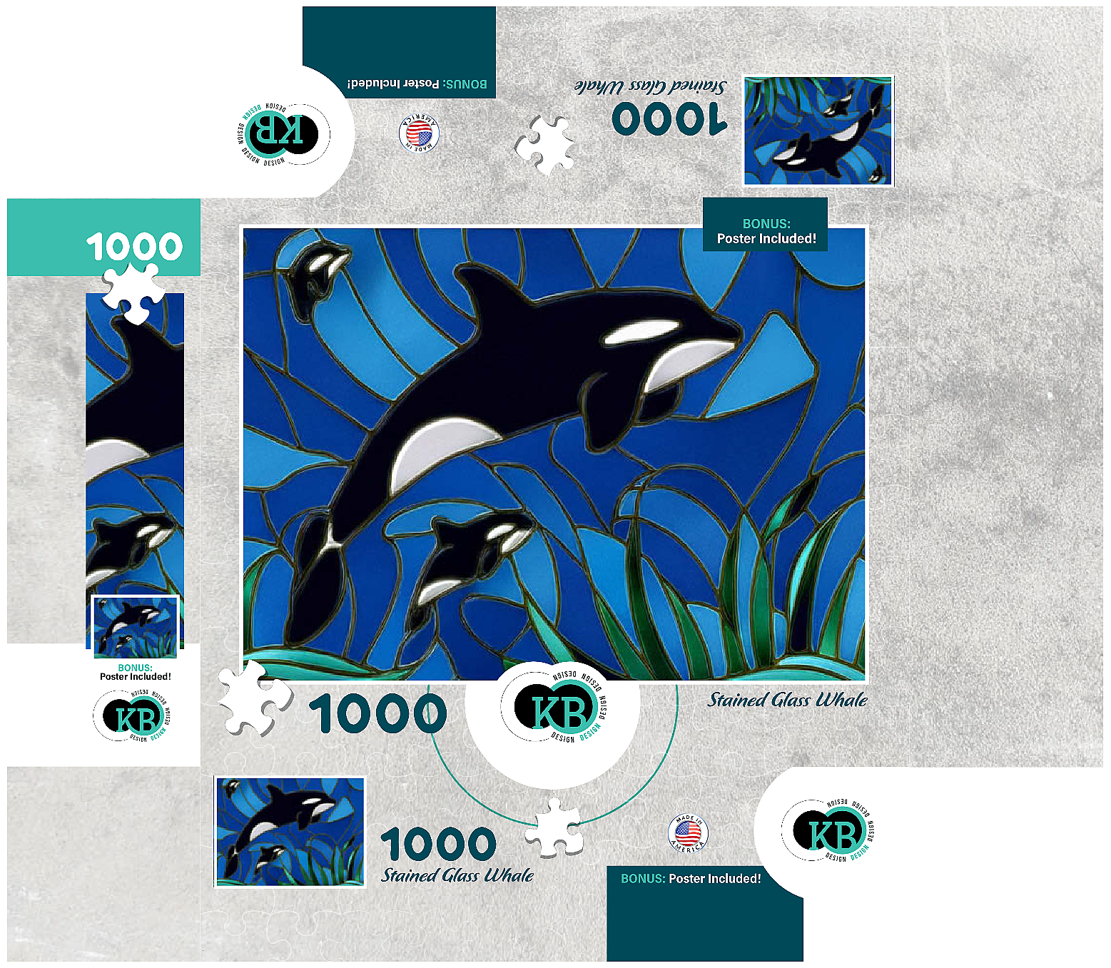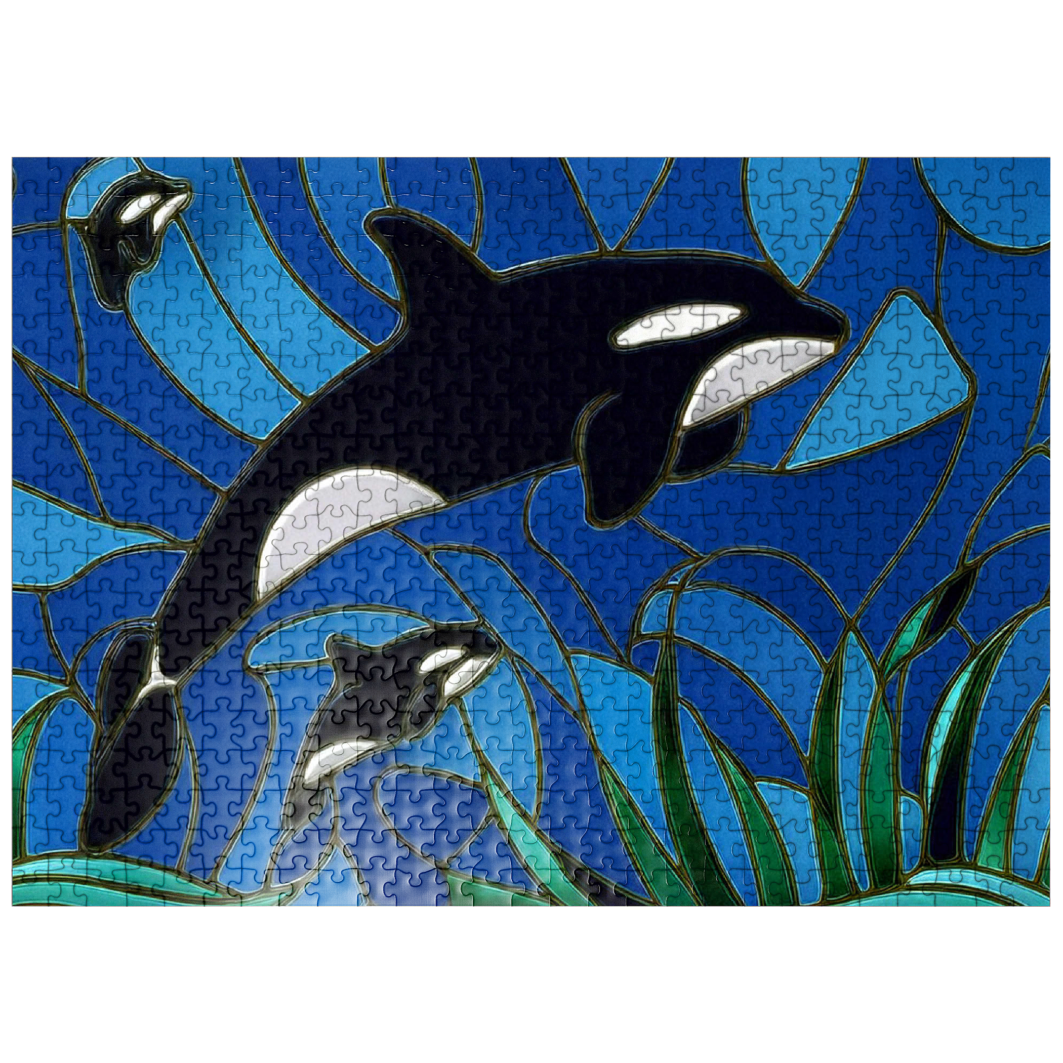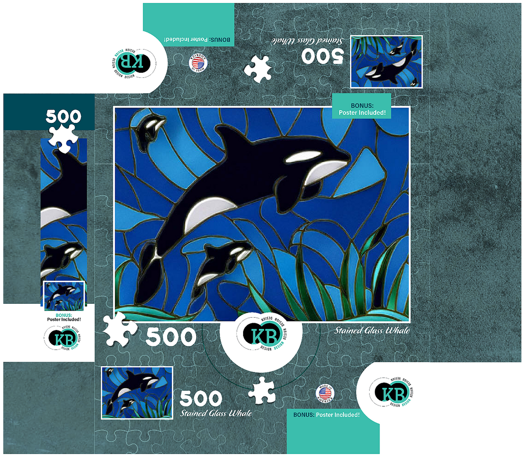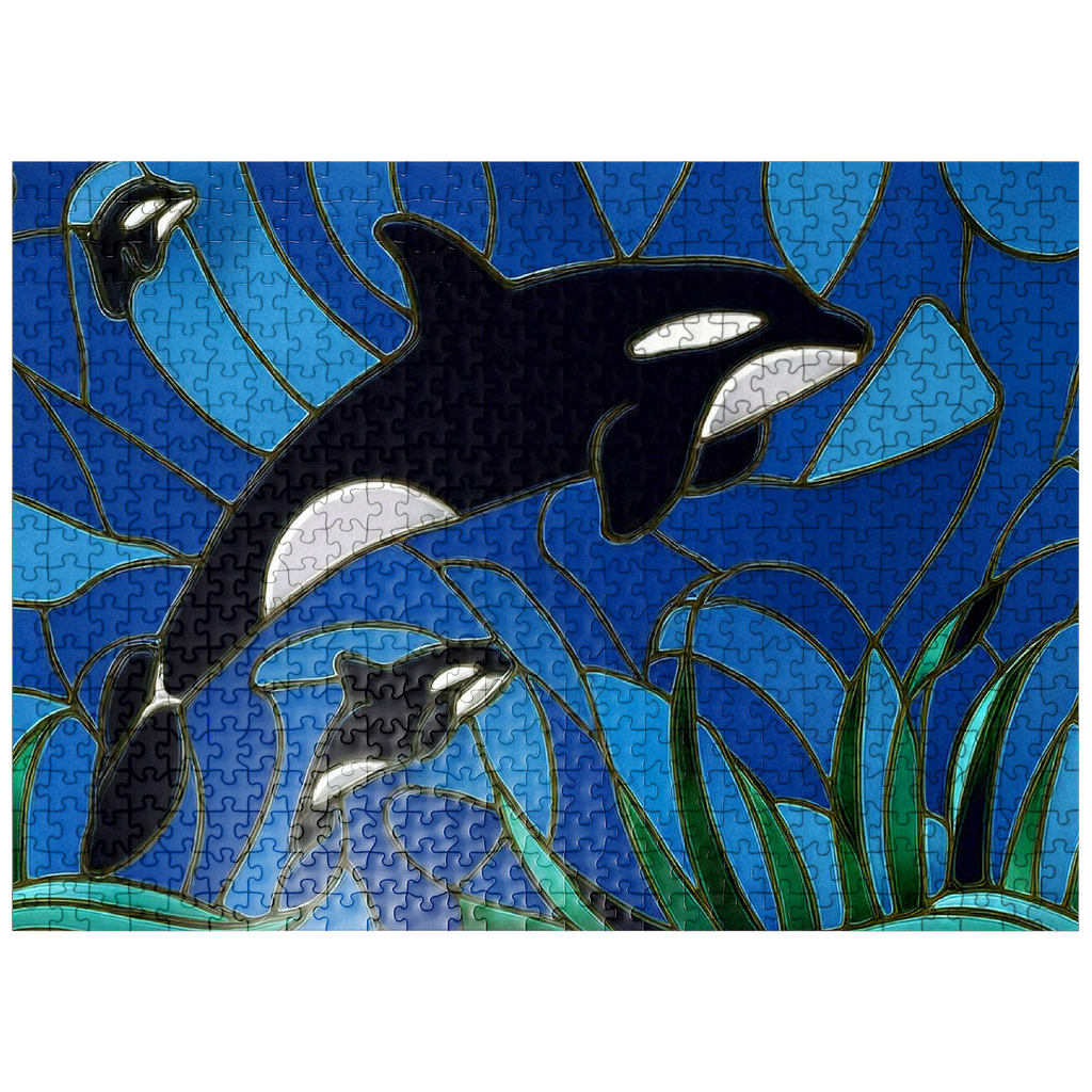 The abstract stained glass collection is a unique way to display some of your favorite subjects in artistic fashion. Designed to mimic the beauty of a stained glass window with bold panels of color-this orca and her calves is a must-have for any wall. Choose from many other puzzles in this collection and display them all together to bring brilliant hues of abstract color into your home.