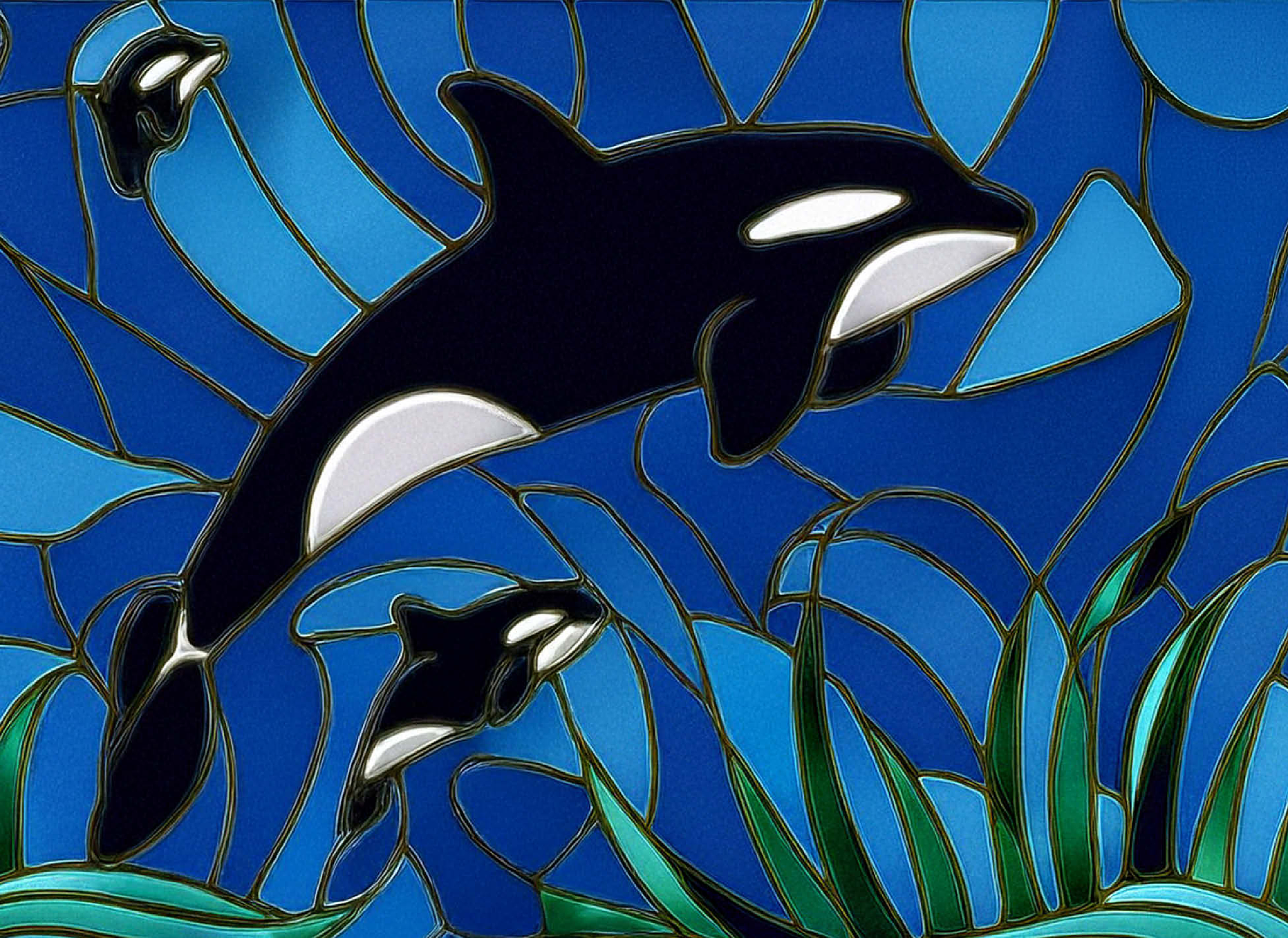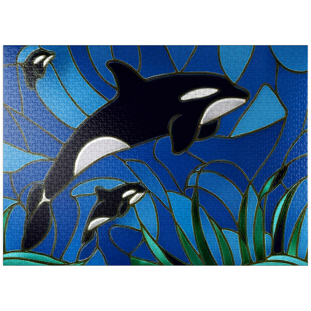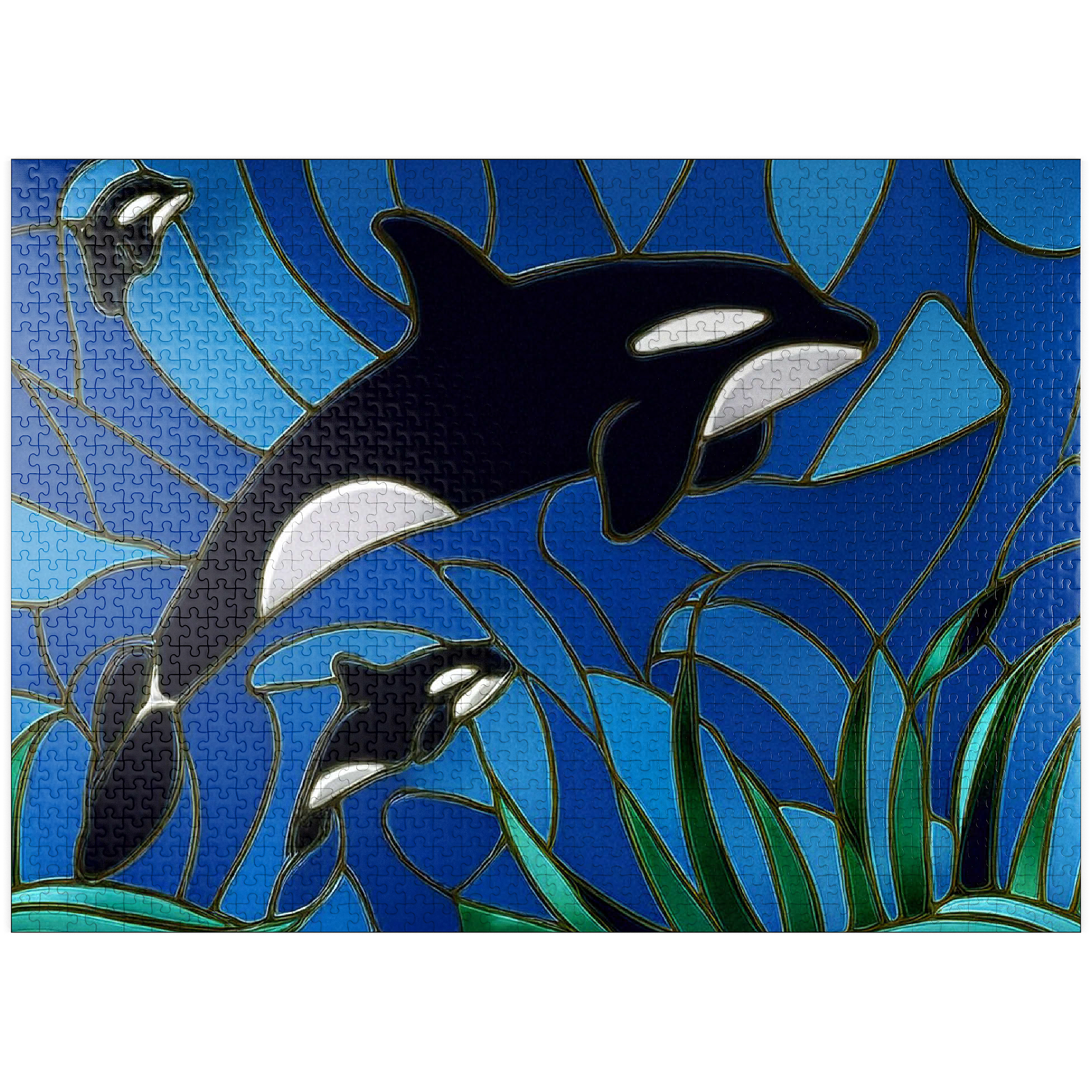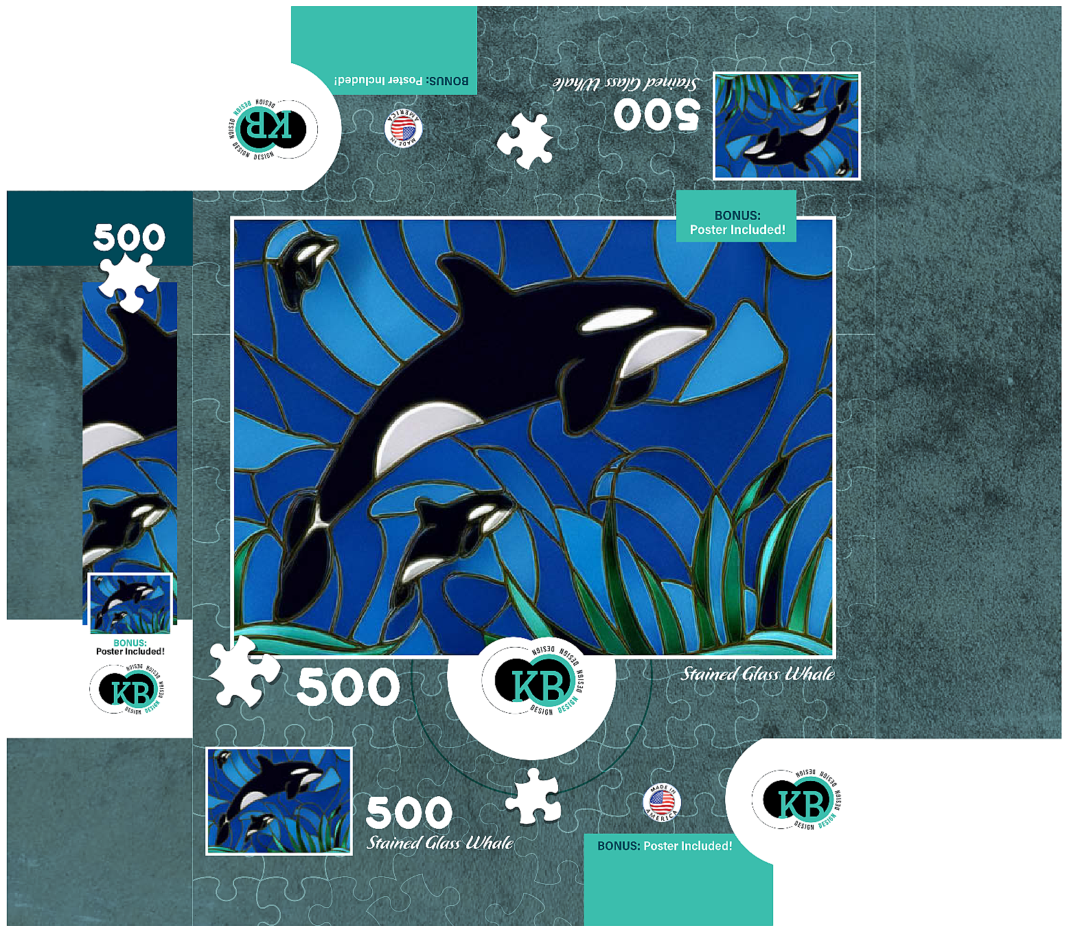 The abstract stained glass collection is a unique way to display some of your favorite subjects in artistic fashion. Designed to mimic the beauty of a stained glass window with bold panels of color-this orca and her calves is a must-have for any wall. Choose from many other puzzles in this collection and display them all together to bring brilliant hues of abstract color into your home.