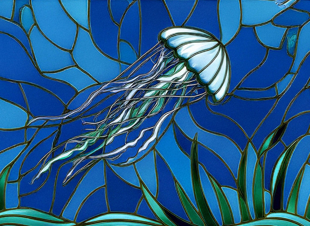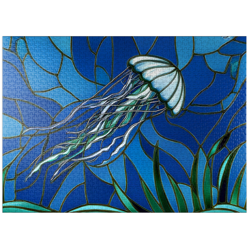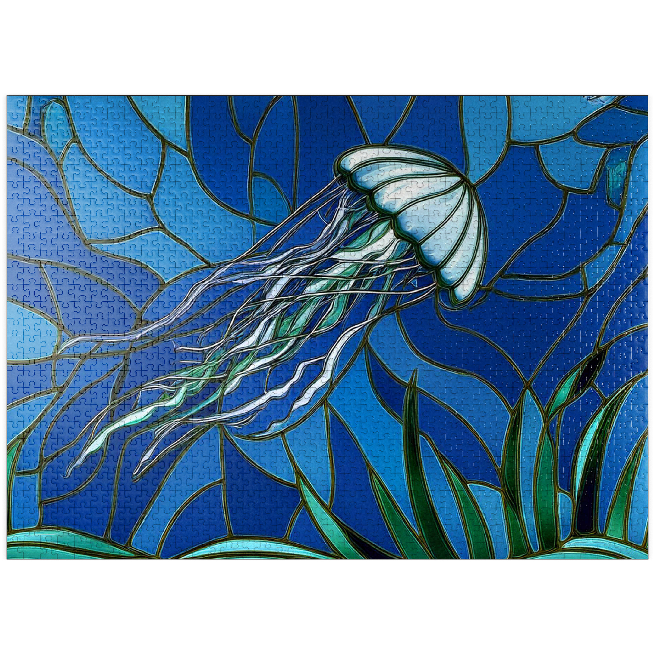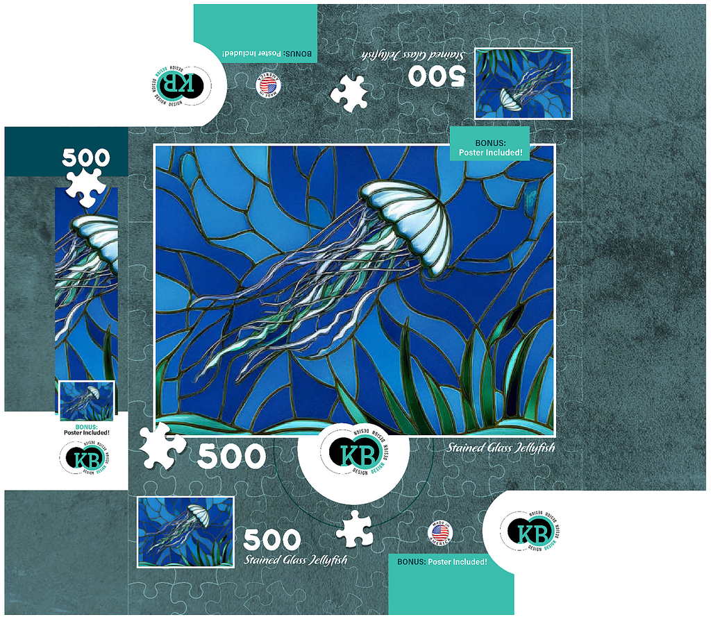 The abstract stained glass collection is a unique way to display some of your favorite subjects in artistic fashion. Designed to mimic the beauty of a stained glass window with bold panels of color-this jellyfish is a must-have for any wall. Choose from many other puzzles in this collection and display them all together to bring brilliant hues of abstract color into your home.