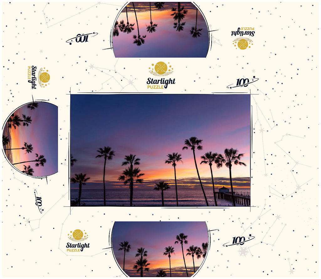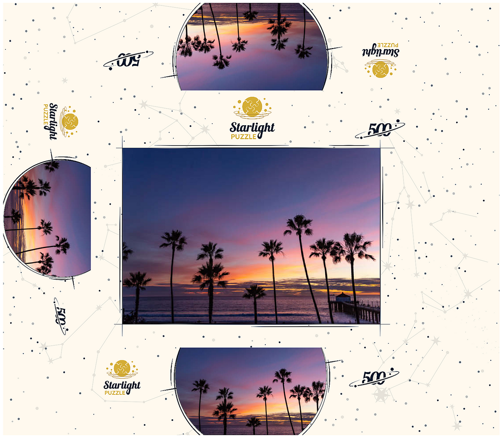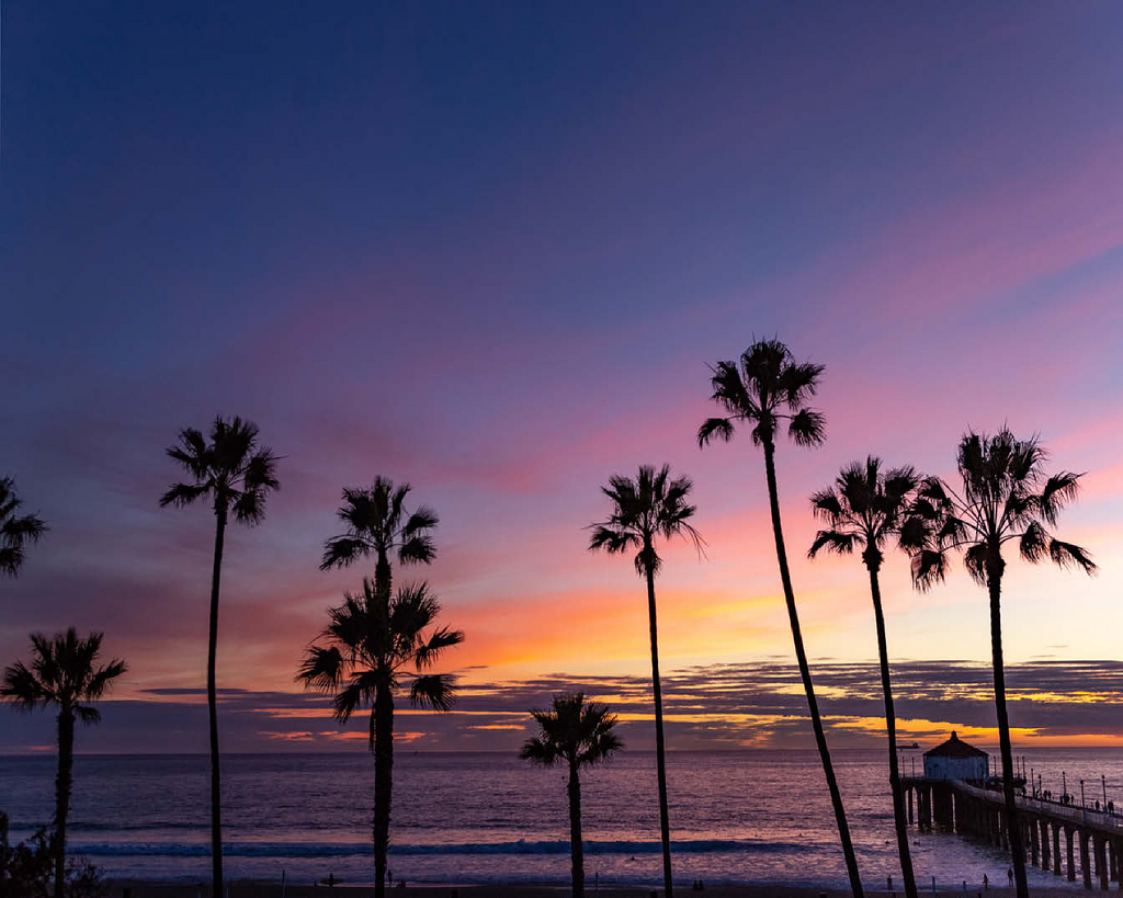 Manhattan Beach Pier at Sunset with Palm Silhouettes