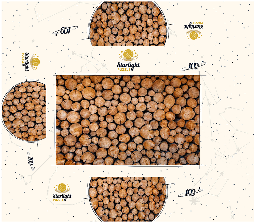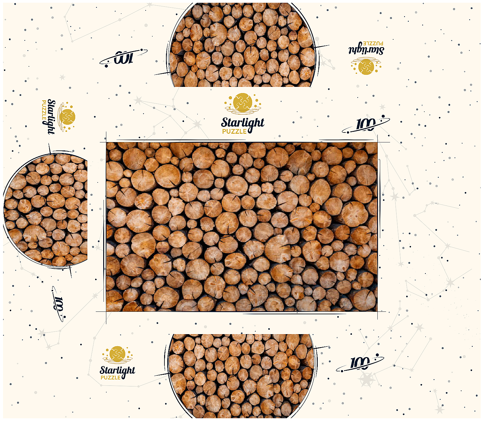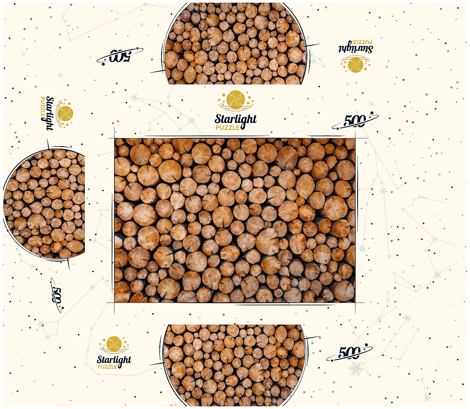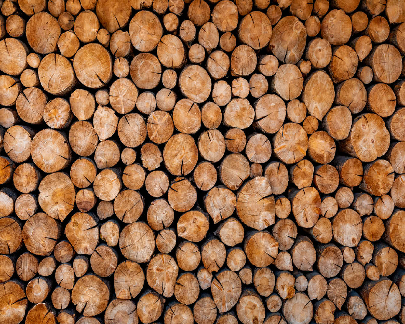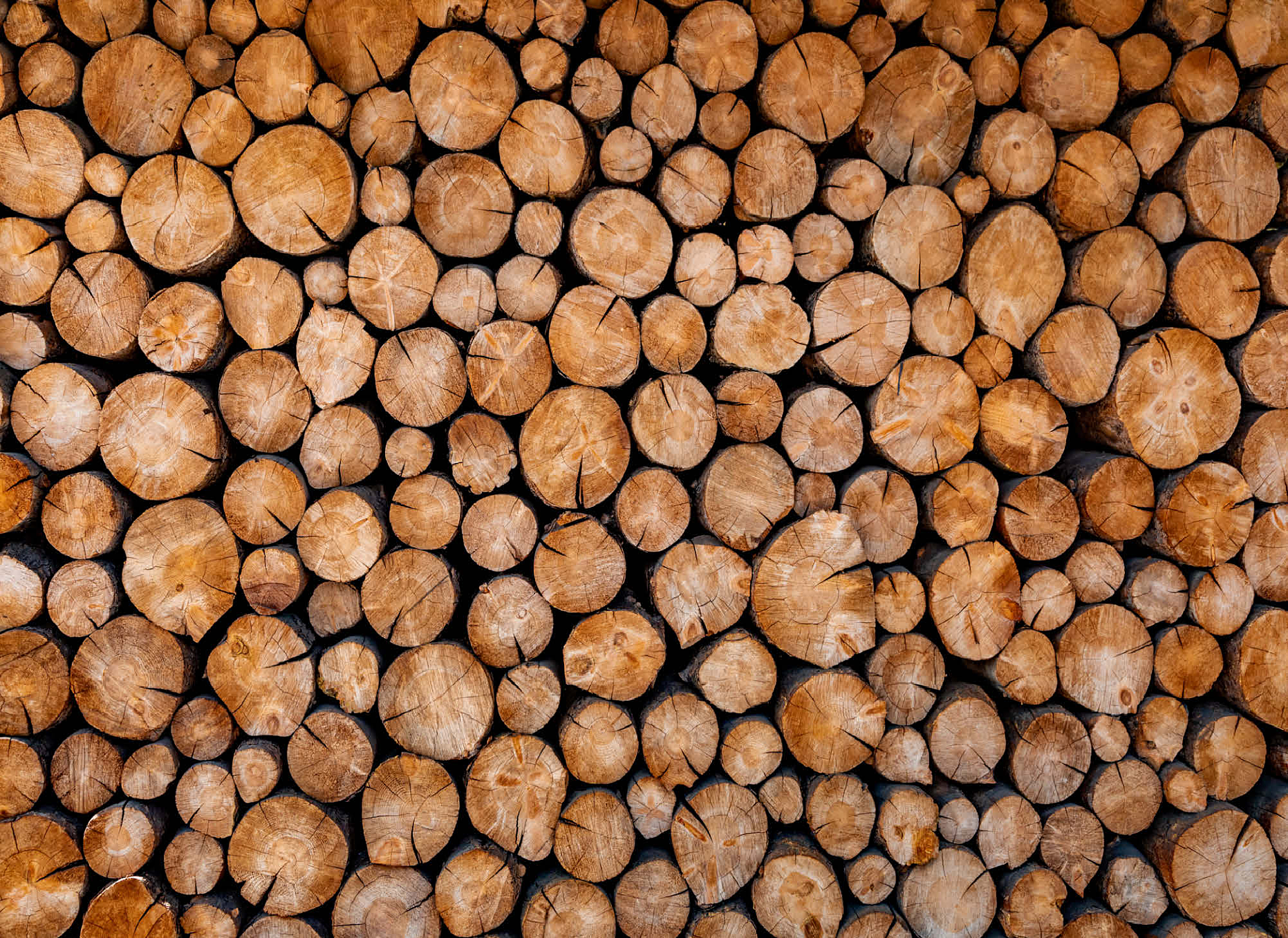 This image features a tightly packed stack of cut firewood logs, showcasing the natural grain, rings, and rich brown hues of the wood. The varying diameters and slight cracks in the log ends emphasize the organic nature and rustic appeal of freshly chopped timber. The cross-sectional view highlights the natural growth patterns, making it a visually striking and warm-toned background or decorative element. Perfectly suited for themes of sustainability, cozy living, forest products, and autumn or winter preparation, this composition evokes a sense of warmth, craftsmanship, and connection to nature. Ideal for interior design inspirations, camping or fireplace visuals, or woodworking-related product displays.