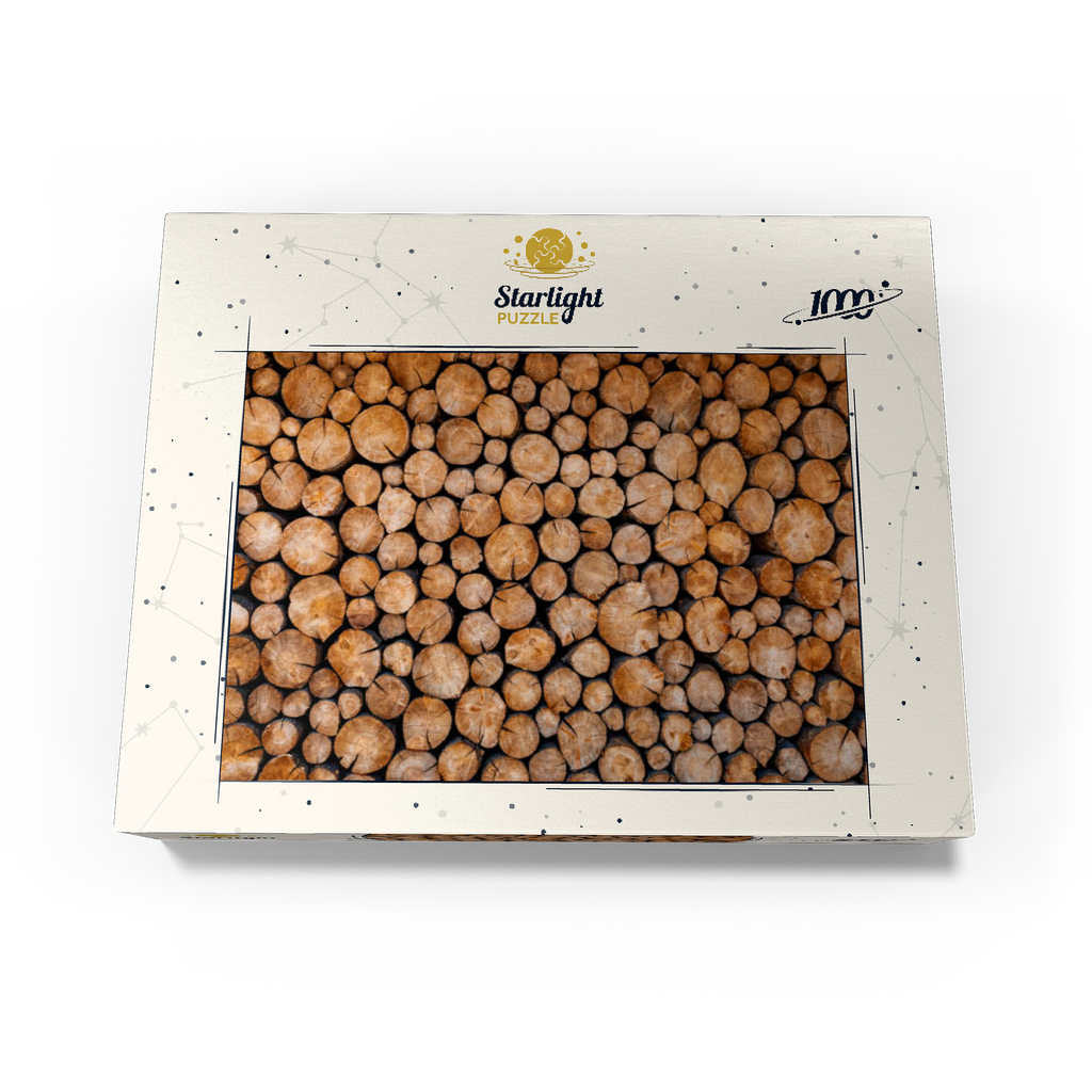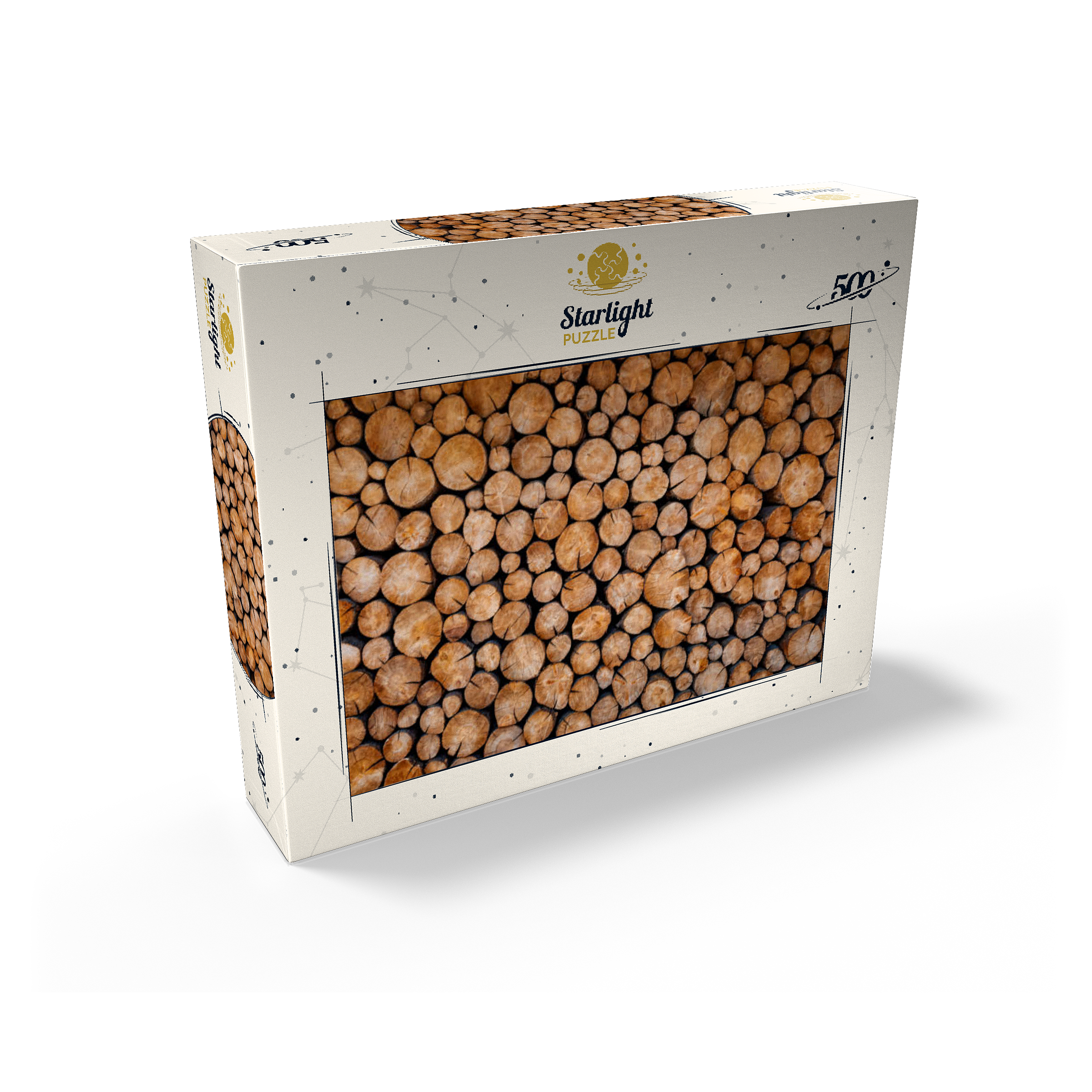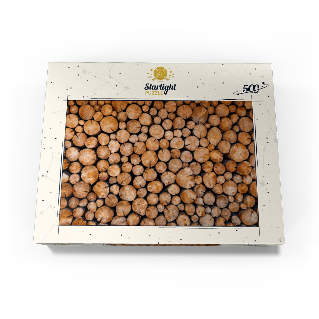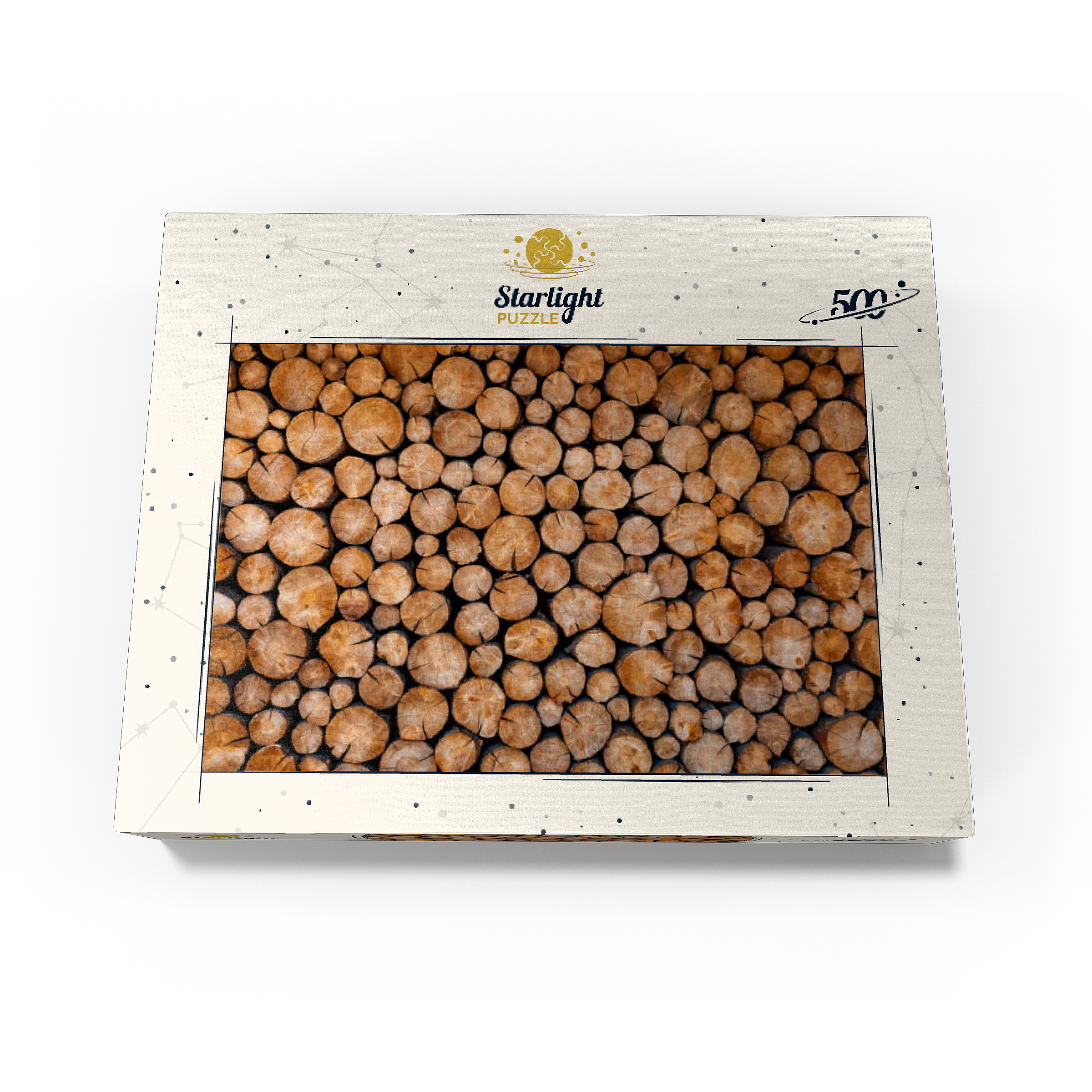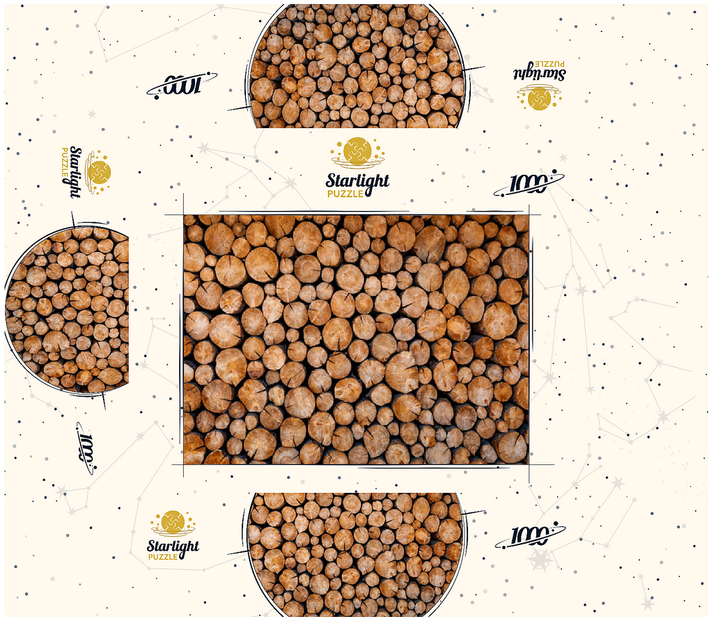 This image features a tightly packed stack of cut firewood logs, showcasing the natural grain, rings, and rich brown hues of the wood. The varying diameters and slight cracks in the log ends emphasize the organic nature and rustic appeal of freshly chopped timber. The cross-sectional view highlights the natural growth patterns, making it a visually striking and warm-toned background or decorative element. Perfectly suited for themes of sustainability, cozy living, forest products, and autumn or winter preparation, this composition evokes a sense of warmth, craftsmanship, and connection to nature. Ideal for interior design inspirations, camping or fireplace visuals, or woodworking-related product displays.