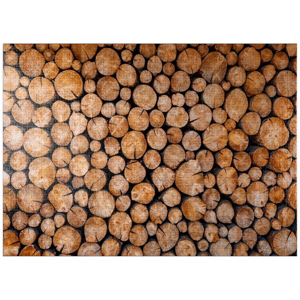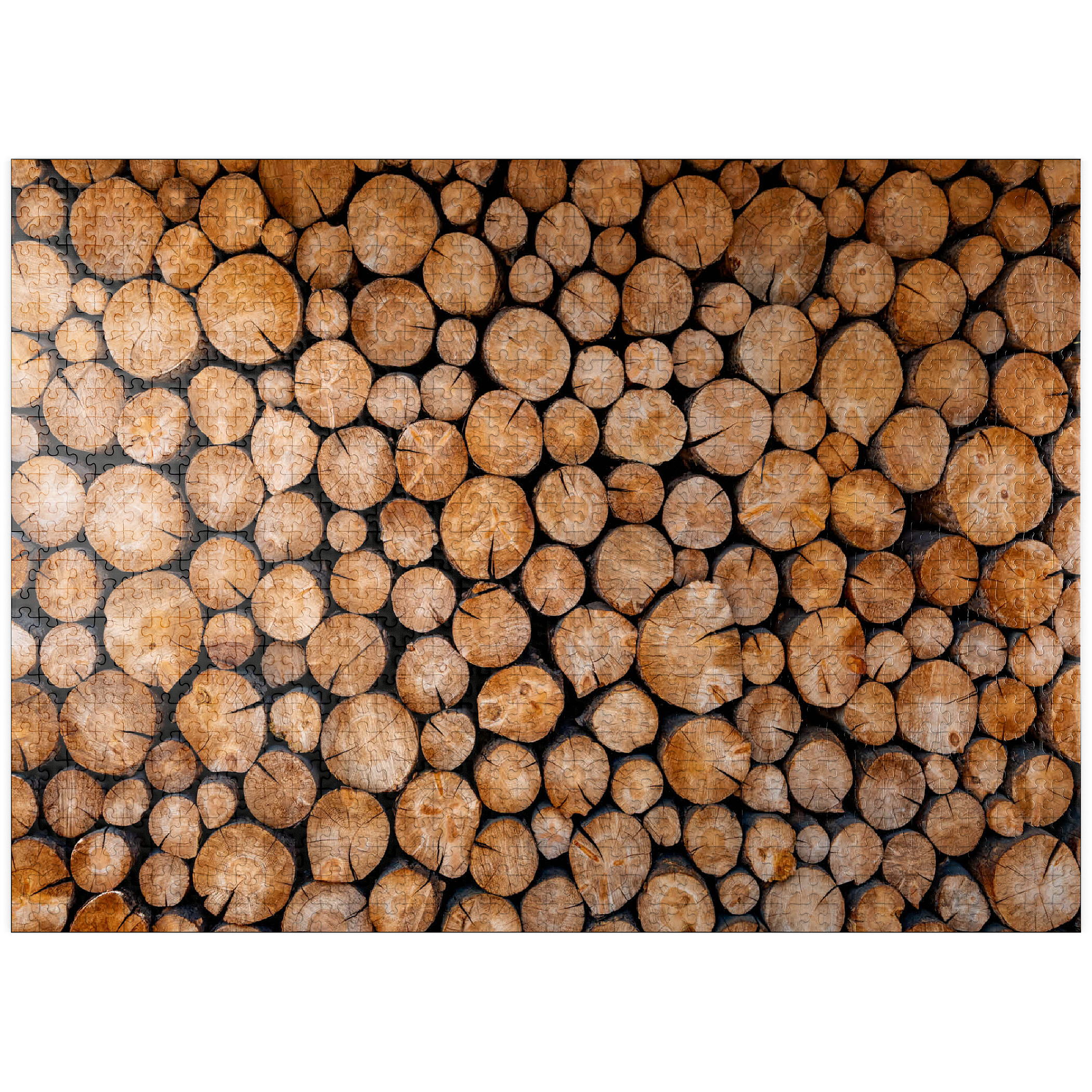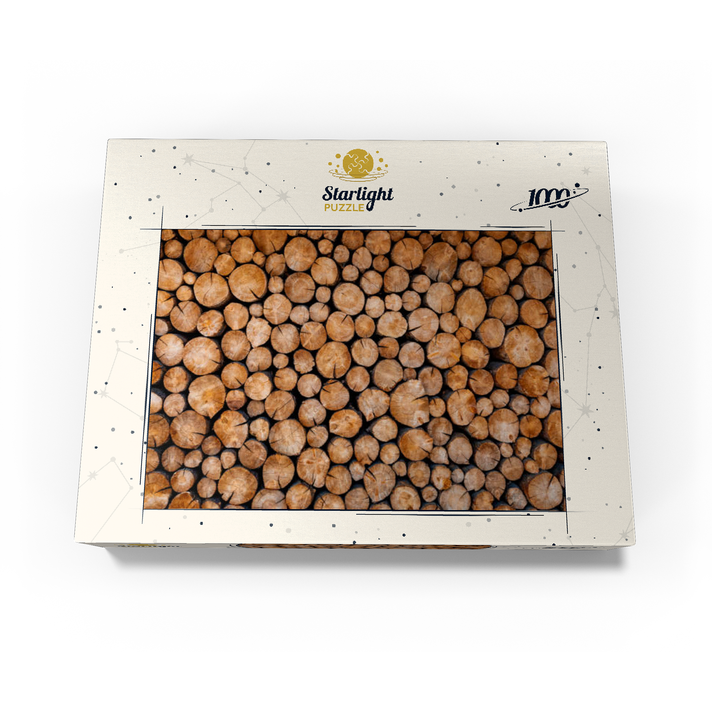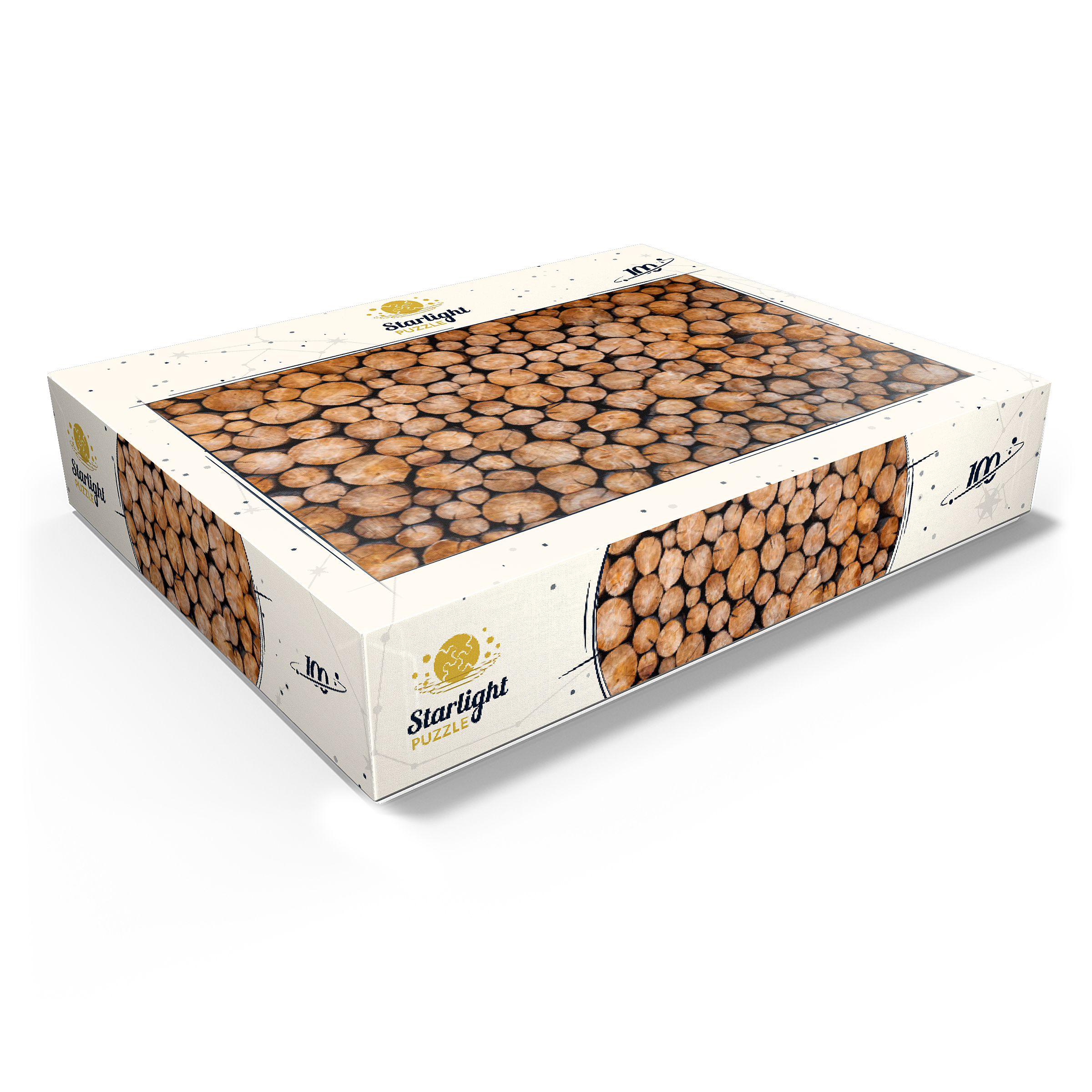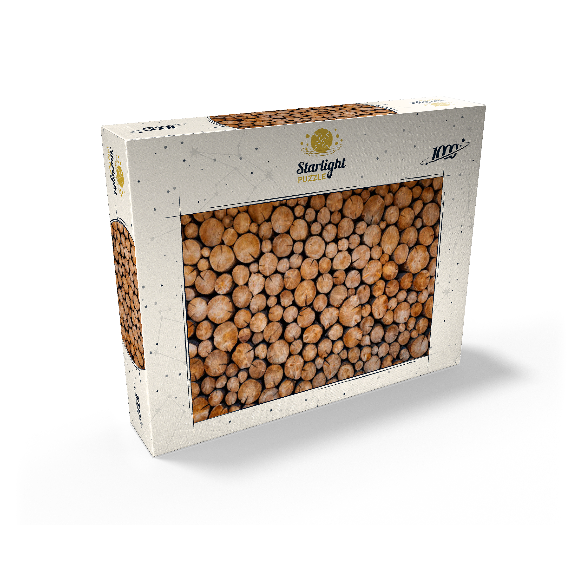 This image features a tightly packed stack of cut firewood logs, showcasing the natural grain, rings, and rich brown hues of the wood. The varying diameters and slight cracks in the log ends emphasize the organic nature and rustic appeal of freshly chopped timber. The cross-sectional view highlights the natural growth patterns, making it a visually striking and warm-toned background or decorative element. Perfectly suited for themes of sustainability, cozy living, forest products, and autumn or winter preparation, this composition evokes a sense of warmth, craftsmanship, and connection to nature. Ideal for interior design inspirations, camping or fireplace visuals, or woodworking-related product displays.