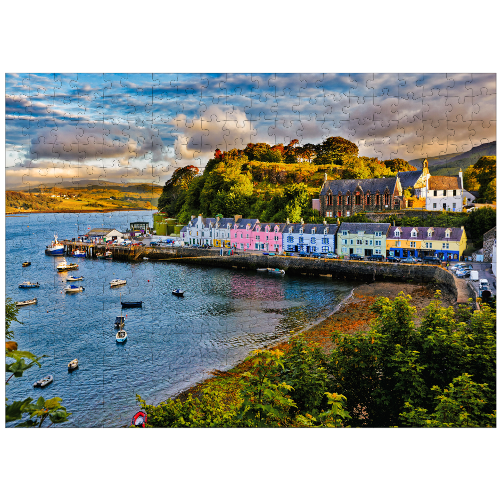 Whether you're a seasoned puzzle-solver or new to the hobby, you'll love the challenge and enjoyment of piecing together this beautiful image. This puzzle is not only a fun and engaging activity, but it's also a great way to learn more about Scotland and its breathtaking landscapes. So if you're looking for a fun and educational activity that you can do on your own or with friends and family, this puzzle featuring a view of Portree before sunset on the Isle of Skye is the perfect choice.