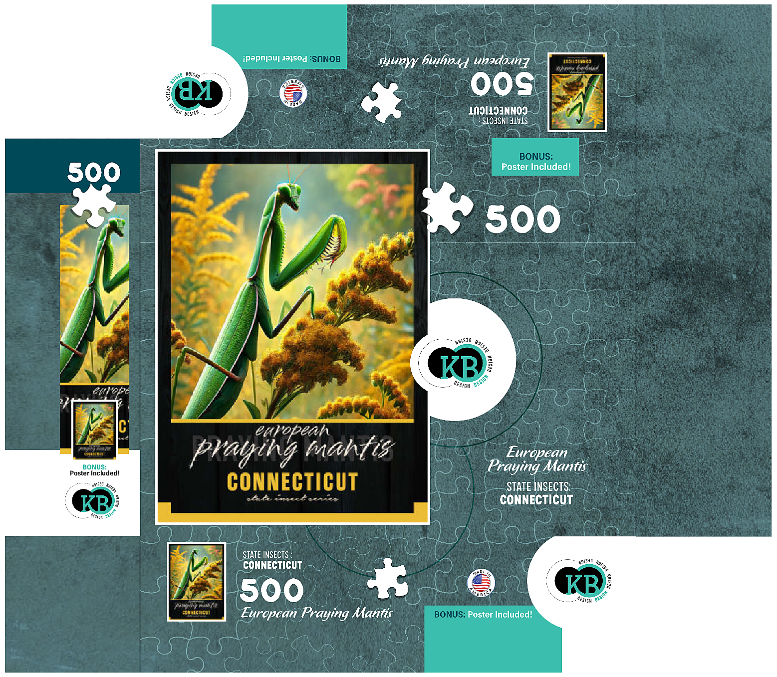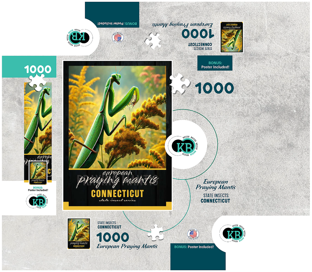 show all tags artist-kristy-blair/ artnr-kb660/ bugs/ collage/ colorful/ connecticut/ illustration/ nature/ orientation-portrait/ pieces-1000us/ pieces-500us/ praying-mantis/ skill-3/ state-insects-series/ states/ vintage-poster/ wildlife/