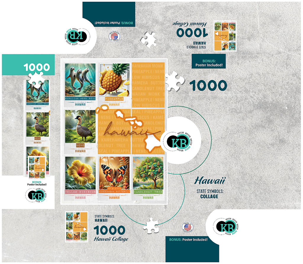 The State Symbols Posters are a fun, colorful way to show your state pride. each poster features a collage of the state: animal, fruit, bird, flower, insect, and tree from the region. this would make a great gift for a fellow out-of-state puzzle-lover-or go on an 'adventure across the country' and collect them all for yourself!