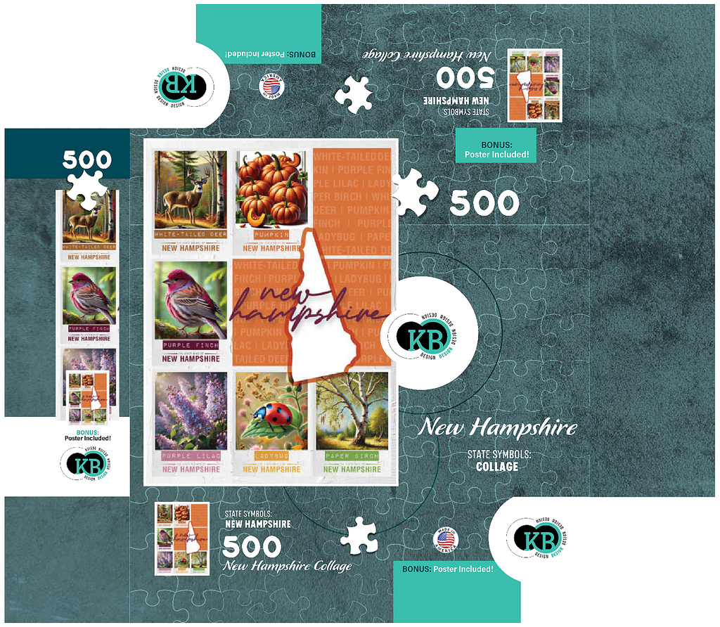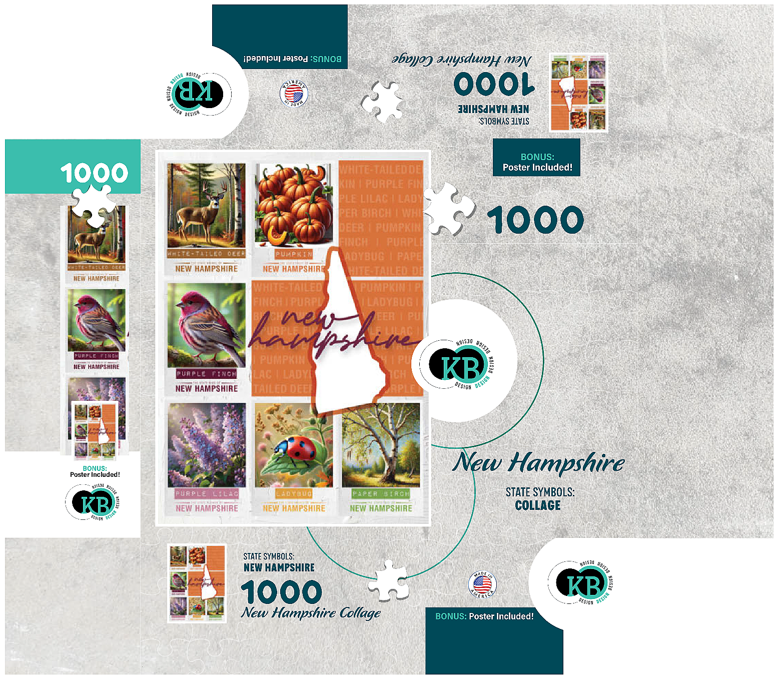 The State Symbols Posters are a fun, colorful way to show your state pride. each poster features a collage of the state: animal, fruit, bird, flower, insect, and tree from the region. this would make a great gift for a fellow out-of-state puzzle-lover-or go on an 'adventure across the country' and collect them all for yourself!