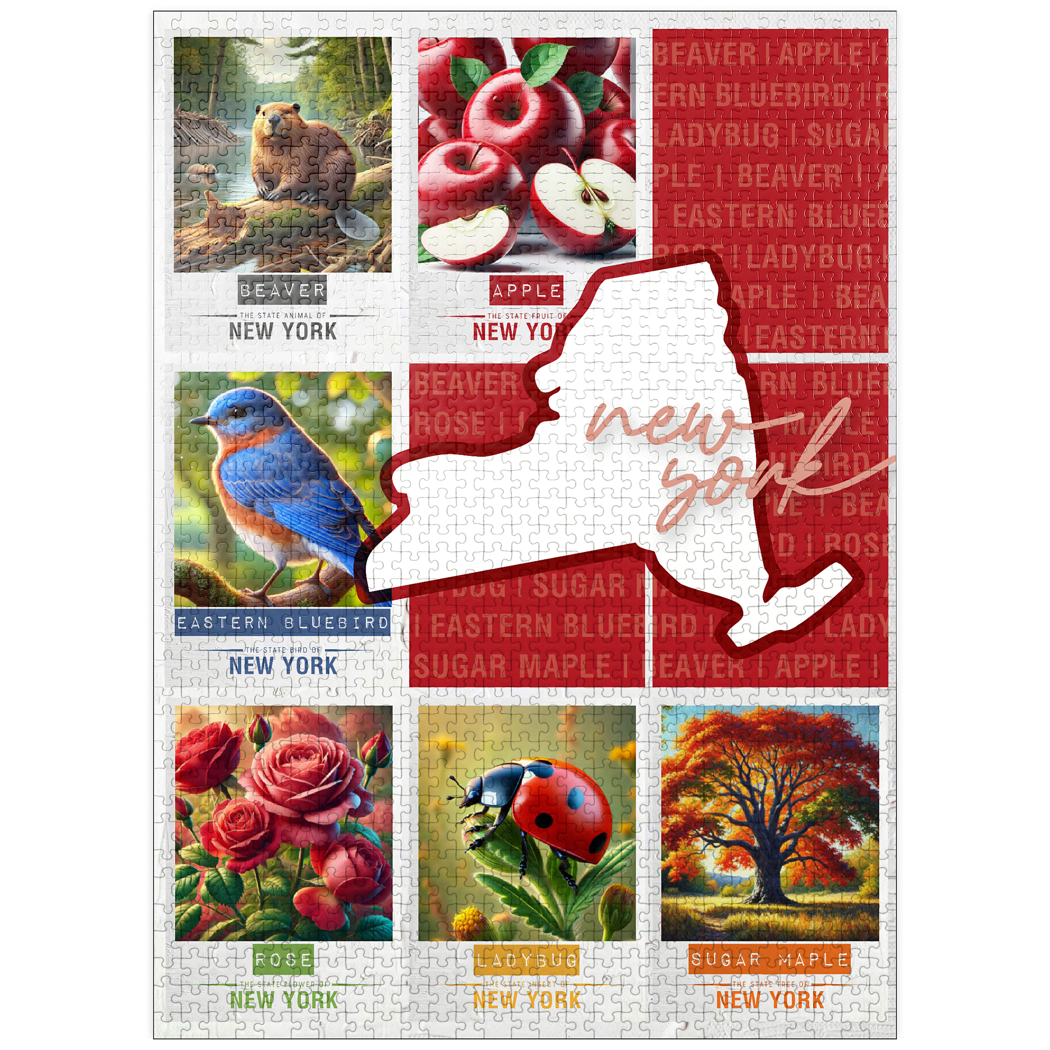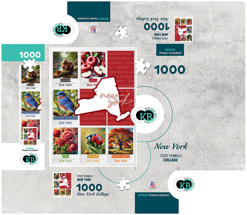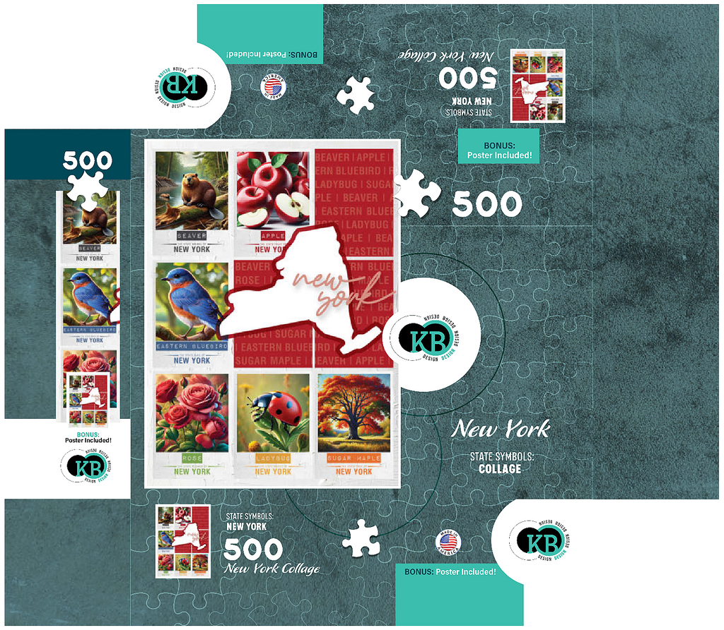 The State Symbols Posters are a fun, colorful way to show your state pride. each poster features a collage of the state: animal, fruit, bird, flower, insect, and tree from the region. this would make a great gift for a fellow out-of-state puzzle-lover-or go on an 'adventure across the country' and collect them all for yourself!