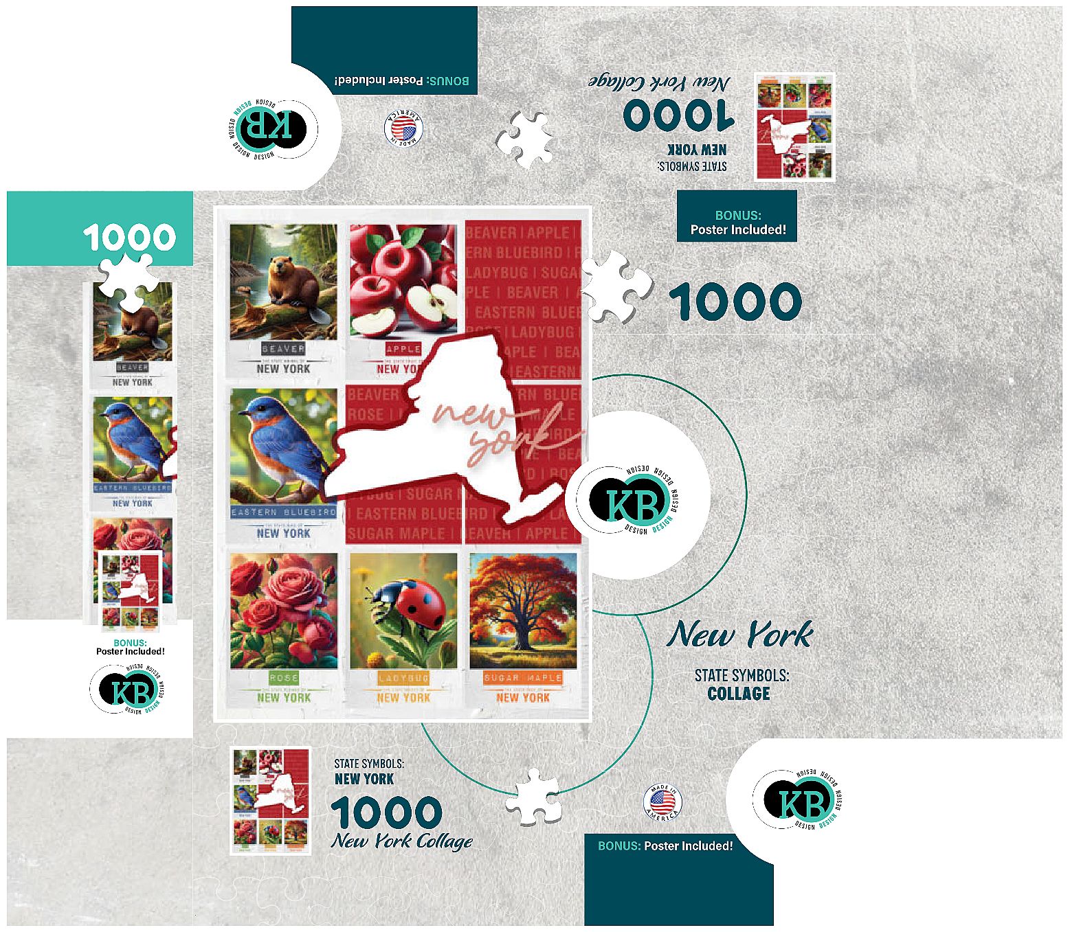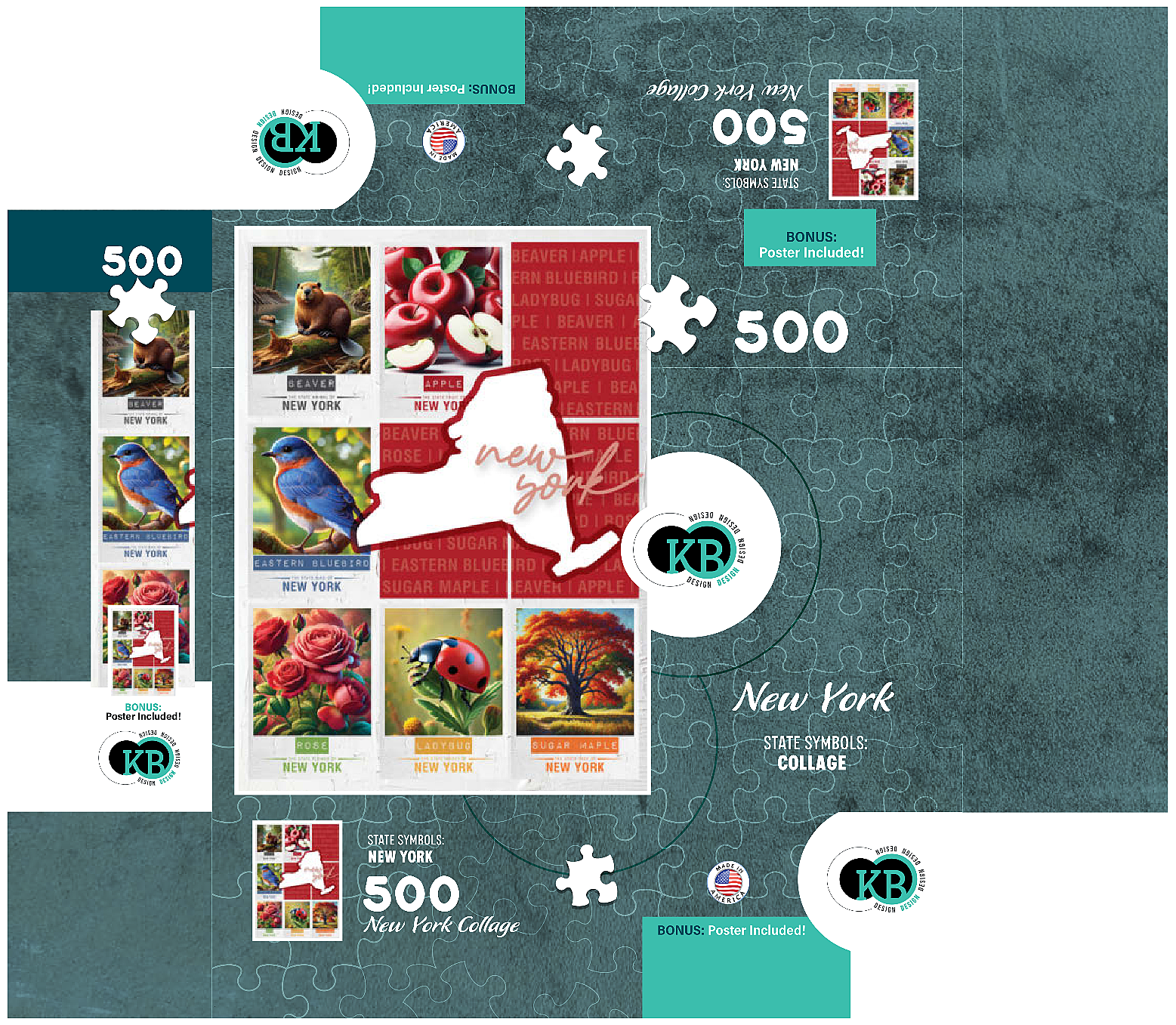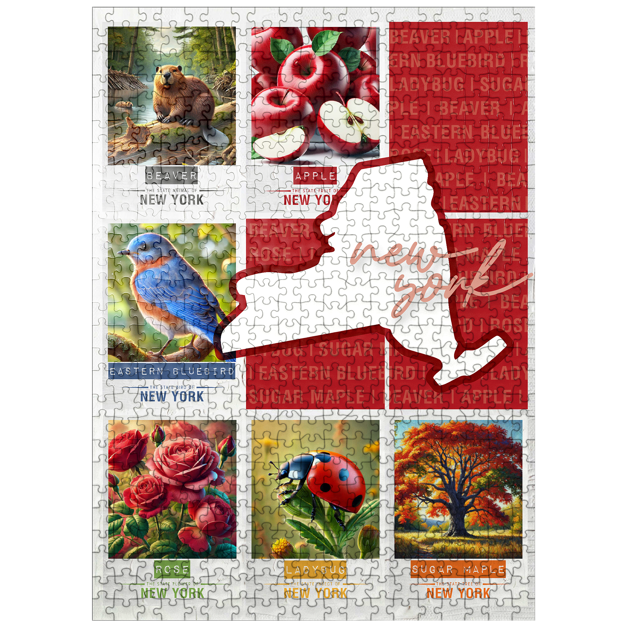 The State Symbols Posters are a fun, colorful way to show your state pride. each poster features a collage of the state: animal, fruit, bird, flower, insect, and tree from the region. this would make a great gift for a fellow out-of-state puzzle-lover-or go on an 'adventure across the country' and collect them all for yourself!