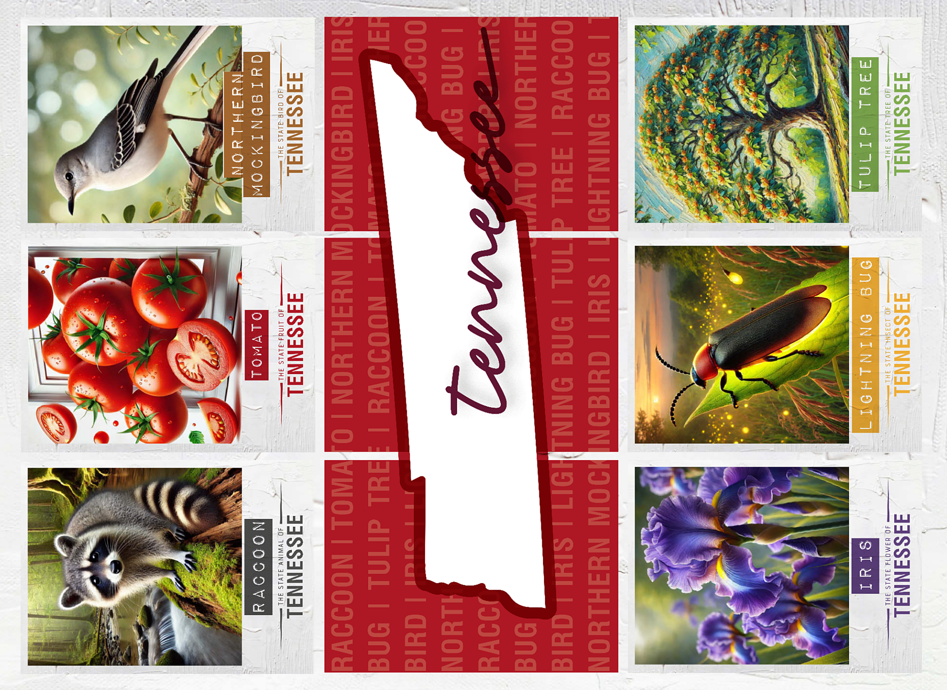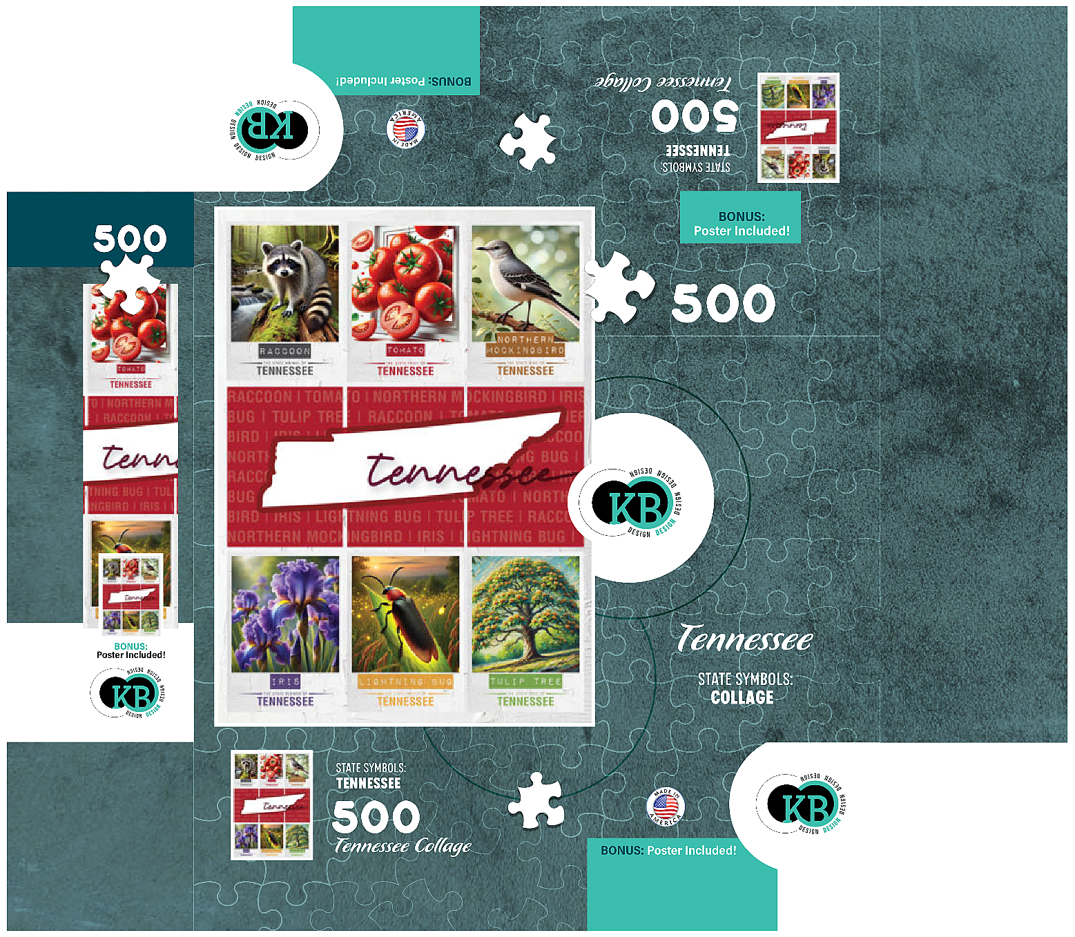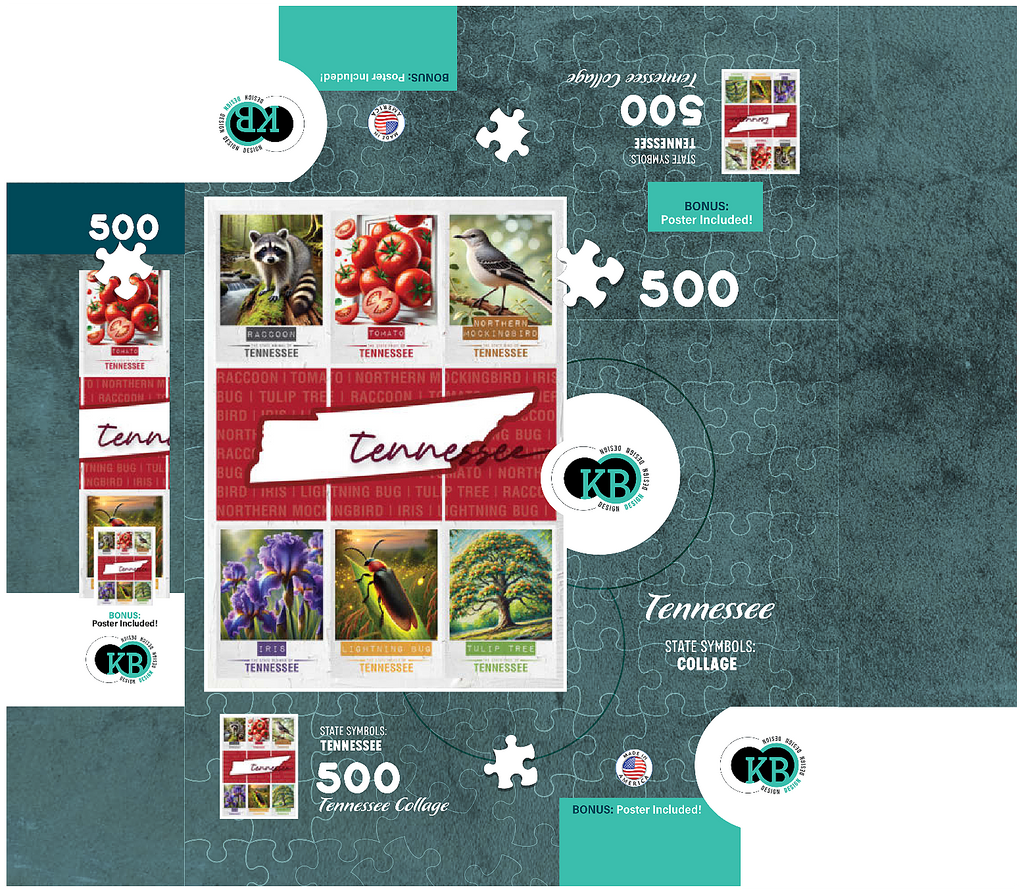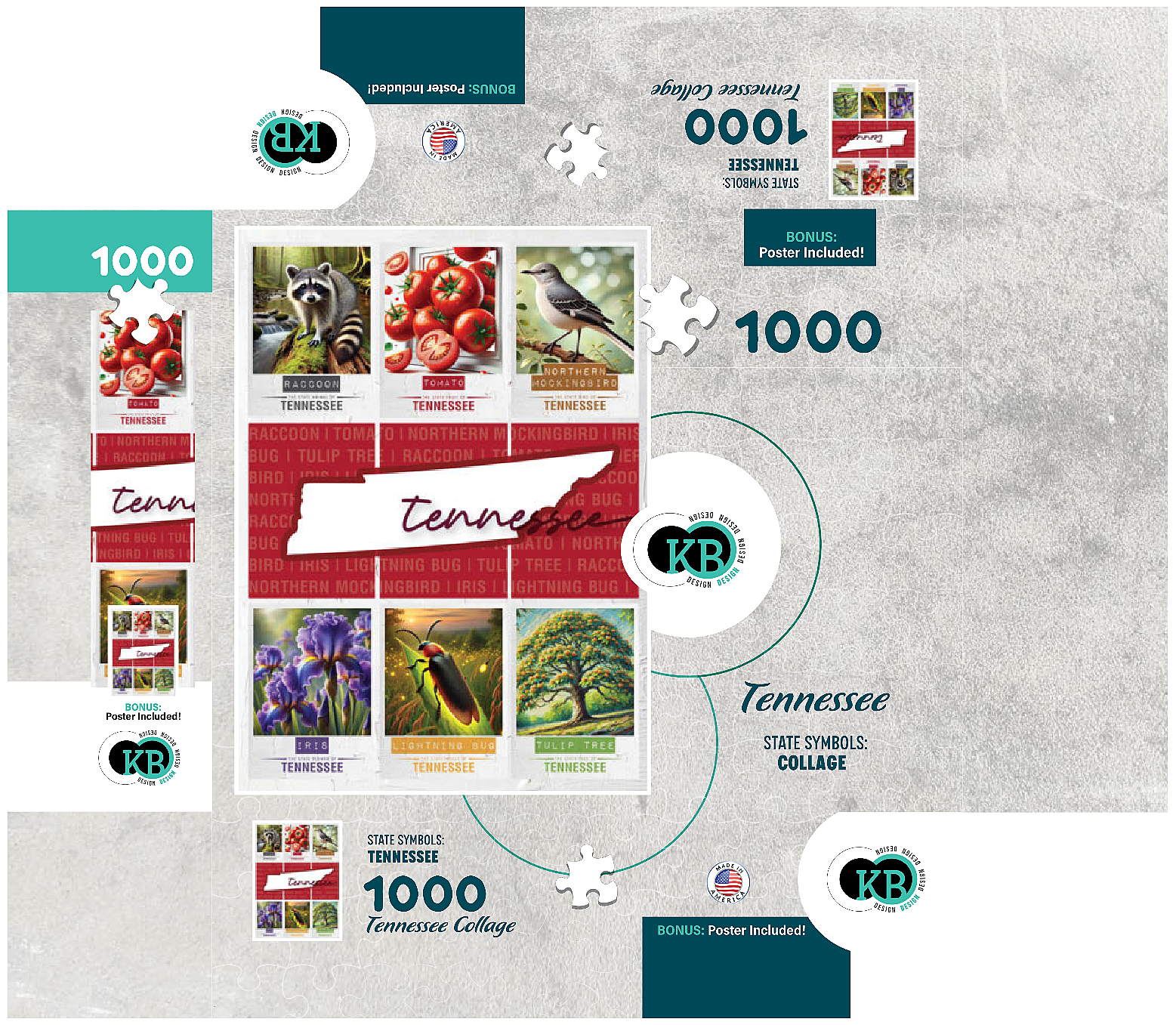 The State Symbols Posters are a fun, colorful way to show your state pride. each poster features a collage of the state: animal, fruit, bird, flower, insect, and tree from the region. this would make a great gift for a fellow out-of-state puzzle-lover-or go on an 'adventure across the country' and collect them all for yourself!