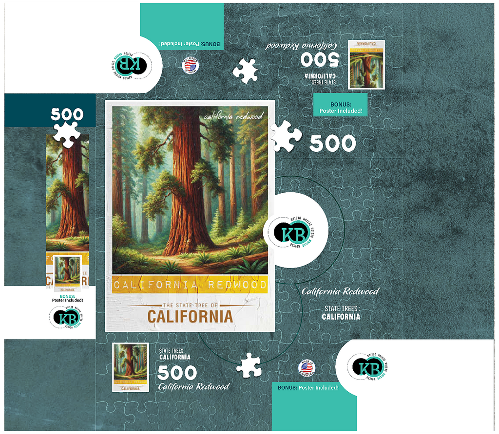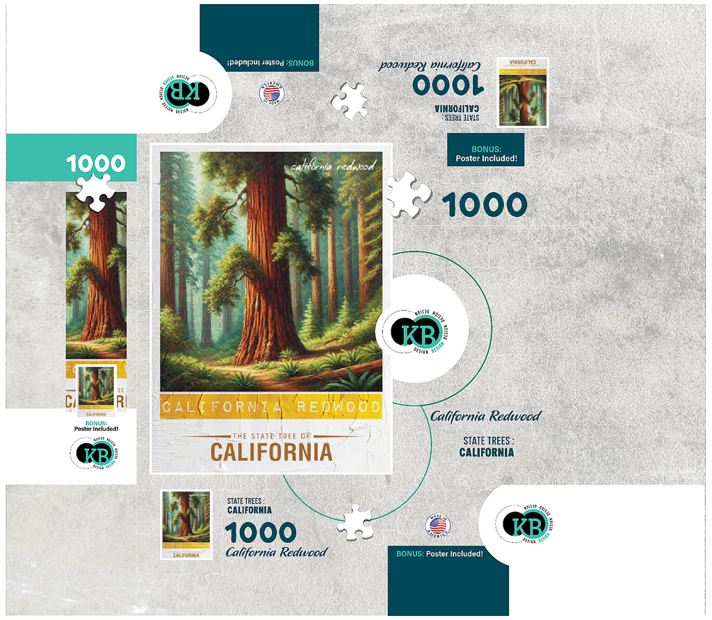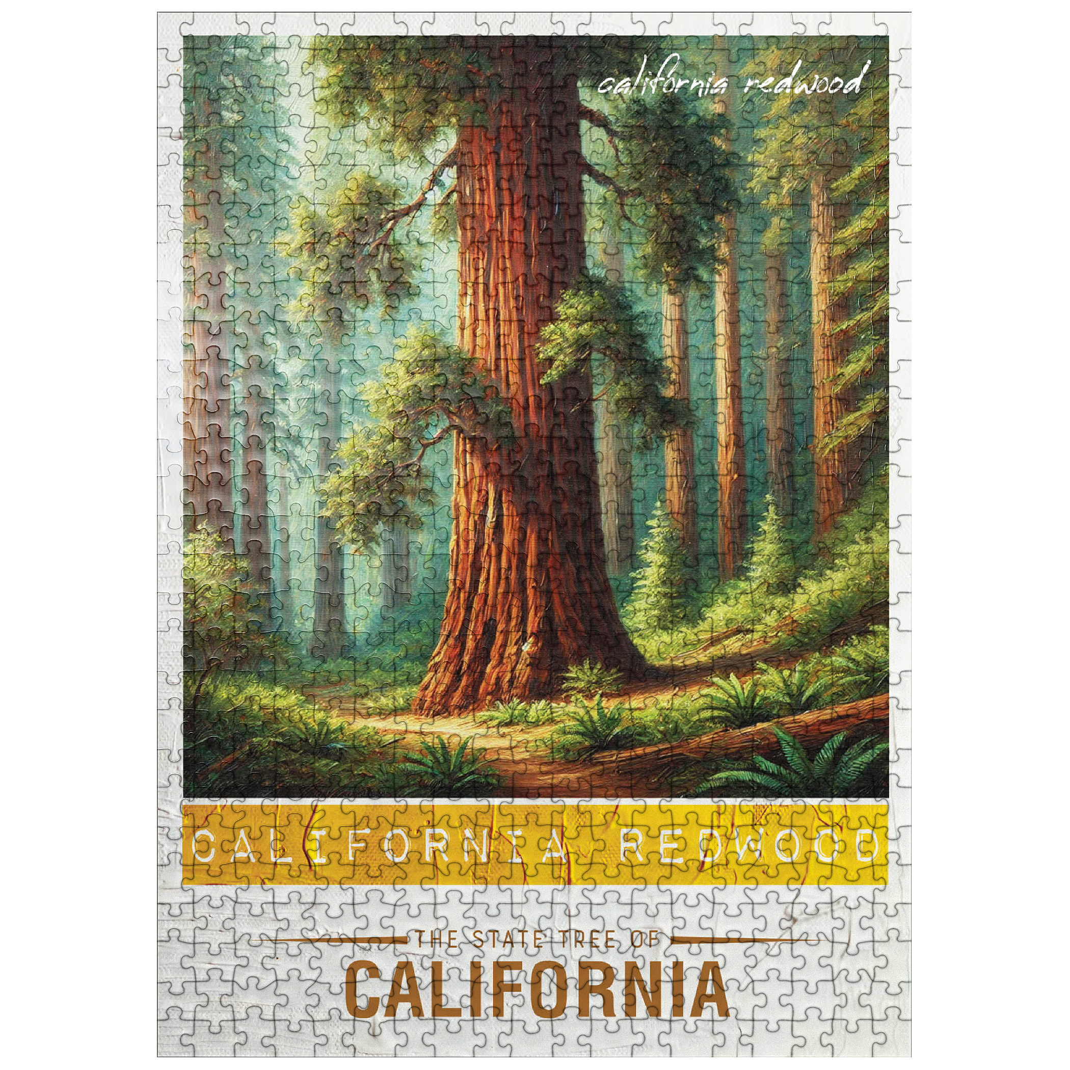 The California redwood, officially known as the coast redwood (Sequoia sempervirens), is one of California's state trees, designated in 1937. These majestic evergreens are the tallest trees in the world, reaching heights over 350 feet. They thrive along the foggy northern California coast and can live for more than 2,000 years. Their thick, fire-resistant bark and rapid growth make them resilient, and they provide vital habitat for wildlife. The State Trees collection is a unique way to show your state pride! Choose your state, or pick your favorite tree from the collection and watch it come to life. This would make a great gift for a fellow out-of-state puzzle-lover. Go on an 'adventure across the country' and collect them all!