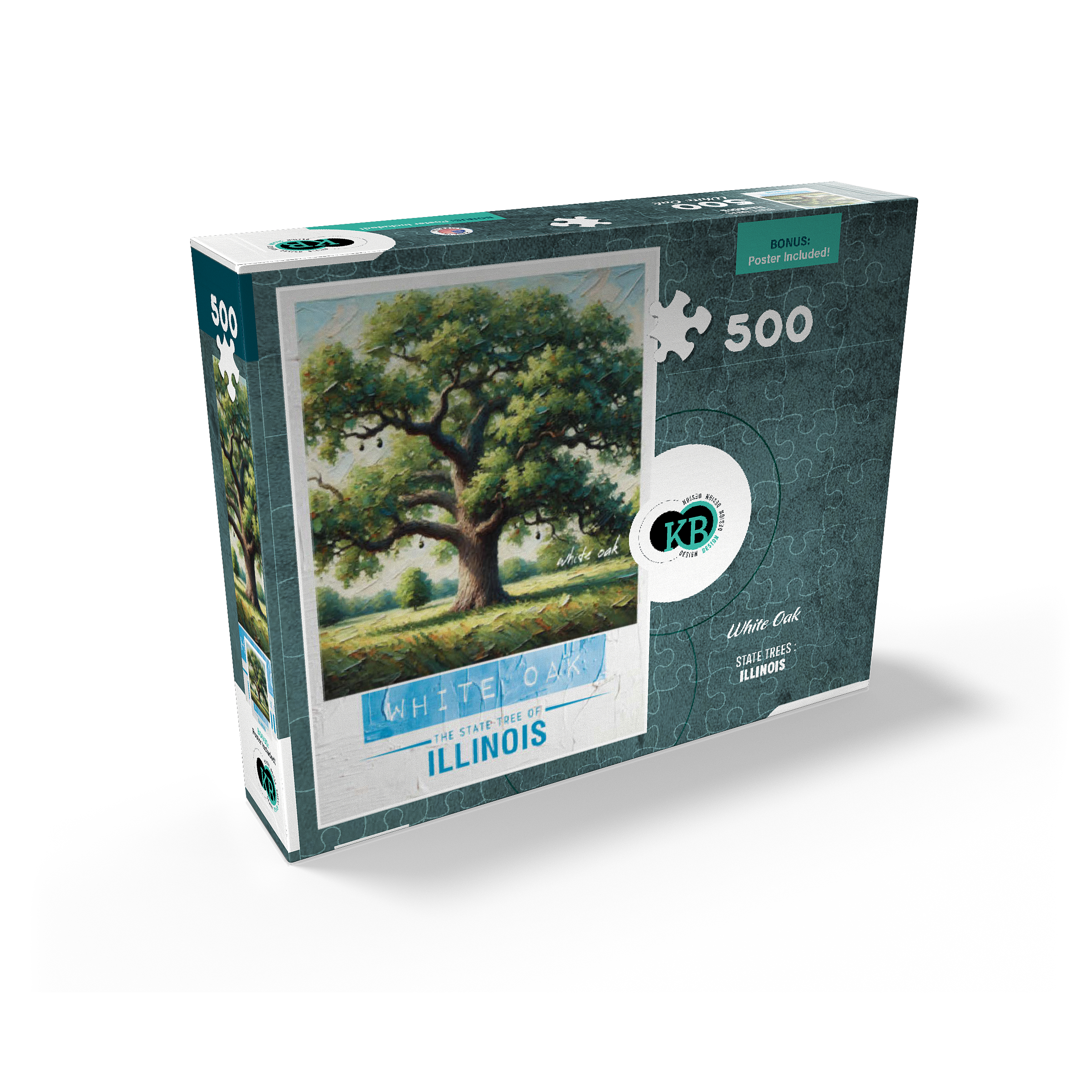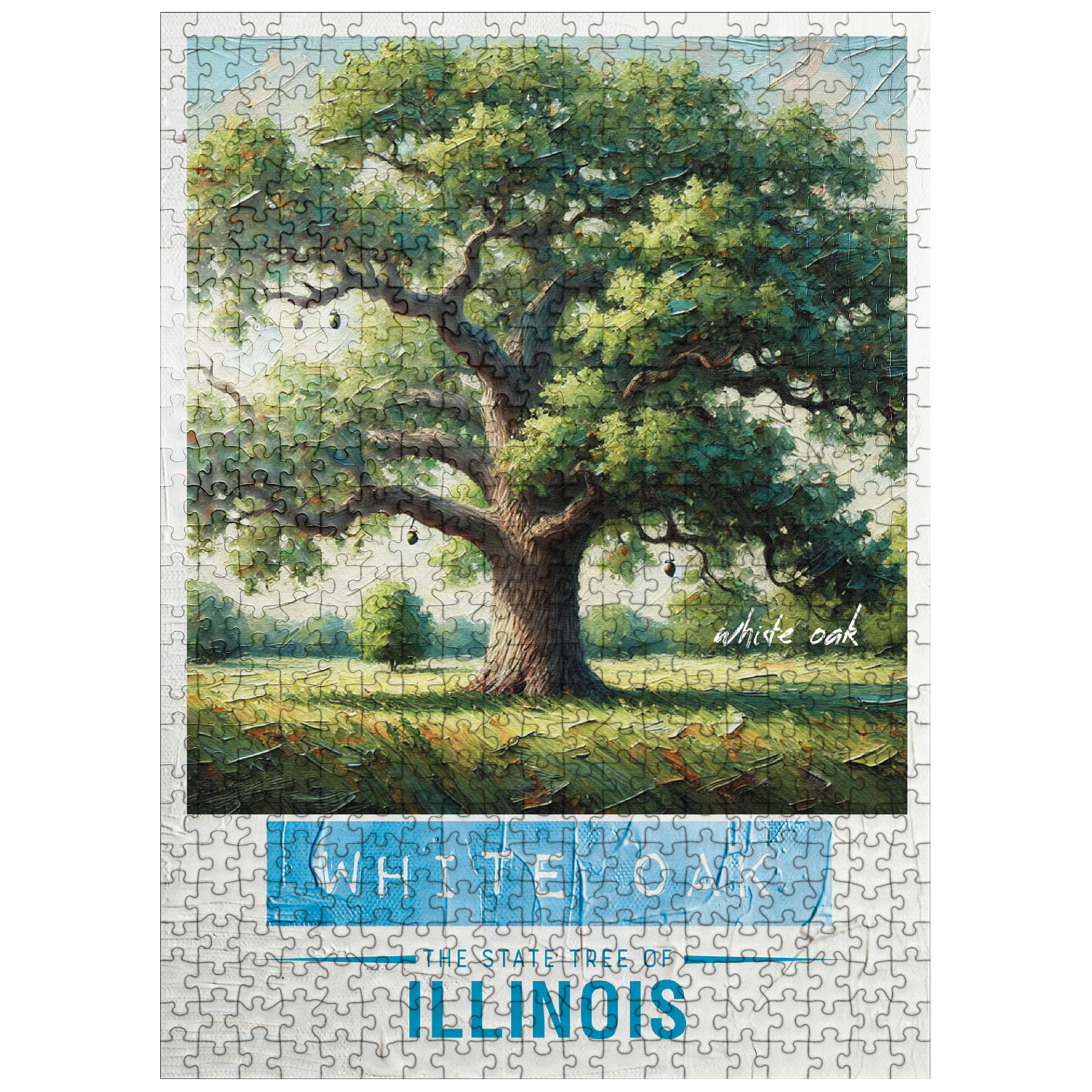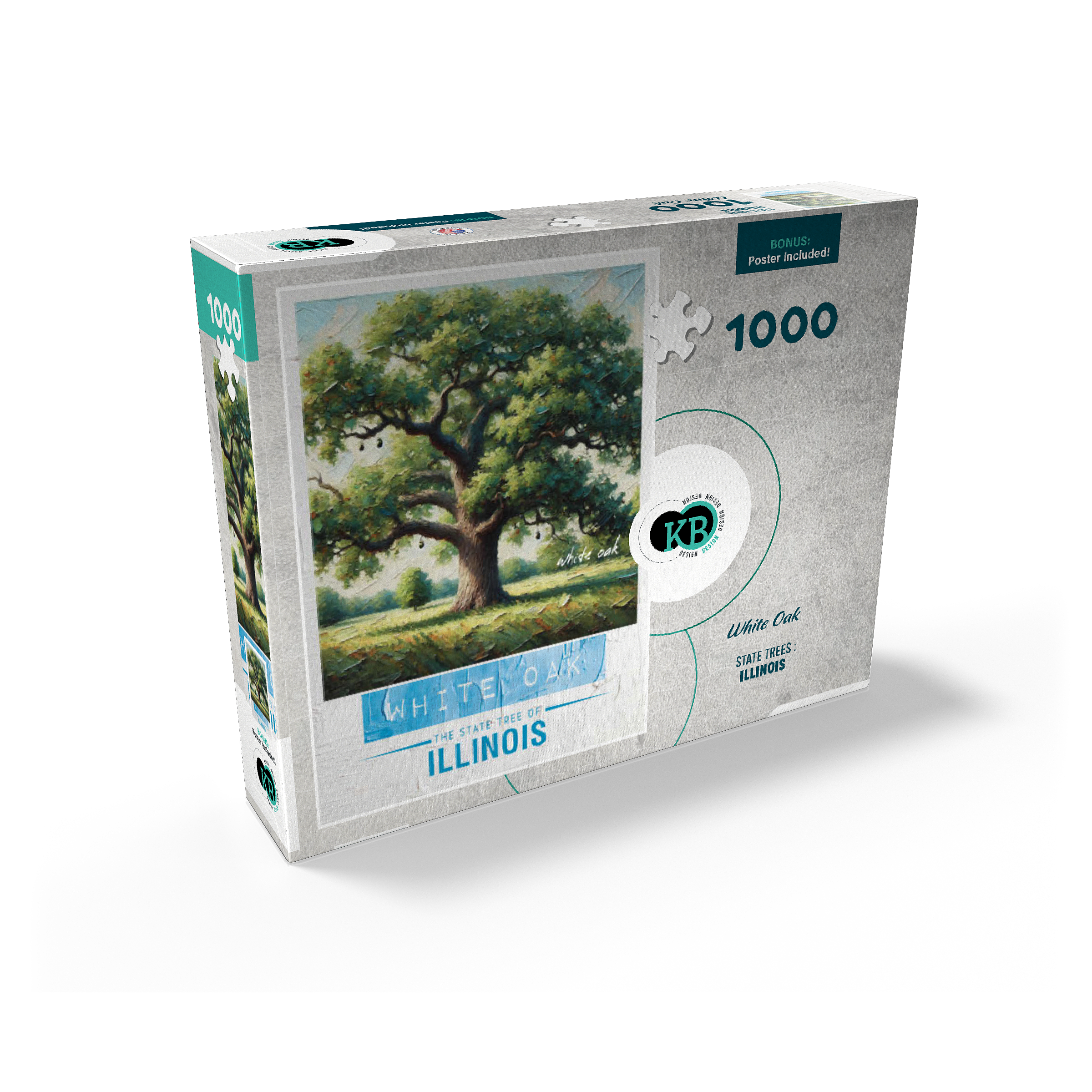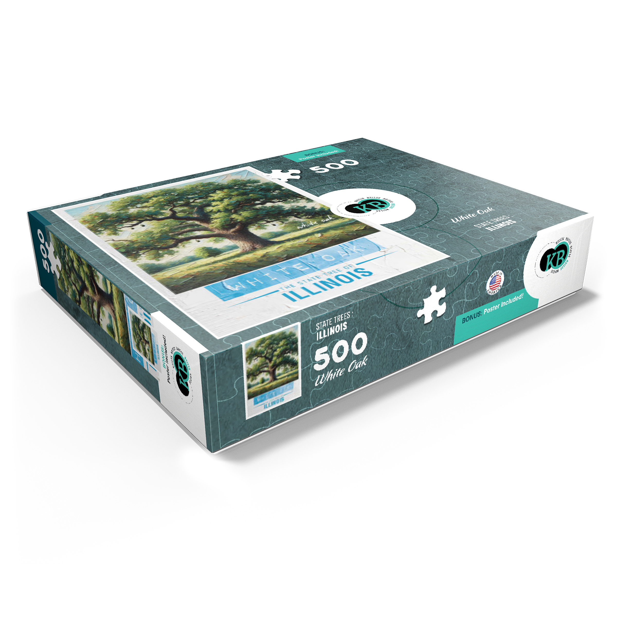 The state tree of Illinois is the white oak (Quercus alba), designated in 1973. This strong, long-lived tree can grow over 100 feet tall and provides valuable wood for furniture and construction. White oaks produce acorns that serve as an important food source for wildlife. Known for its resilience and deep roots, the tree symbolizes strength and stability. It is a vital part of Illinois' forests and natural heritage. The State Trees collection is a unique way to show your state pride! Choose your state, or pick your favorite tree from the collection and watch it come to life. This would make a great gift for a fellow out-of-state puzzle-lover. Go on an 'adventure across the state' and collect them all!