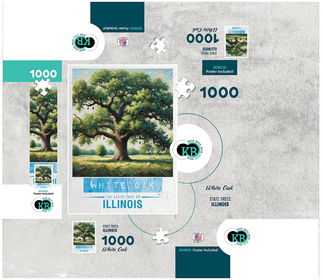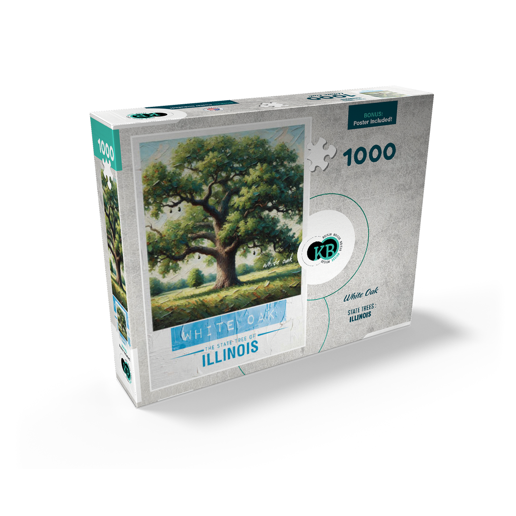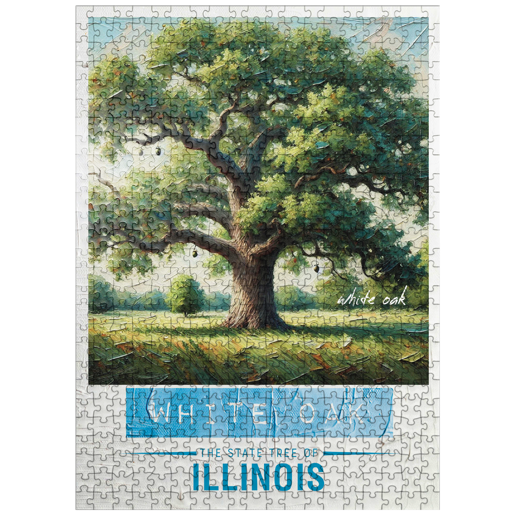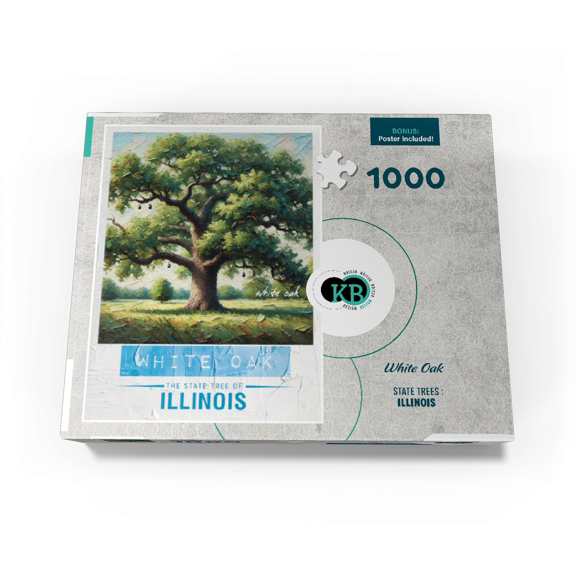 The state tree of Illinois is the white oak (Quercus alba), designated in 1973. This strong, long-lived tree can grow over 100 feet tall and provides valuable wood for furniture and construction. White oaks produce acorns that serve as an important food source for wildlife. Known for its resilience and deep roots, the tree symbolizes strength and stability. It is a vital part of Illinois' forests and natural heritage. The State Trees collection is a unique way to show your state pride! Choose your state, or pick your favorite tree from the collection and watch it come to life. This would make a great gift for a fellow out-of-state puzzle-lover. Go on an 'adventure across the state' and collect them all!