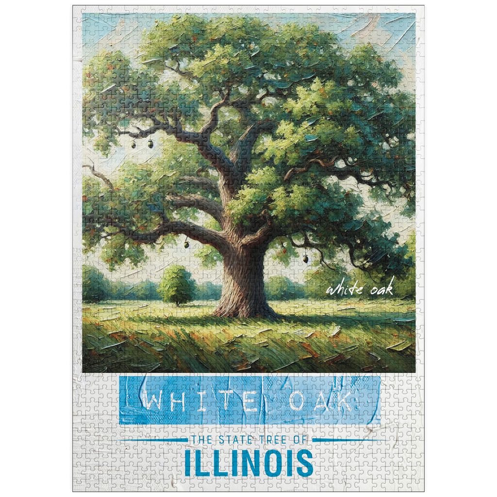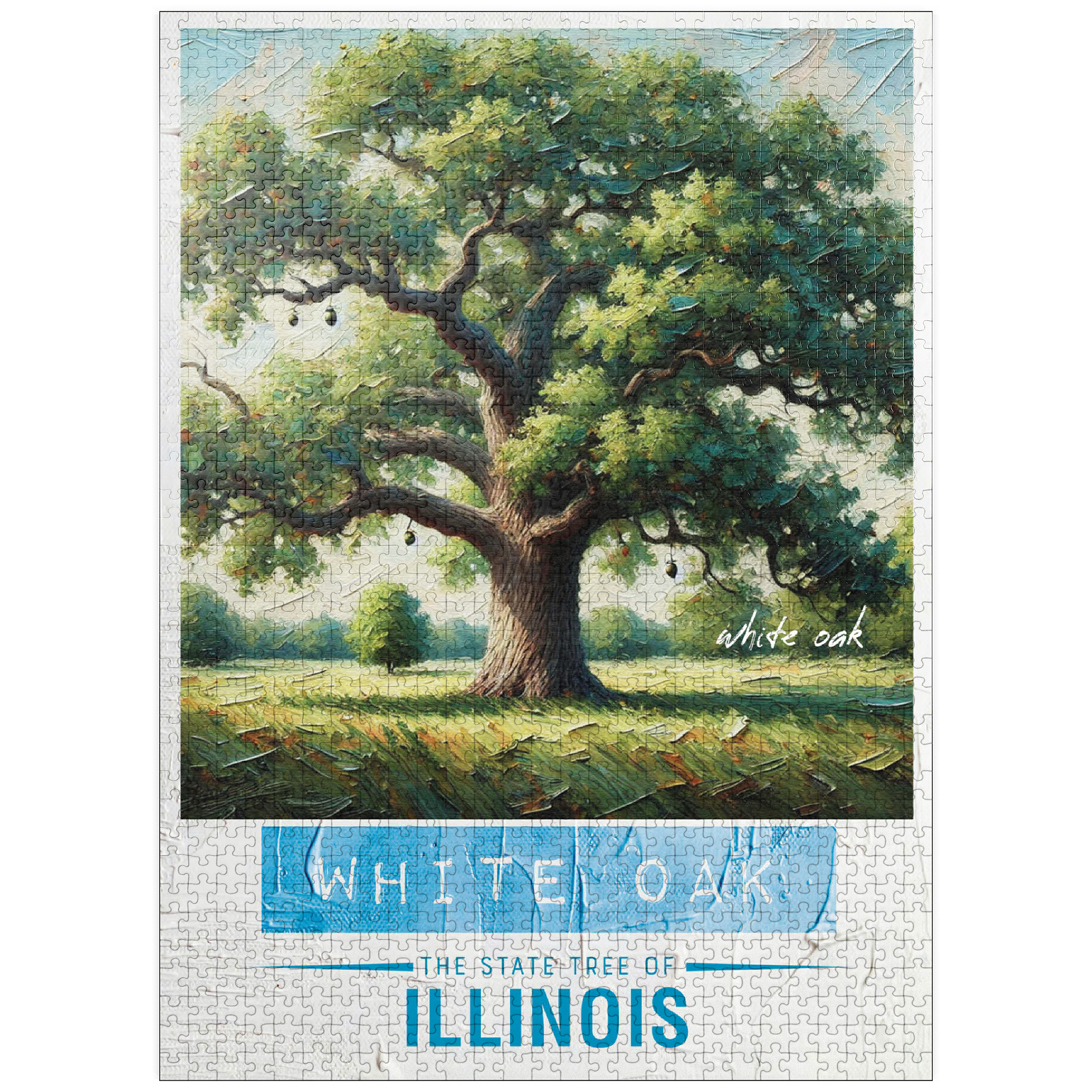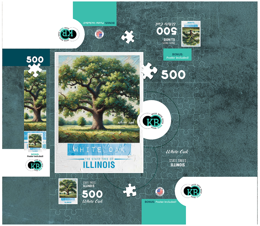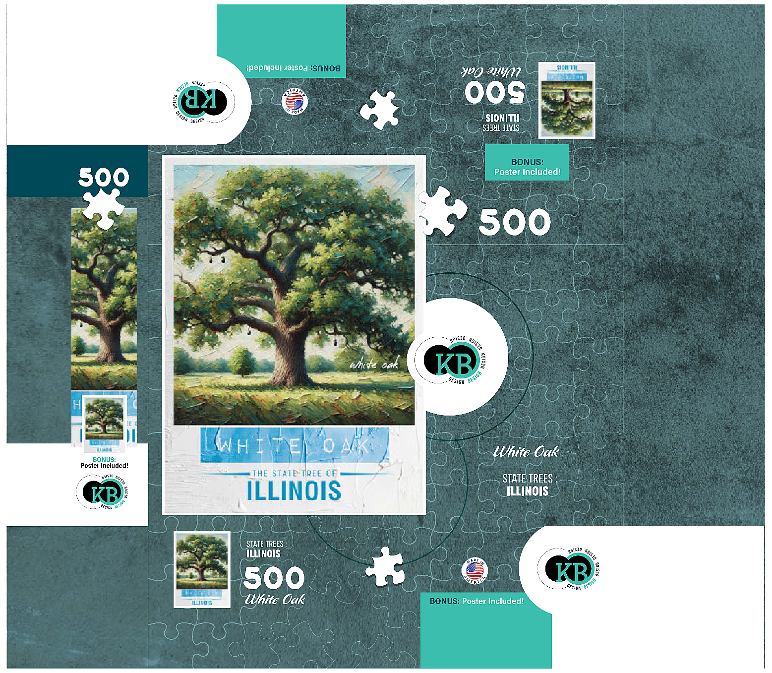 The state tree of Illinois is the white oak (Quercus alba), designated in 1973. This strong, long-lived tree can grow over 100 feet tall and provides valuable wood for furniture and construction. White oaks produce acorns that serve as an important food source for wildlife. Known for its resilience and deep roots, the tree symbolizes strength and stability. It is a vital part of Illinois' forests and natural heritage. The State Trees collection is a unique way to show your state pride! Choose your state, or pick your favorite tree from the collection and watch it come to life. This would make a great gift for a fellow out-of-state puzzle-lover. Go on an 'adventure across the state' and collect them all!