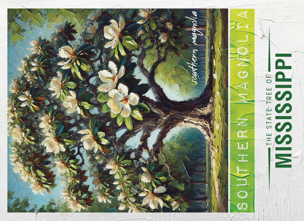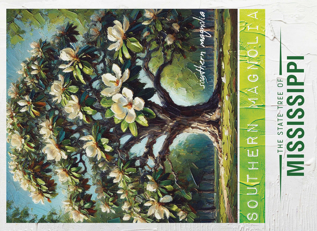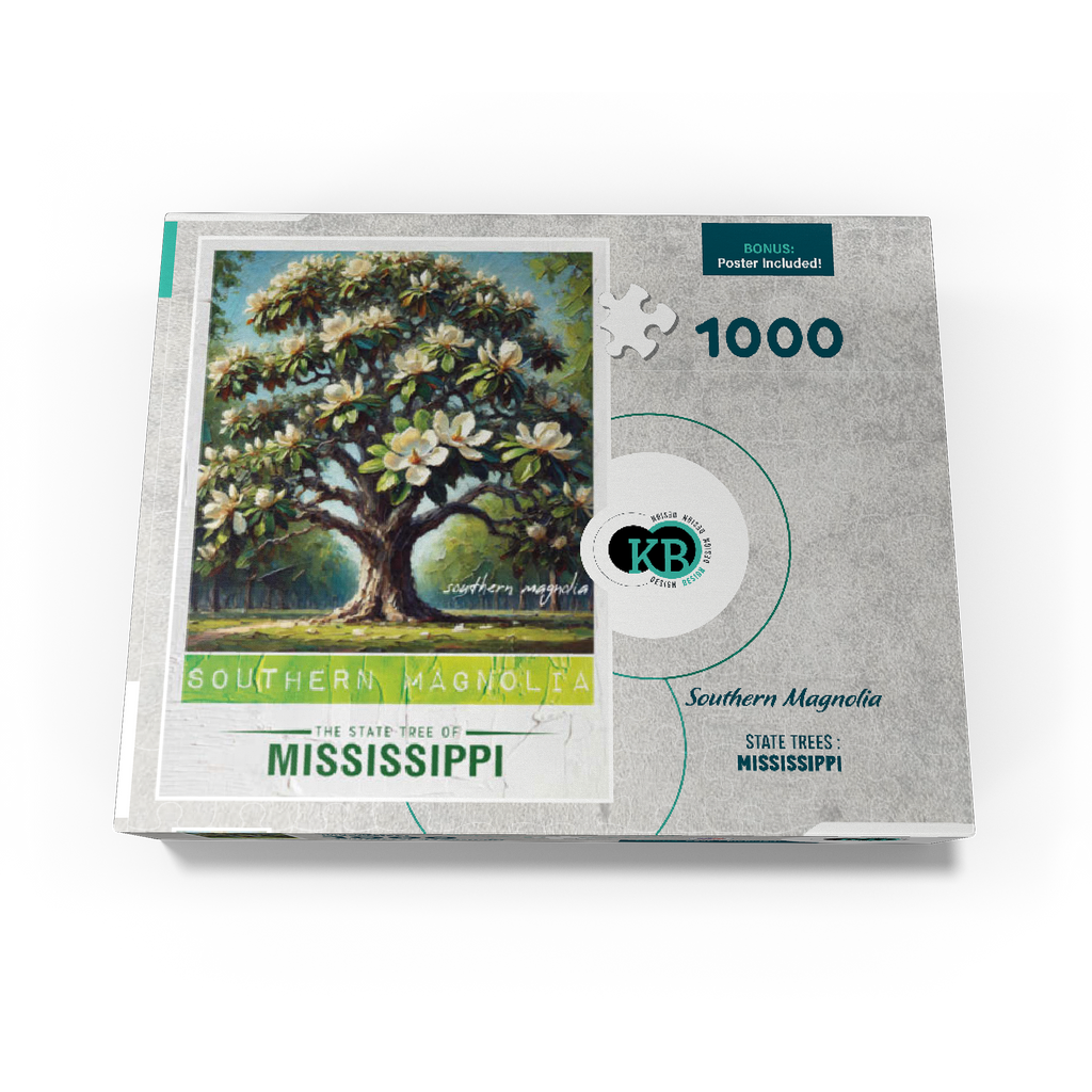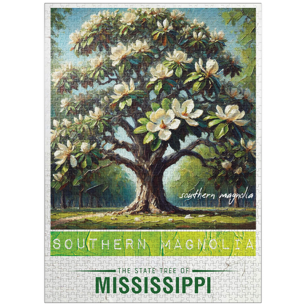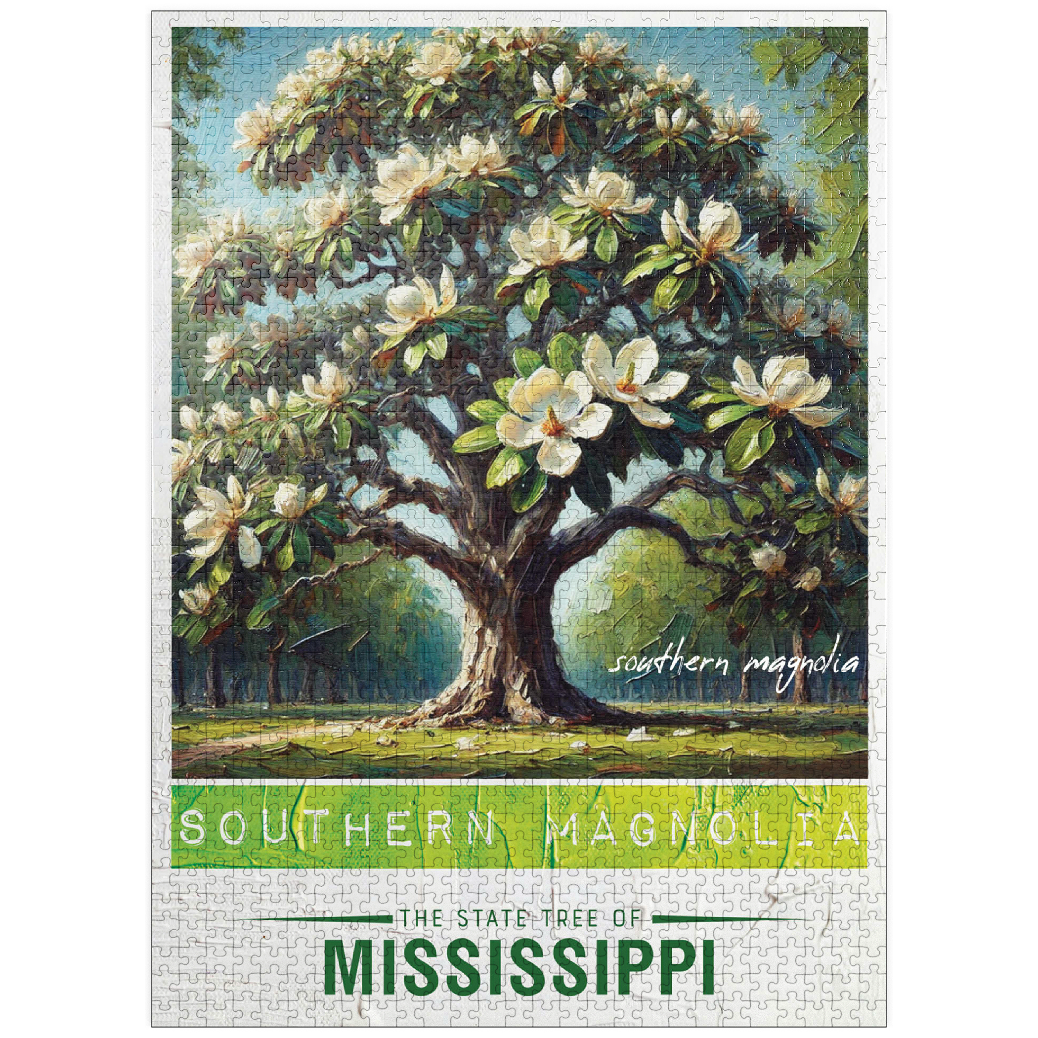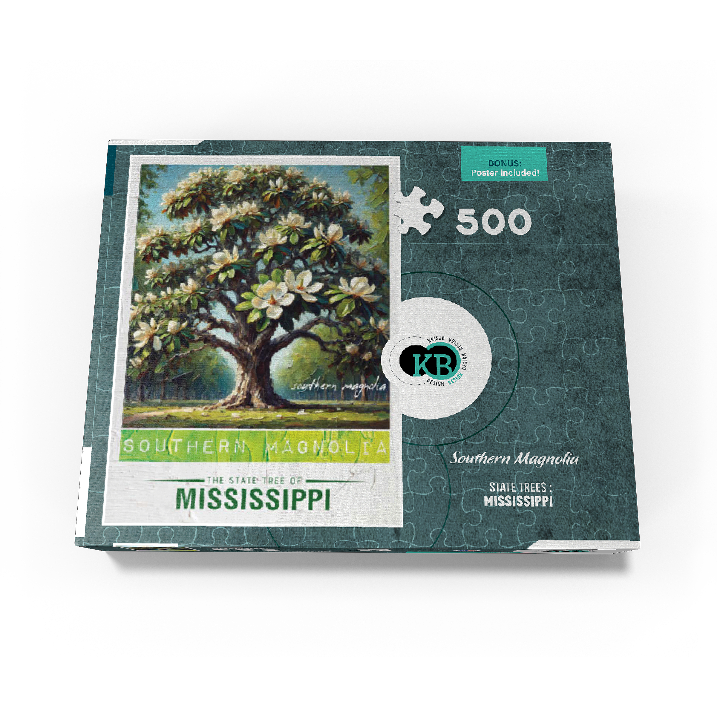 The state tree of Mississippi is the southern magnolia (Magnolia grandiflora), designated in 1938. Known for its large, fragrant white flowers and glossy evergreen leaves, this iconic tree thrives in the warm, humid climate of the South. Southern magnolias are commonly planted as ornamental trees and are a symbol of beauty and strength. Their wood is used for furniture and construction, while their flowers attract pollinators. The tree represents Mississippi's rich natural heritage and Southern charm. The State Trees collection is a unique way to show your state pride! Choose your state, or pick your favorite tree from the collection and watch it come to life. This would make a great gift for a fellow out-of-state puzzle-lover. Go on an 'adventure across the country' and collect them all!