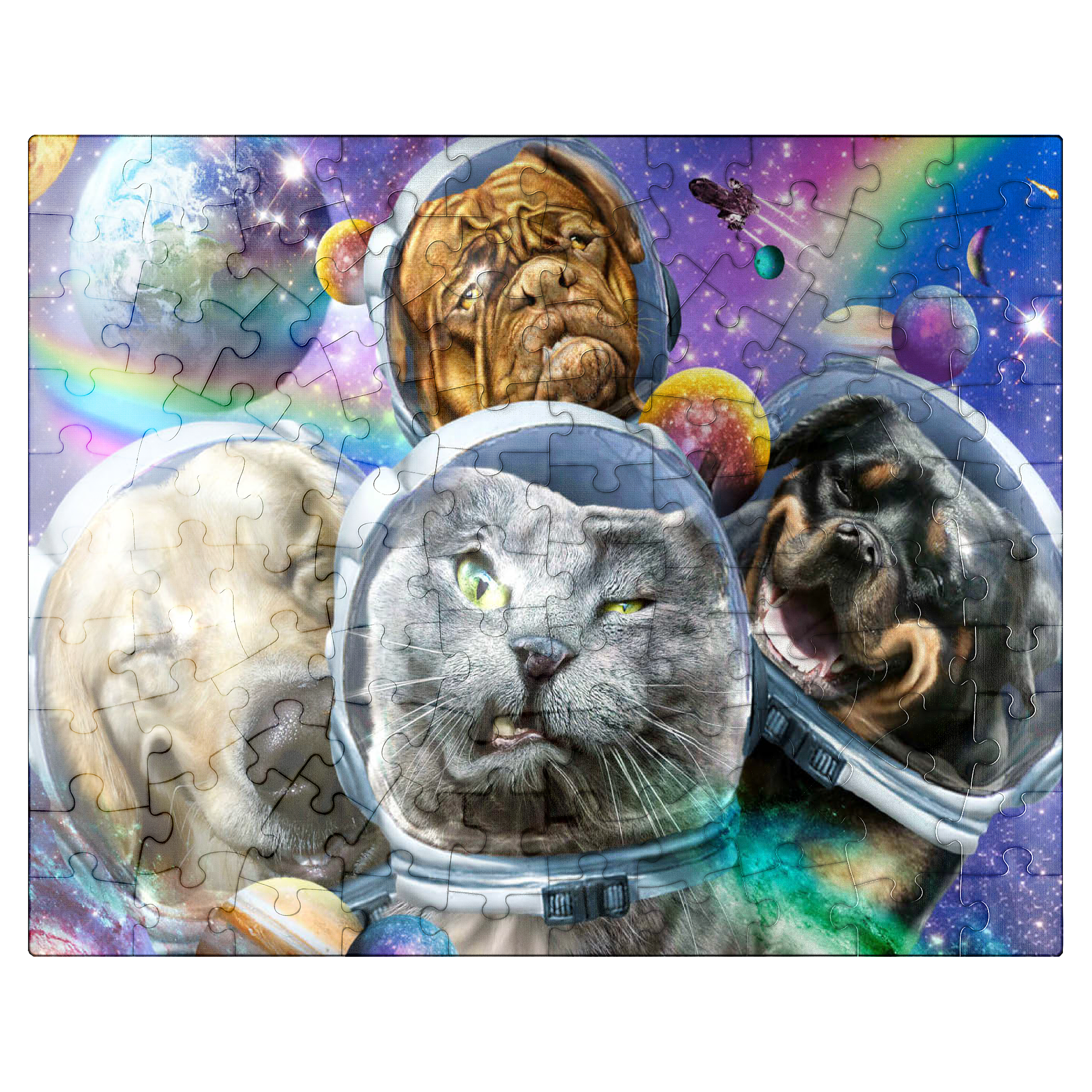 A quirky astronaut cat takes a selfie in outer space, surrounded by stars and planets. This whimsical artwork merges cosmic exploration with feline charm, capturing the playful imagination of Random Galaxy's interstellar pet universe.