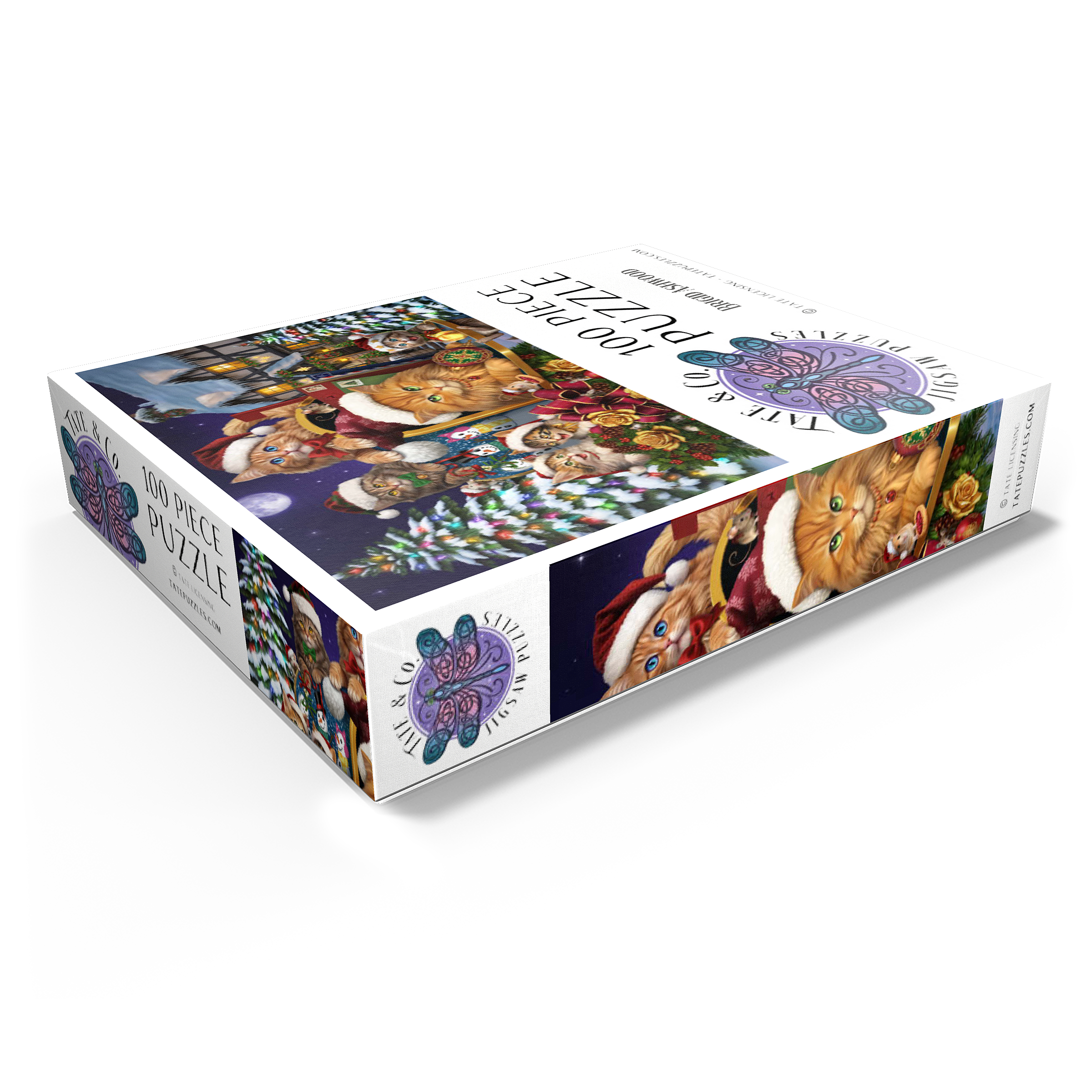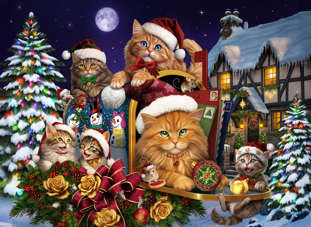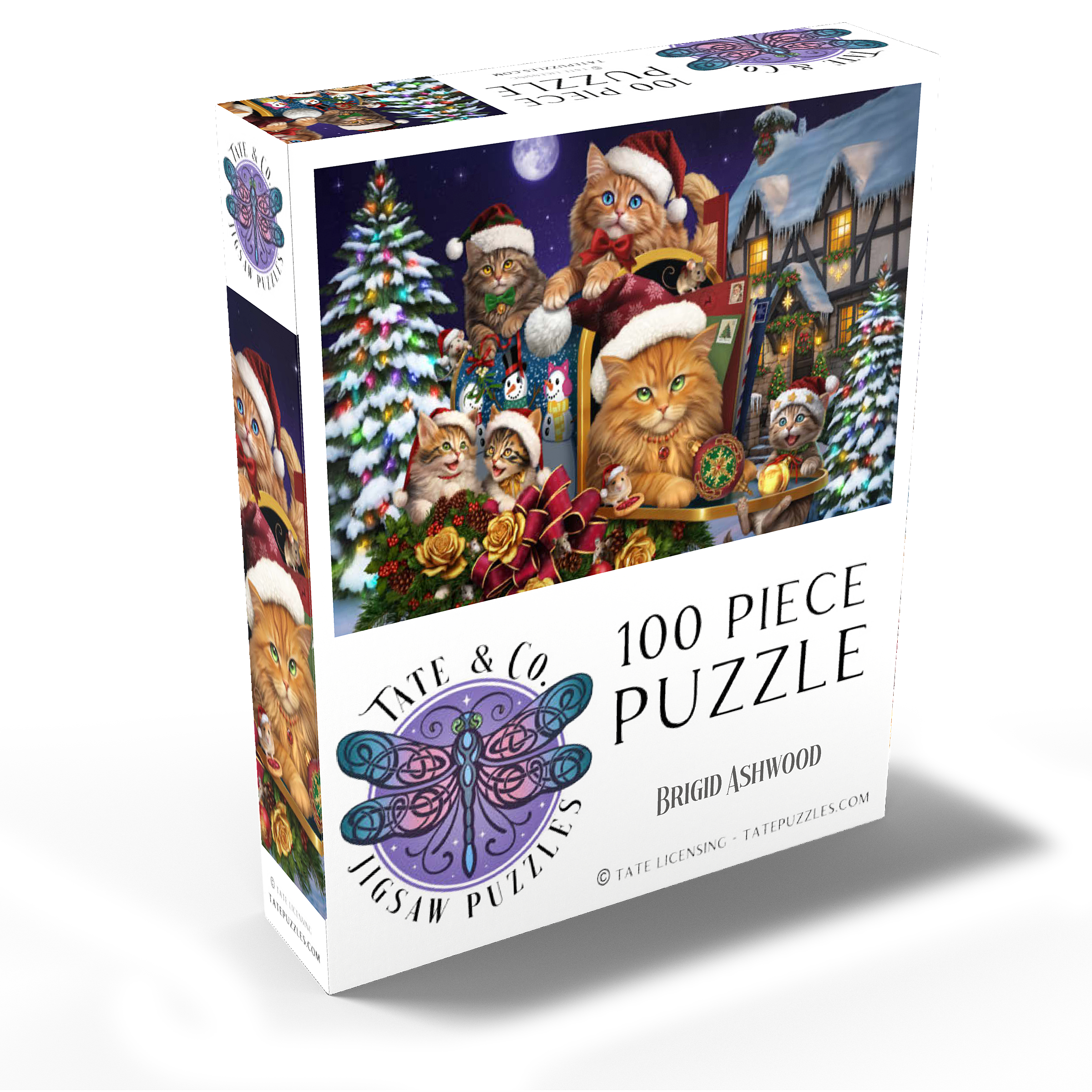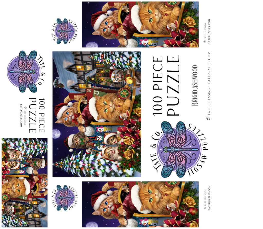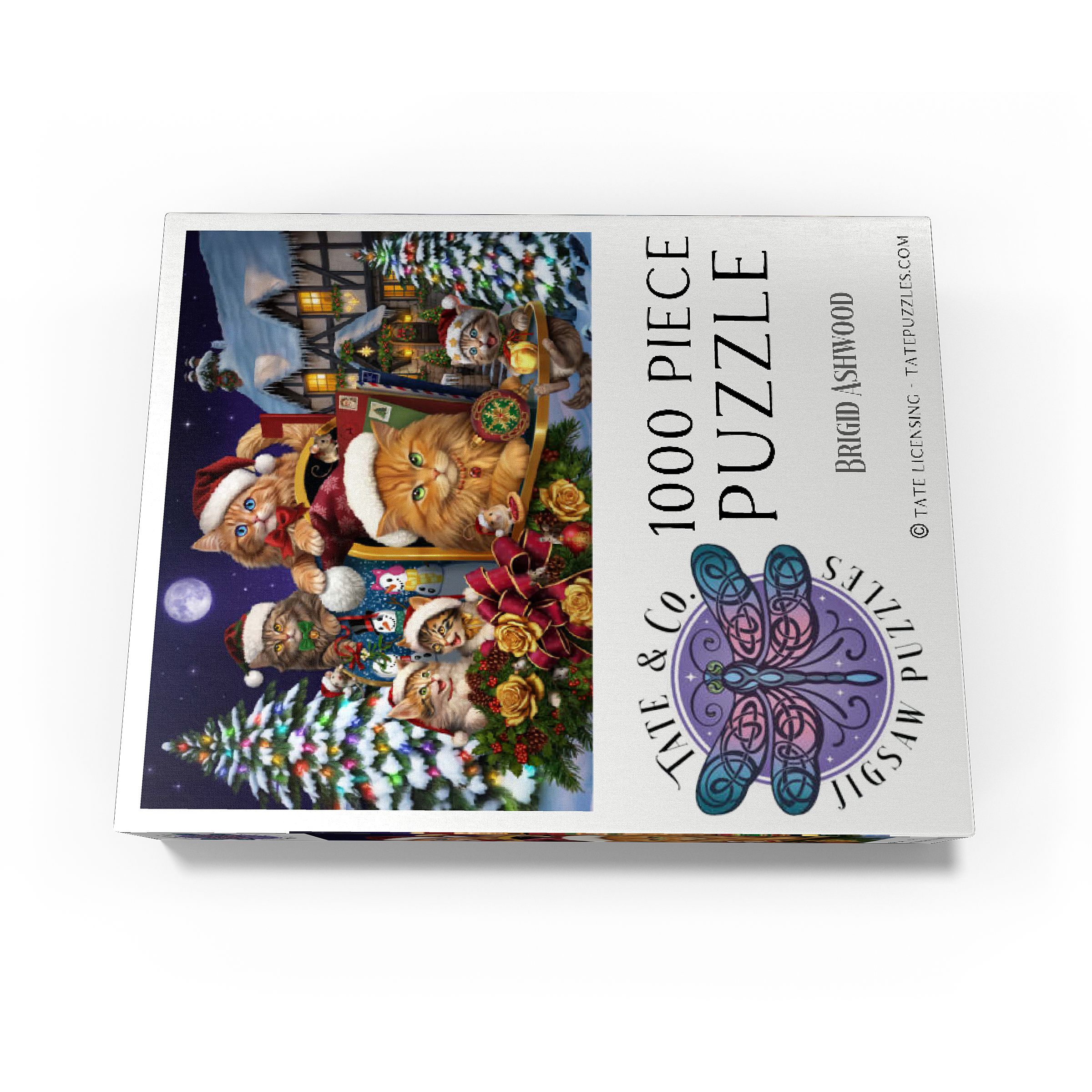 Brigid Ashwood's Christmas Cats is a festive holiday puzzle featuring adorable kittens in Santa hats, gathered among glowing trees, snowy evergreens, and a warmly lit cottage. Each cat is playfully surrounded by ornaments, ribbons, and tiny details like mice and holiday letters, making the image both charming and intricate to piece together. Perfect for cat lovers and holiday enthusiasts, this puzzle combines Ashwood's signature artistry with the joy of a cozy winter challenge the whole family can enjoy.