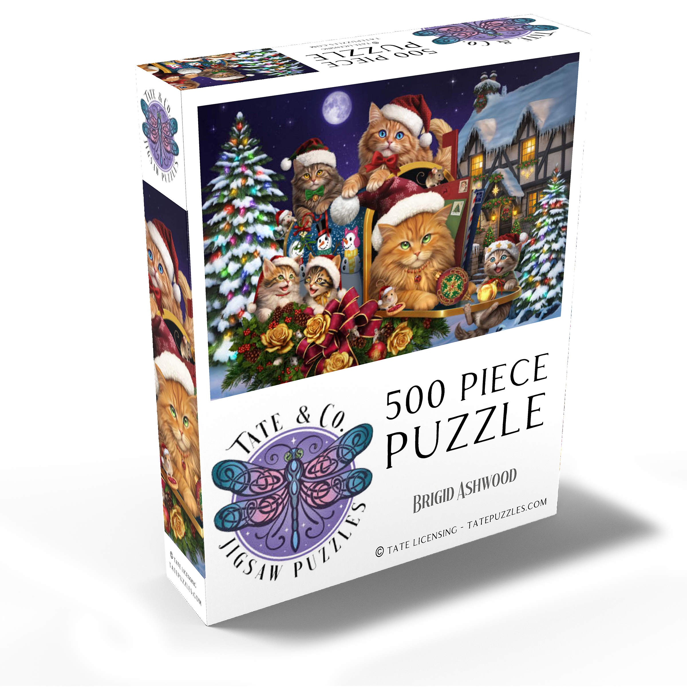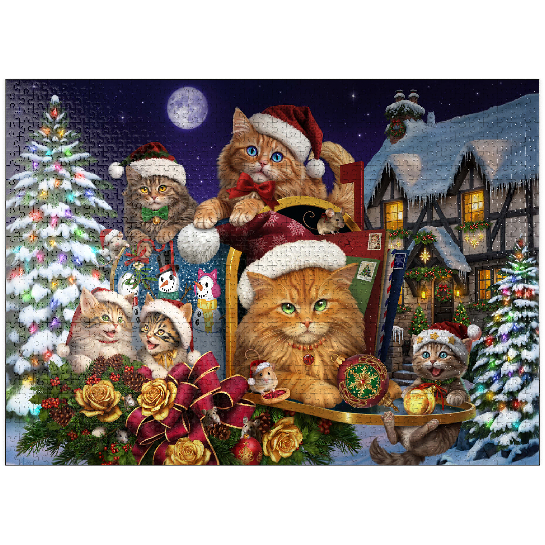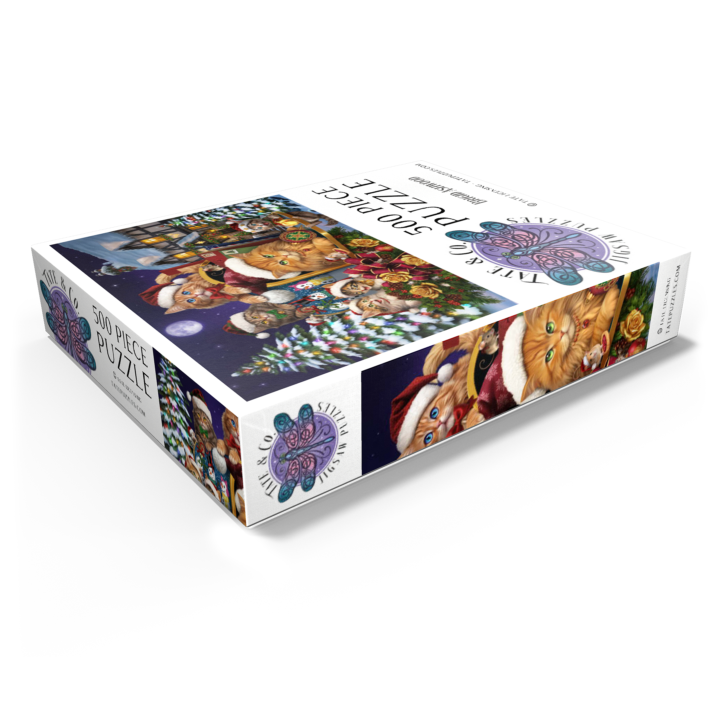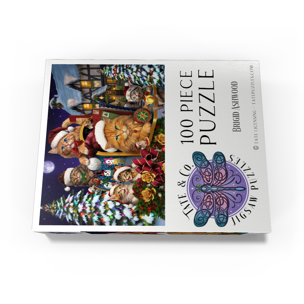 Brigid Ashwood's Christmas Cats is a festive holiday puzzle featuring adorable kittens in Santa hats, gathered among glowing trees, snowy evergreens, and a warmly lit cottage. Each cat is playfully surrounded by ornaments, ribbons, and tiny details like mice and holiday letters, making the image both charming and intricate to piece together. Perfect for cat lovers and holiday enthusiasts, this puzzle combines Ashwood's signature artistry with the joy of a cozy winter challenge the whole family can enjoy.