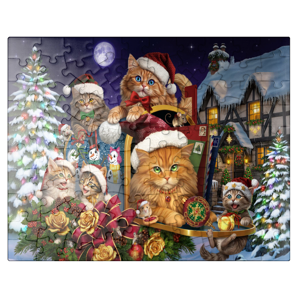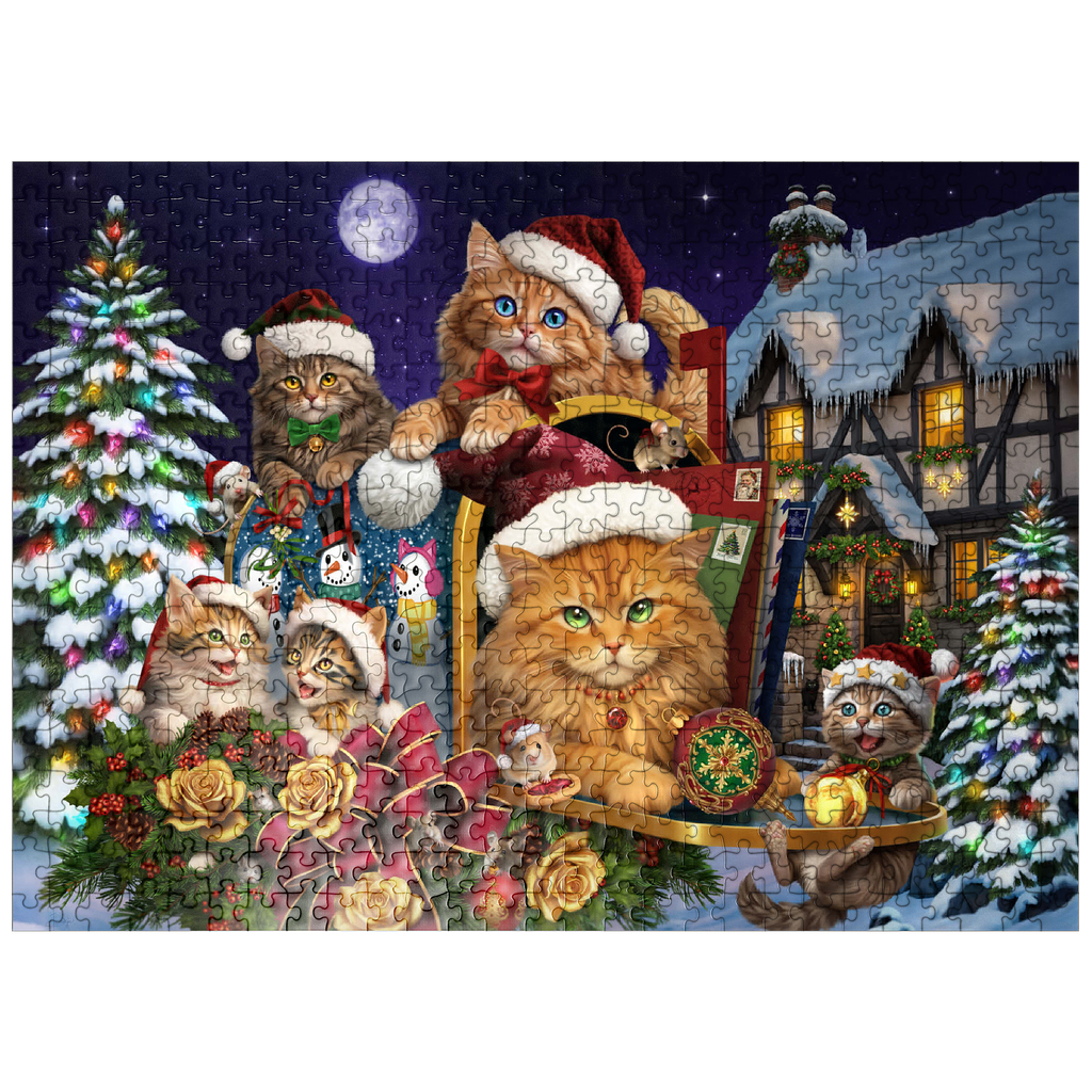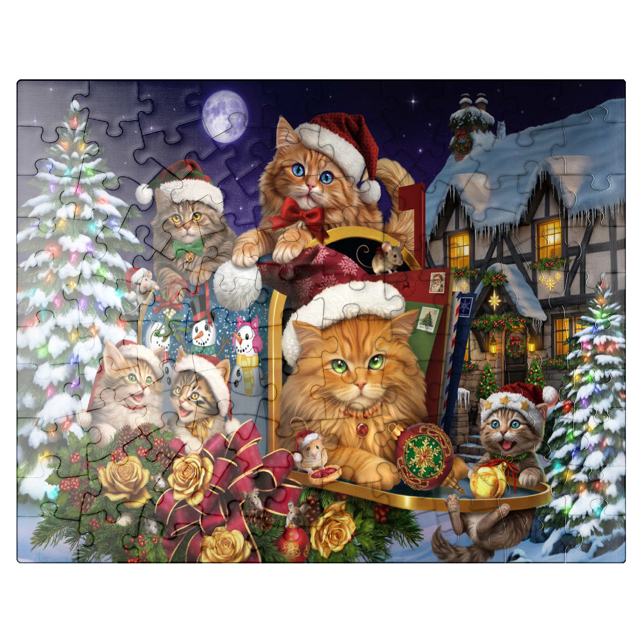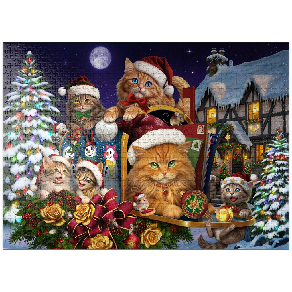 Brigid Ashwood's Christmas Cats is a festive holiday puzzle featuring adorable kittens in Santa hats, gathered among glowing trees, snowy evergreens, and a warmly lit cottage. Each cat is playfully surrounded by ornaments, ribbons, and tiny details like mice and holiday letters, making the image both charming and intricate to piece together. Perfect for cat lovers and holiday enthusiasts, this puzzle combines Ashwood's signature artistry with the joy of a cozy winter challenge the whole family can enjoy.