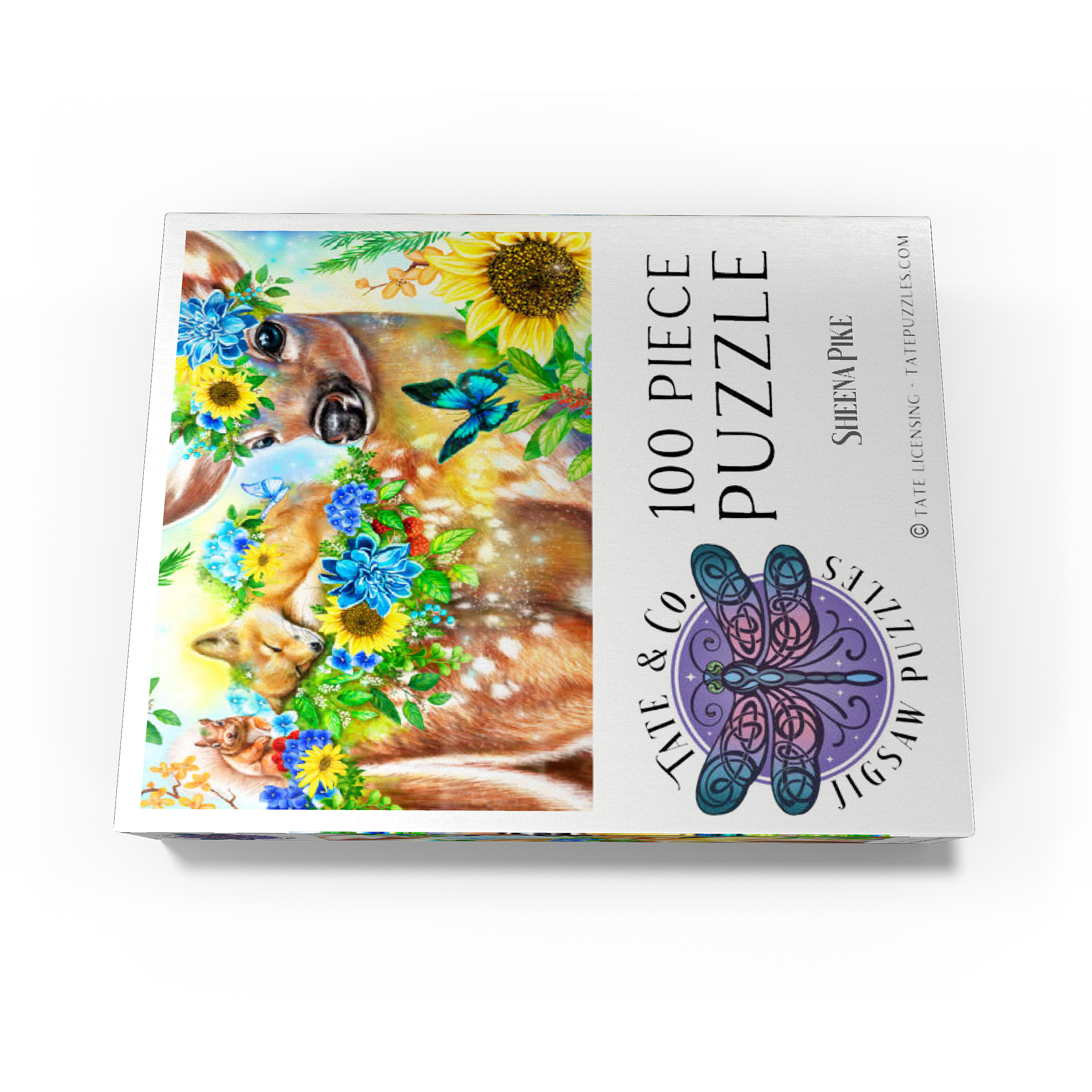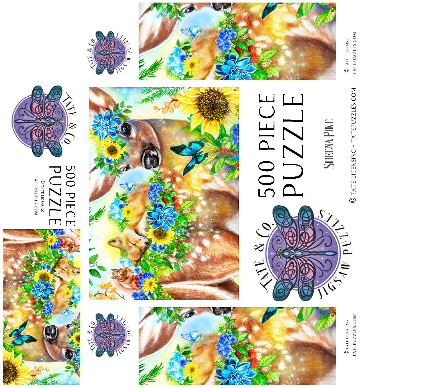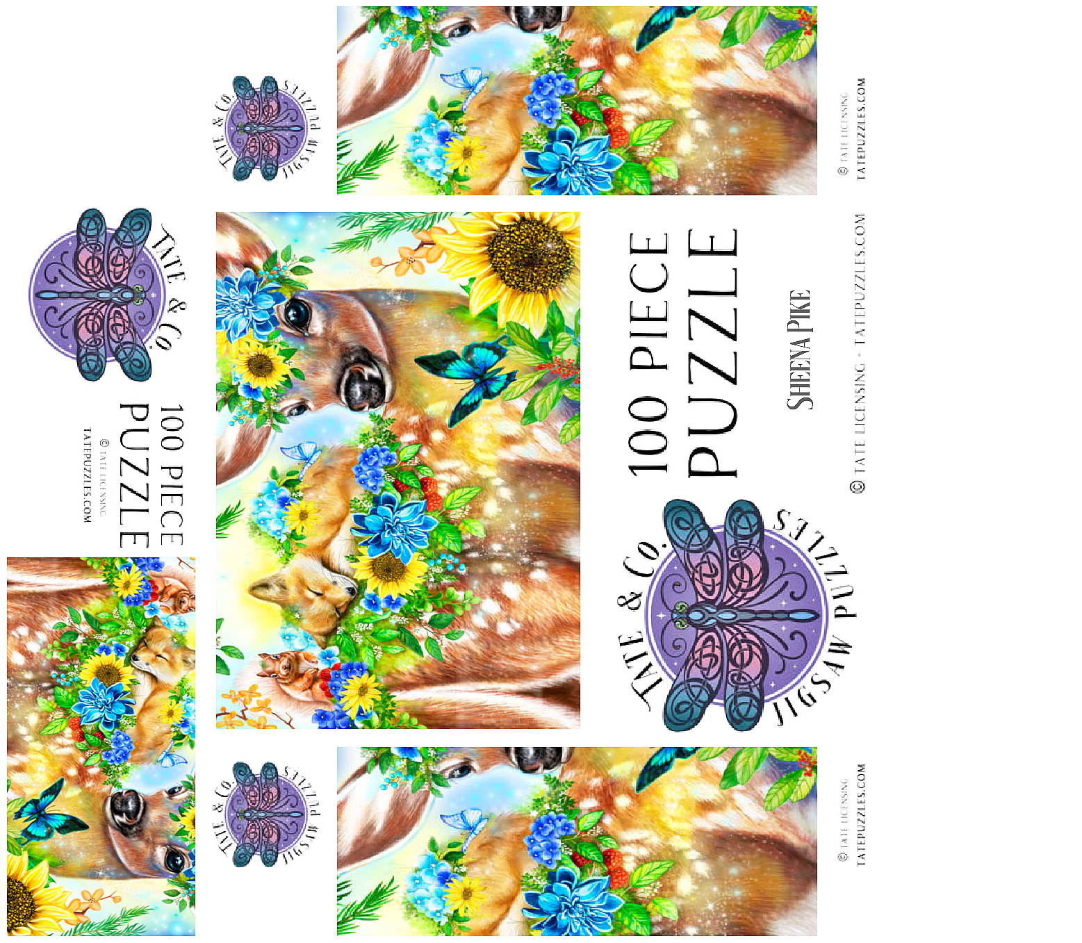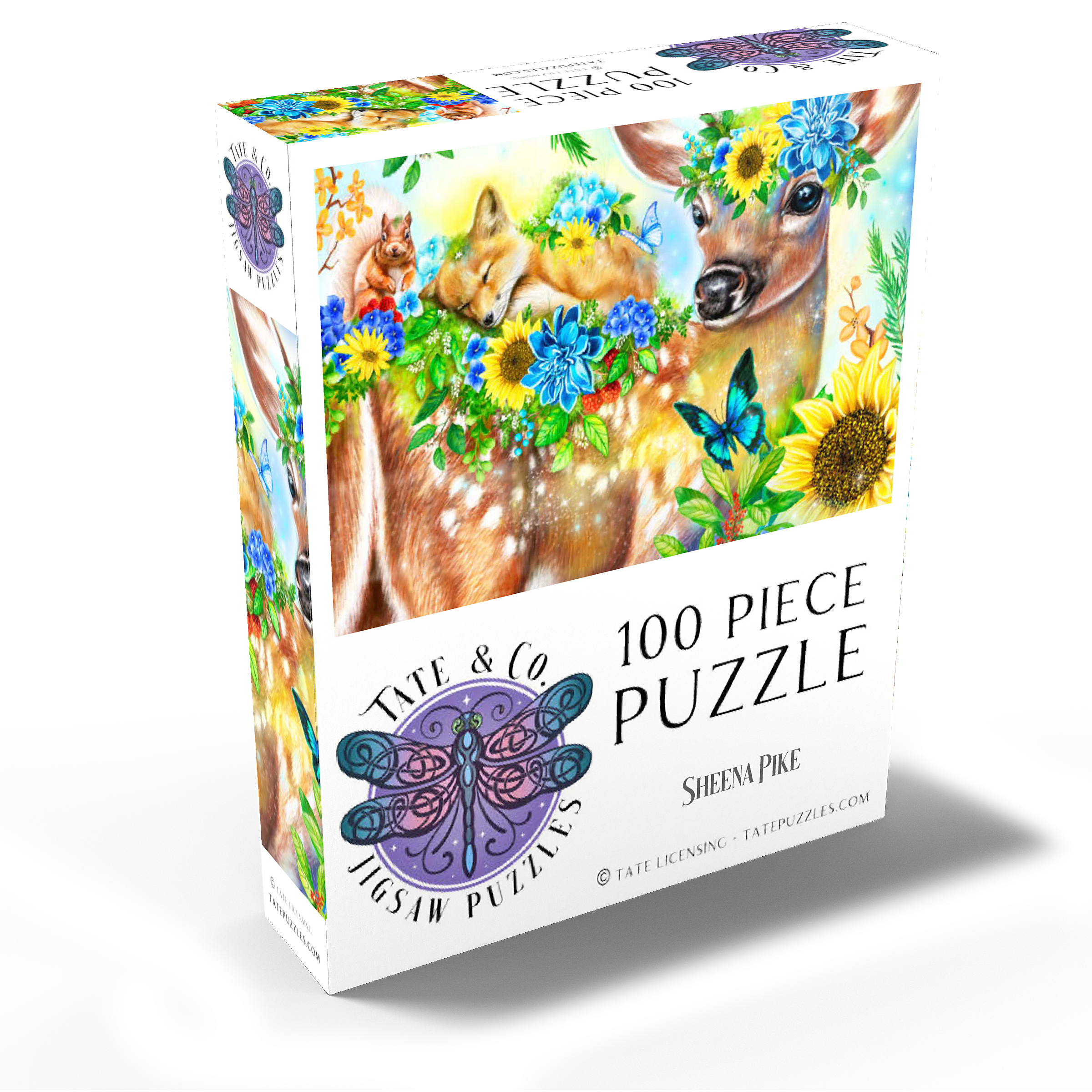 Dive into a cheerful woodland adventure with Sheena Pike's captivating artwork of a sweet fawn and its sleepy baby fox and happy squirrel friends. This vibrant nature scene, filled with colorful flowers and greenery, makes for a perfect cozy puzzle that spreads happiness.