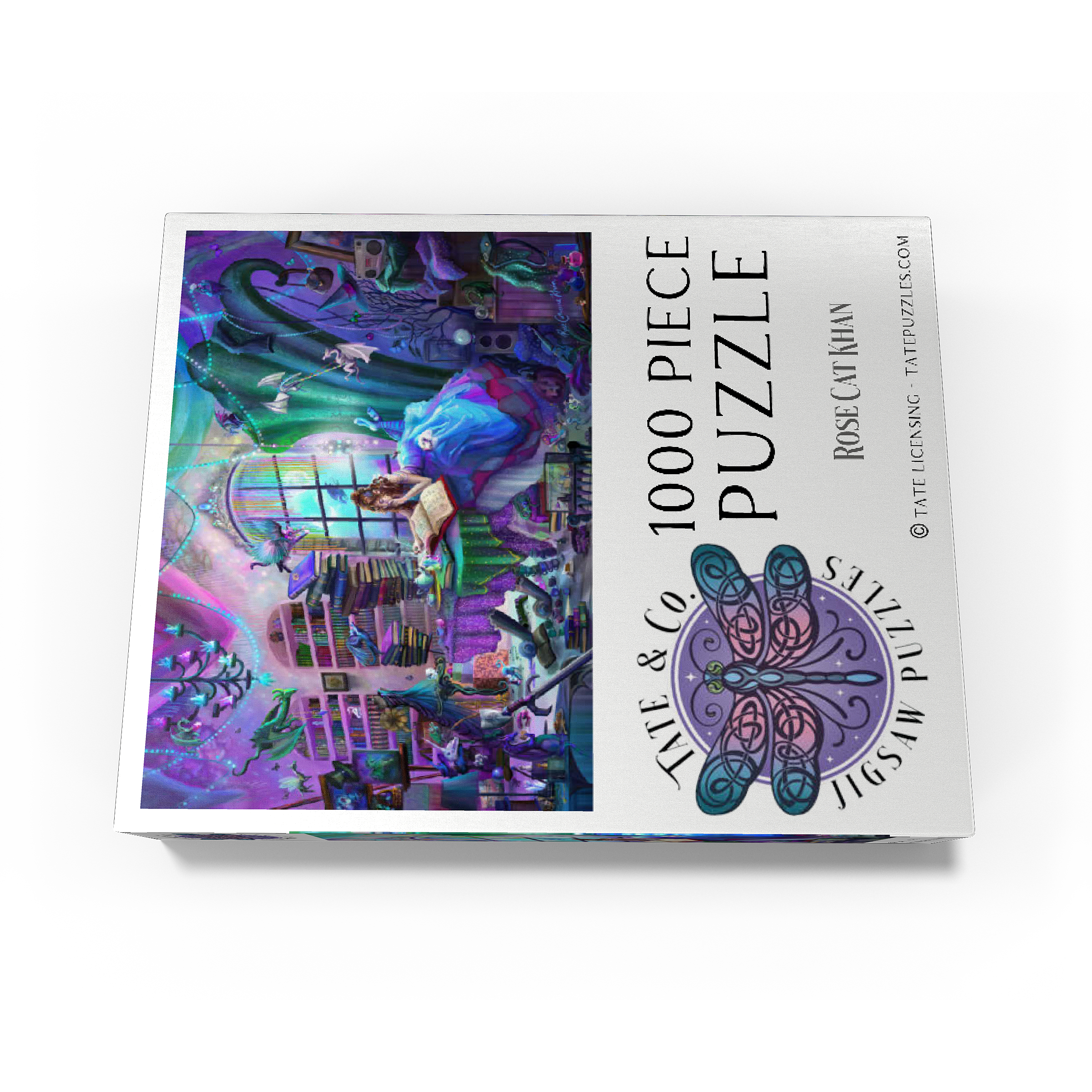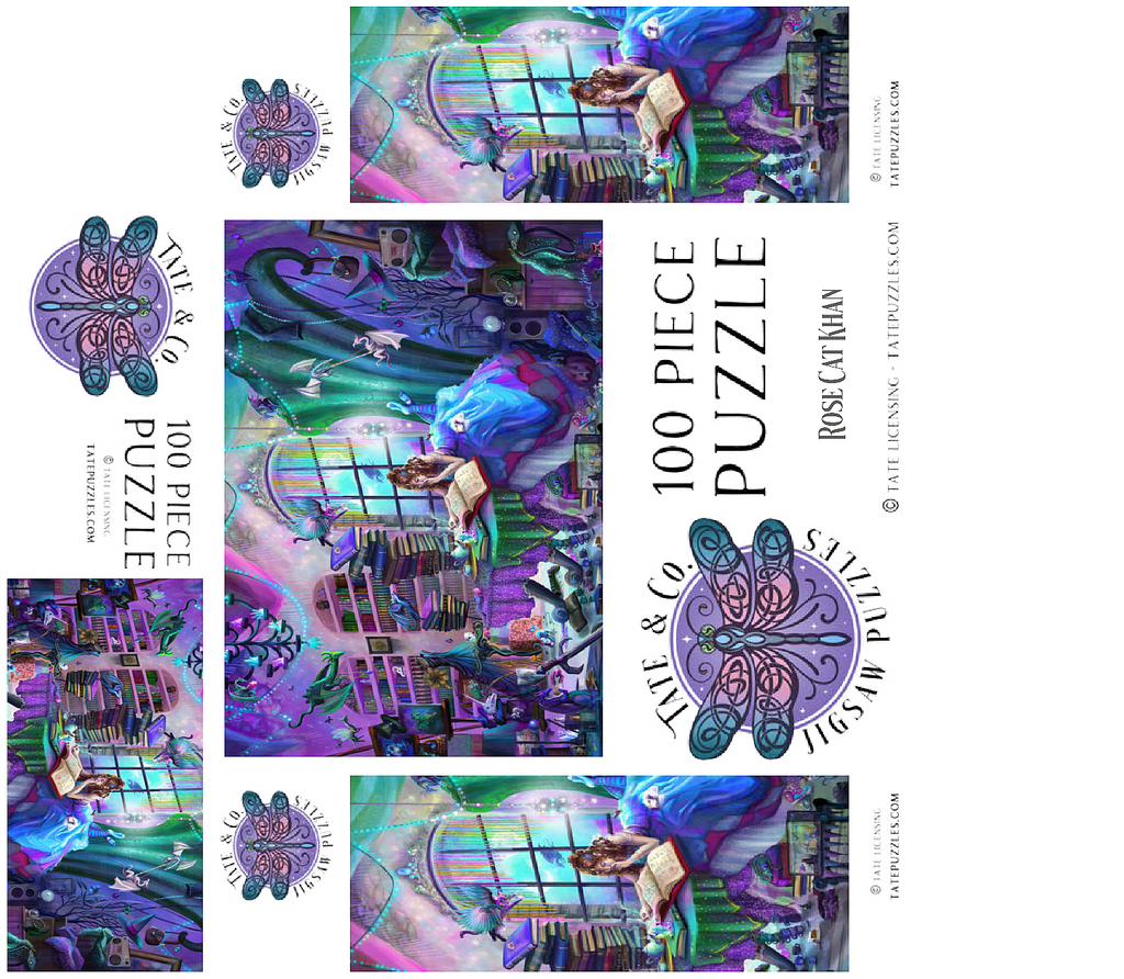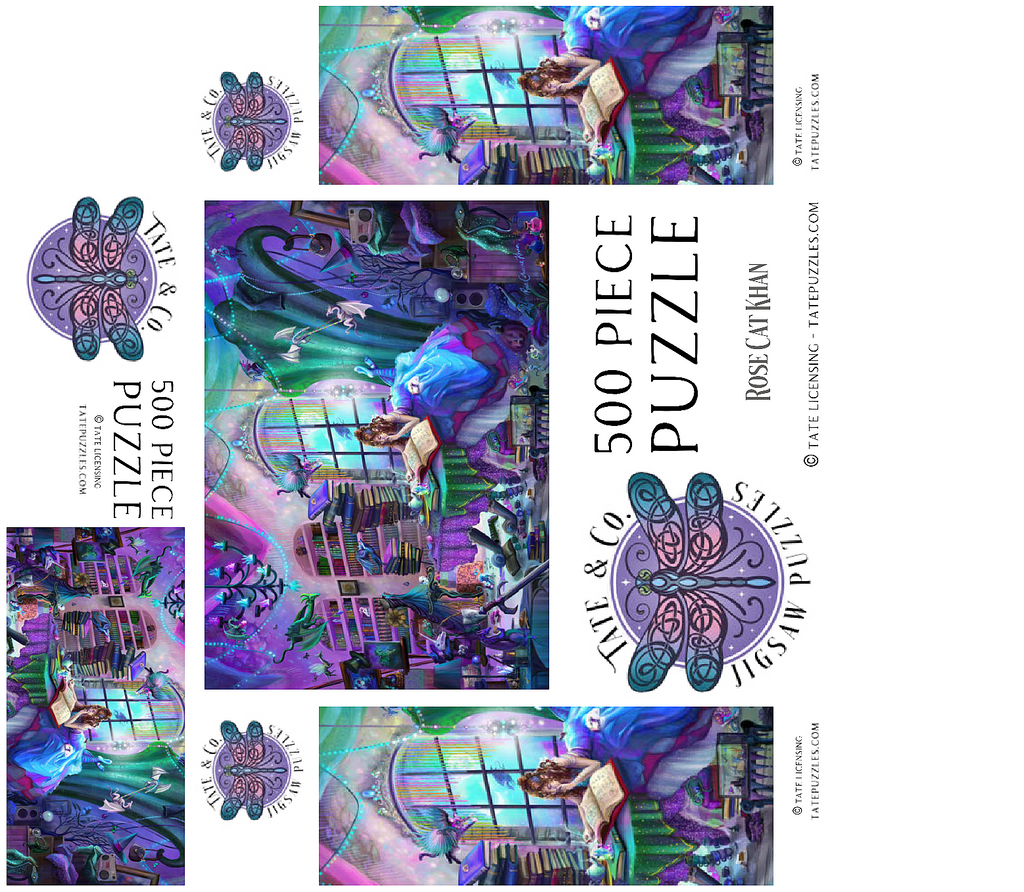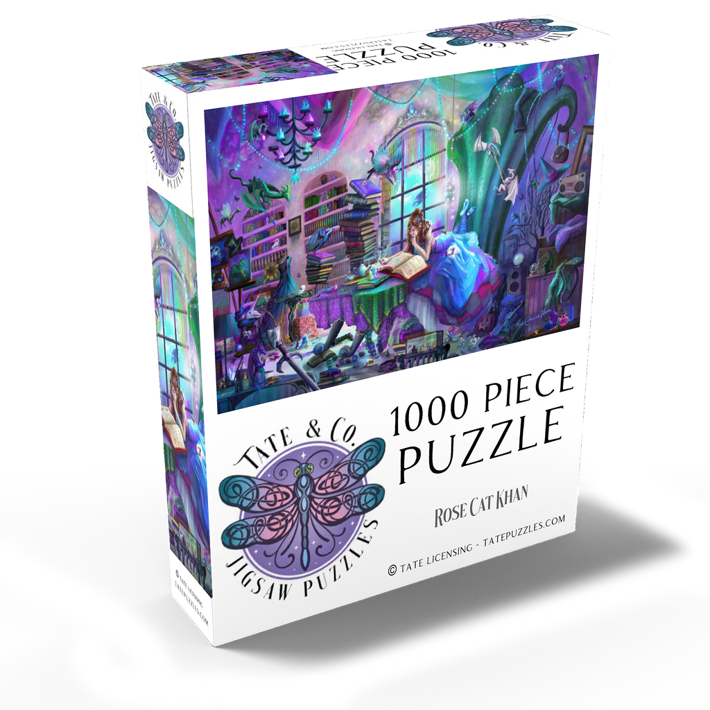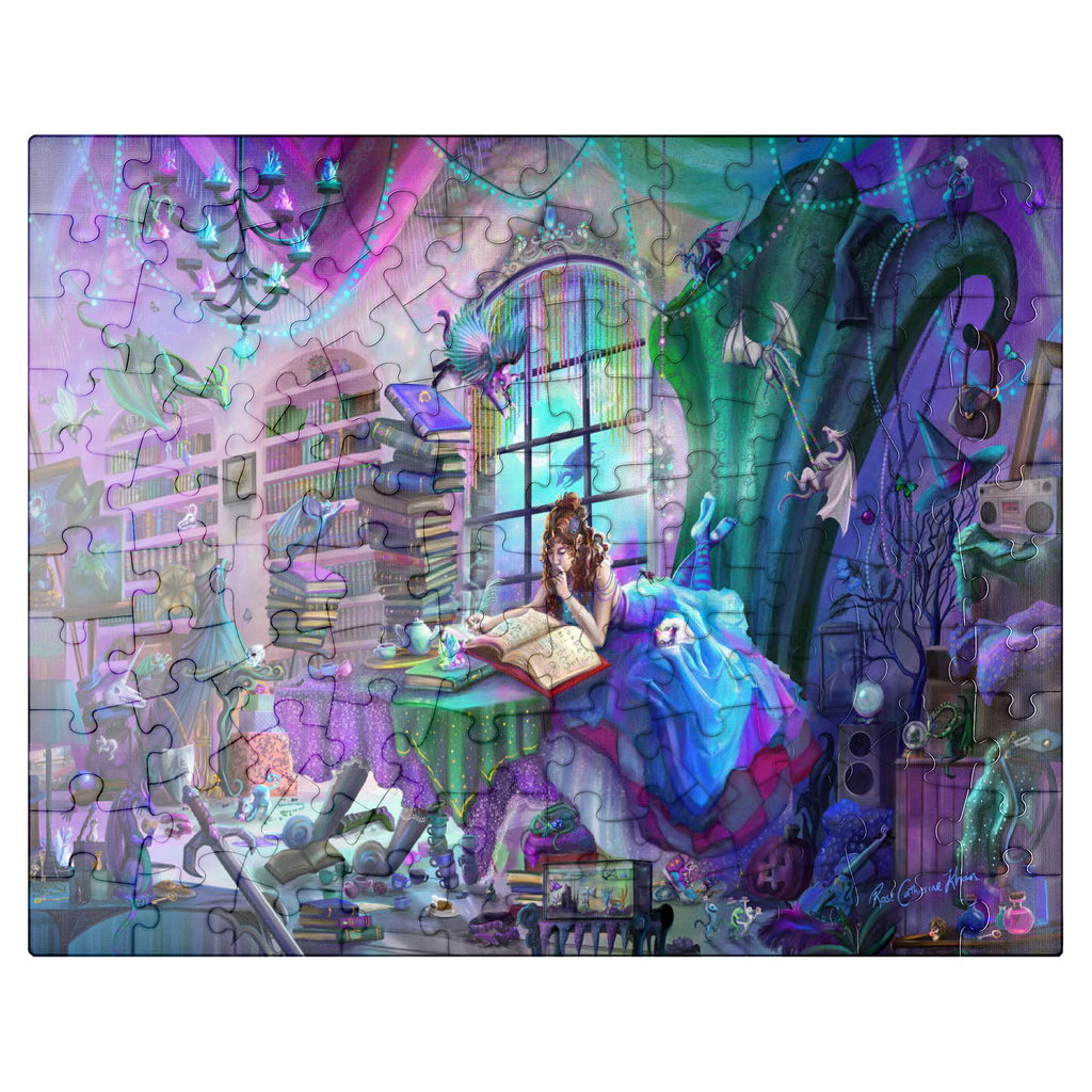 Step into the enchanted world of Centernia in this best-selling fantasy puzzlescape by Rose Cat Khan. Surrounded by glowing books, arcane scrolls, and magical creatures, Artemisa Wynter studies the mysterious Gate to Autumn Valley-her last hope of reaching her mother's world. Among the mage books and teacups lie relics from the 1980s: a cassette player, a pair of jeans, and other forgotten Earthly treasures. Crystals glimmer, winged feltraini cats fly about, and chaos blooms in every corner of this whimsical, lore-filled room. -Magic Study- bridges worlds, blending cozy academia with fantasy. This is the original dark purple version.