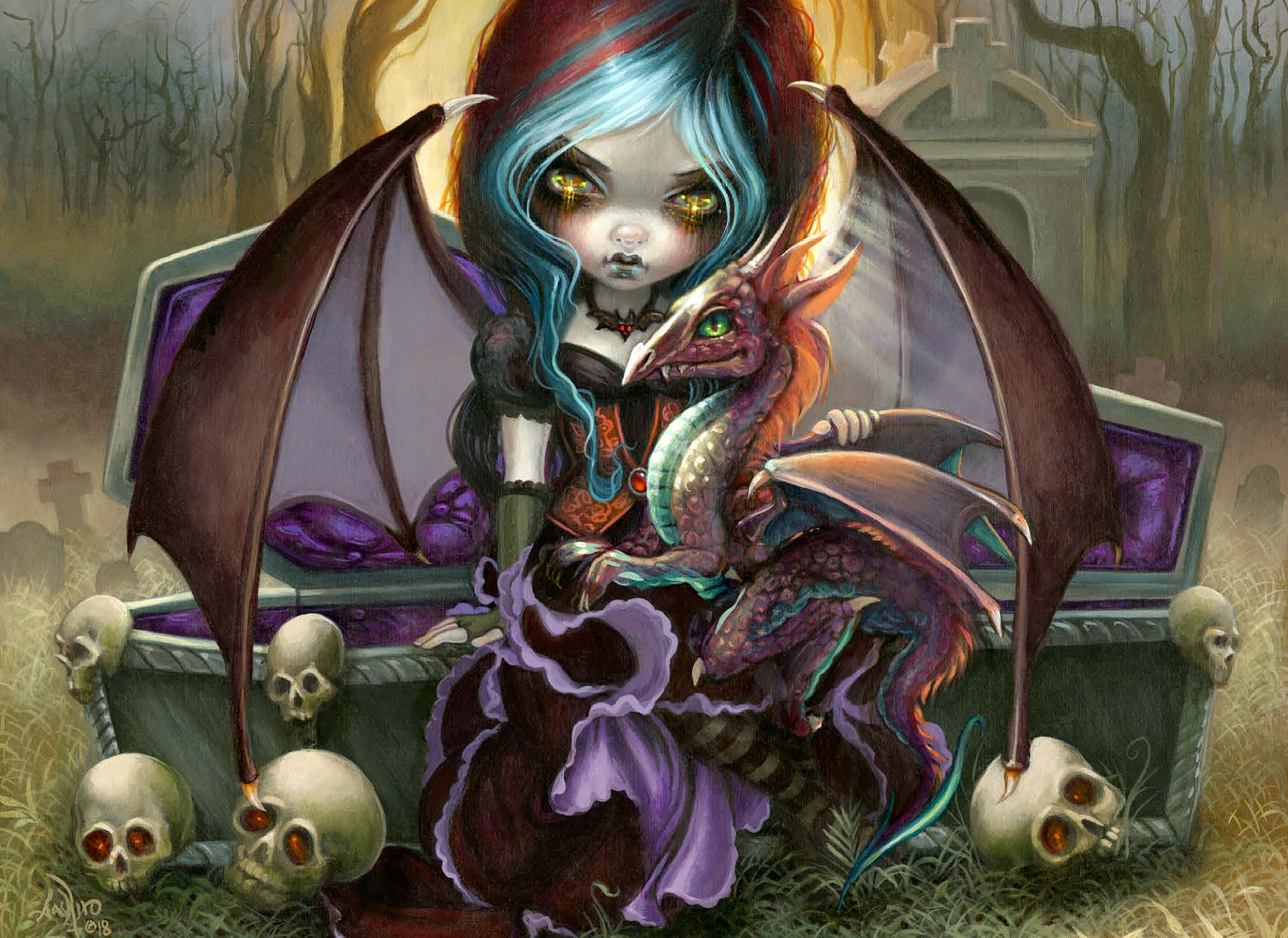 Unleash the adorable darkness of the -Vampire Dragonling- puzzle! Piece together a charming vampire and her sinisterly cute dragon companion as they awaken in a hazy sunset cemetery. Unravel this unique blend of gothic and adorable fantasy. A delightfully spooky puzzle adventure awaits!