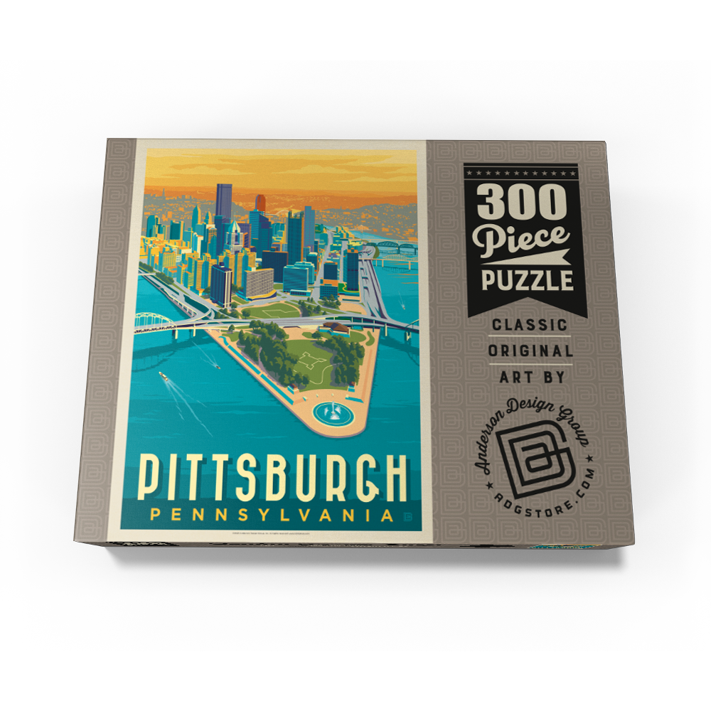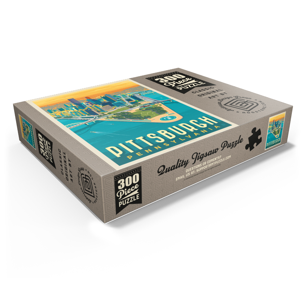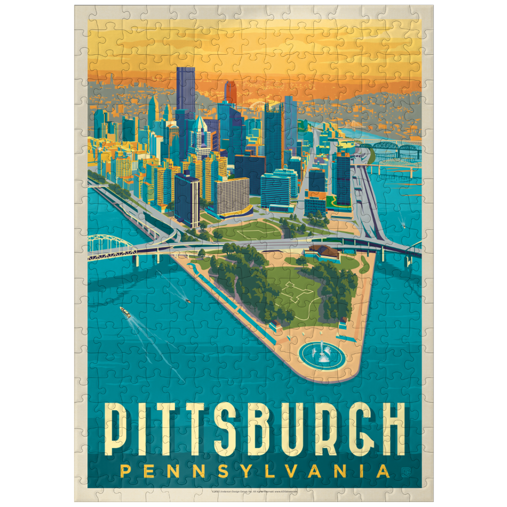 Pittsburgh is a city that proudly displays both its industrial roots and its icons of history, such as the Carnegie Museum of Natural History, the Carnegie Museum of Art, the Phipps Conservatory, and the Botanical Gardens. Once an industrial power during the Gilded Age, Pittsburgh today has evolved into a technologically advanced and prosperous region. The city is also known for the Andy Warhol Museum, Heinz Field football stadium, and PNC Park baseball stadium. Its location at the mouth of three rivers is also unique, offering the city breathtaking waterfronts and vistas. Pittsburgh's rich history and modern urban sprawl inspired artists to create a detailed bird's-eye view of the city at dusk, and this stunning artwork is a fitting tribute to the city's beauty and vitality.