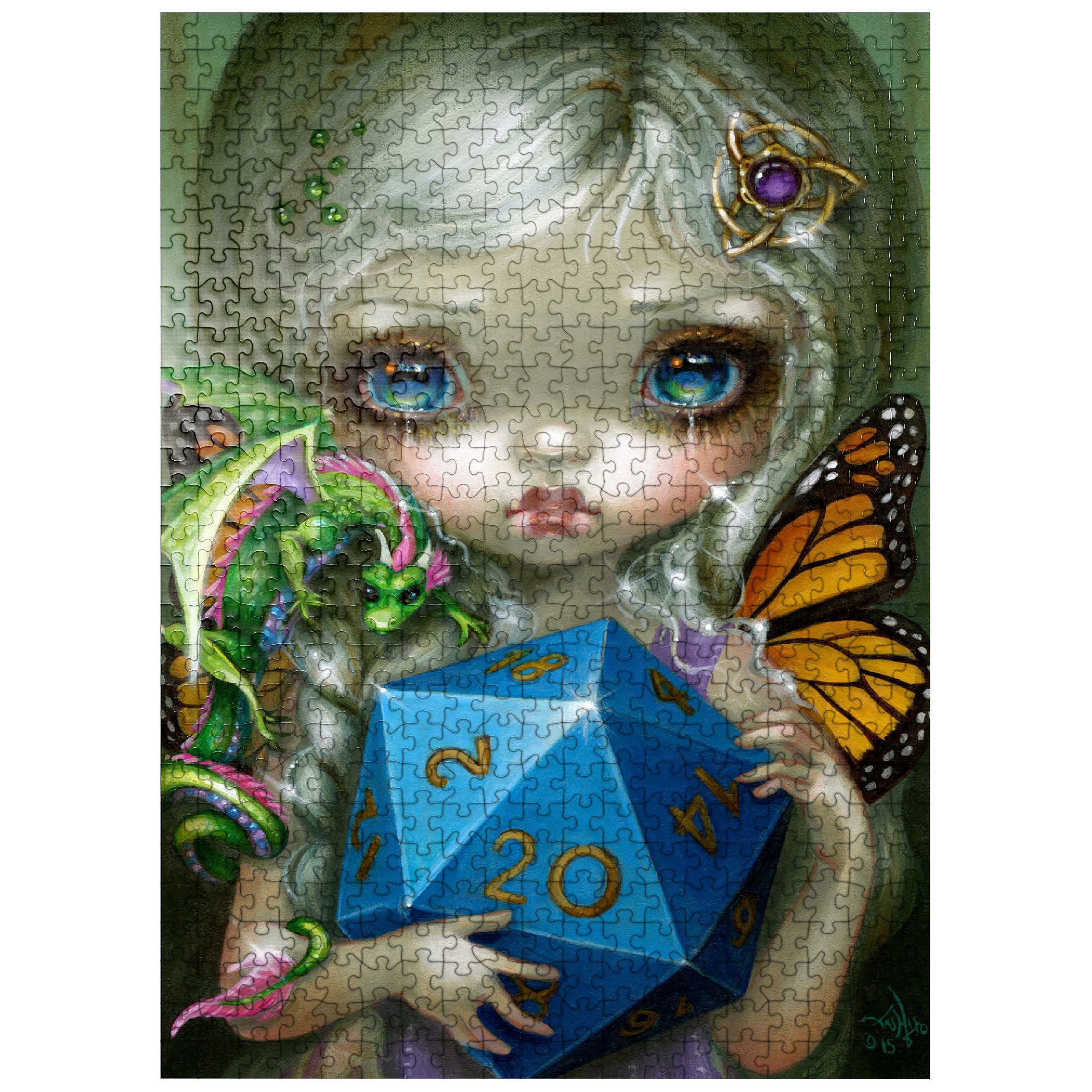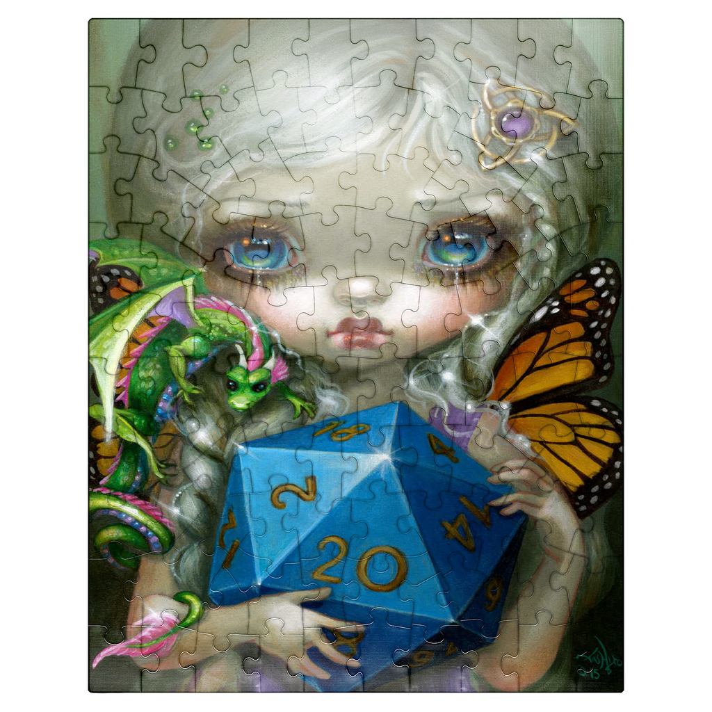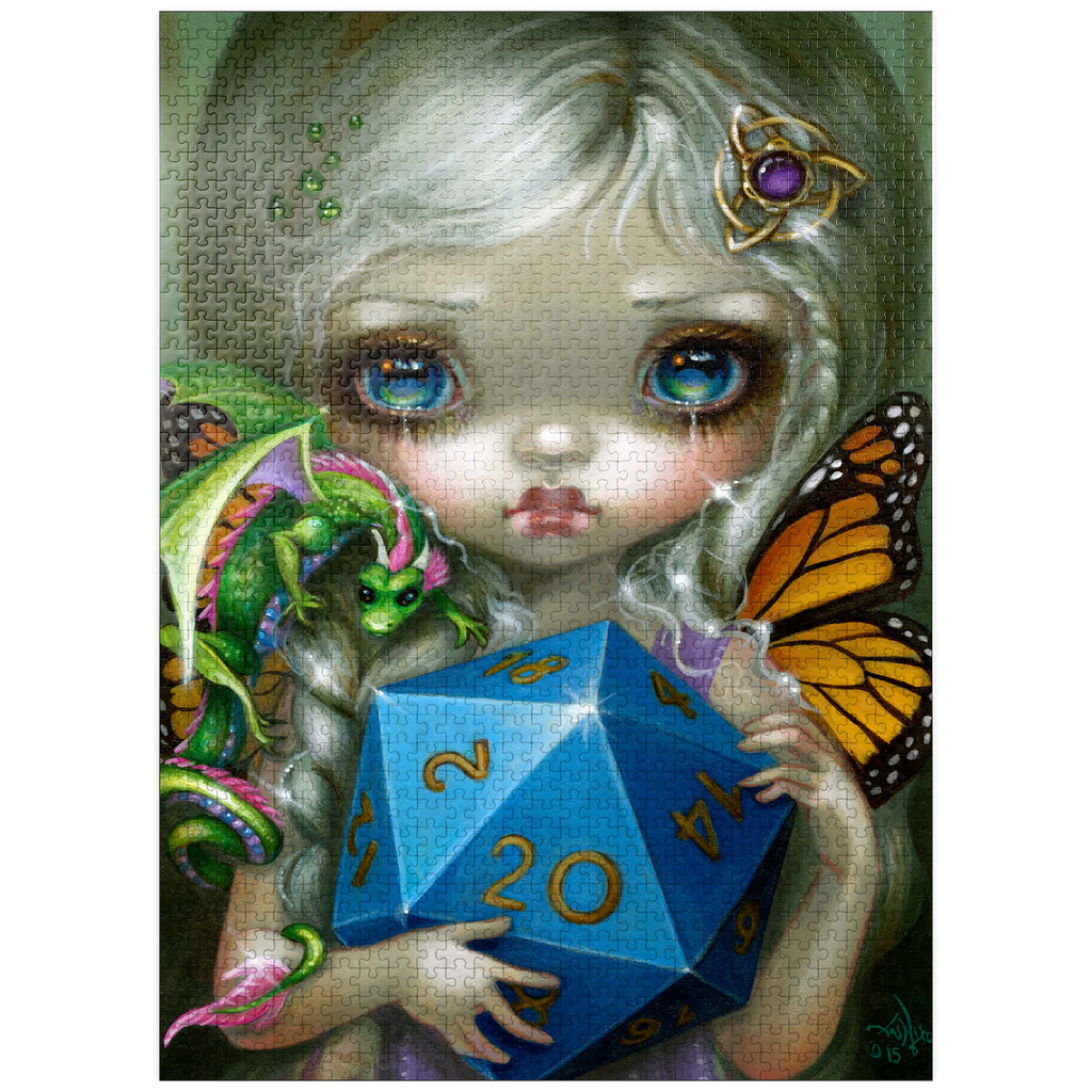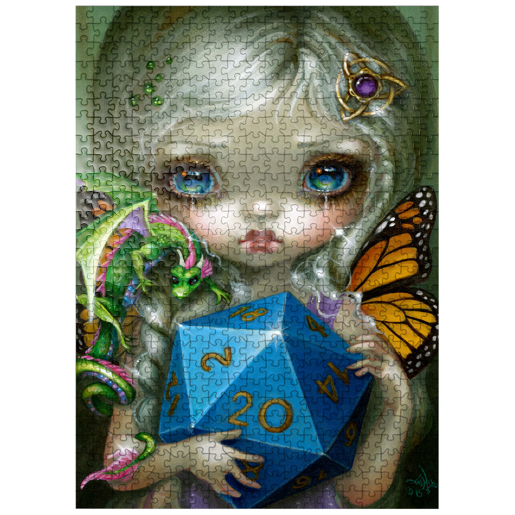 Roll the dice with the 20 Sided Dice Fairy puzzle! Heavily inspired by the iconic fantasy role-playing game Dungeons & Dragons (D&D), this artwork features a charming fairy clutching a large d20 die. A must-have, high-quality jigsaw for D&D fans, gamers, and fantasy art collectors looking for a unique tribute to the classic tabletop game. Level up your puzzle collection!