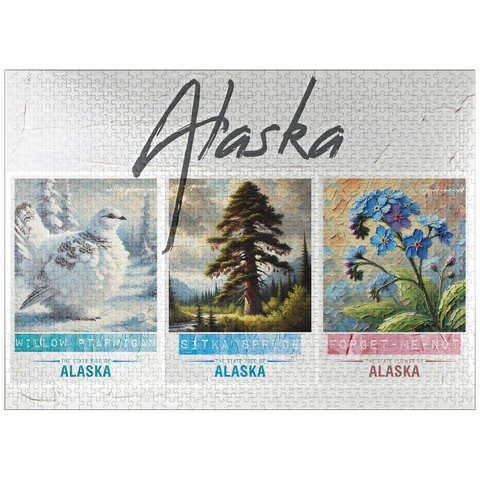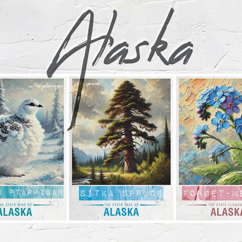 Alaska: Bird, Tree, Flower- State Symbols Collage Series