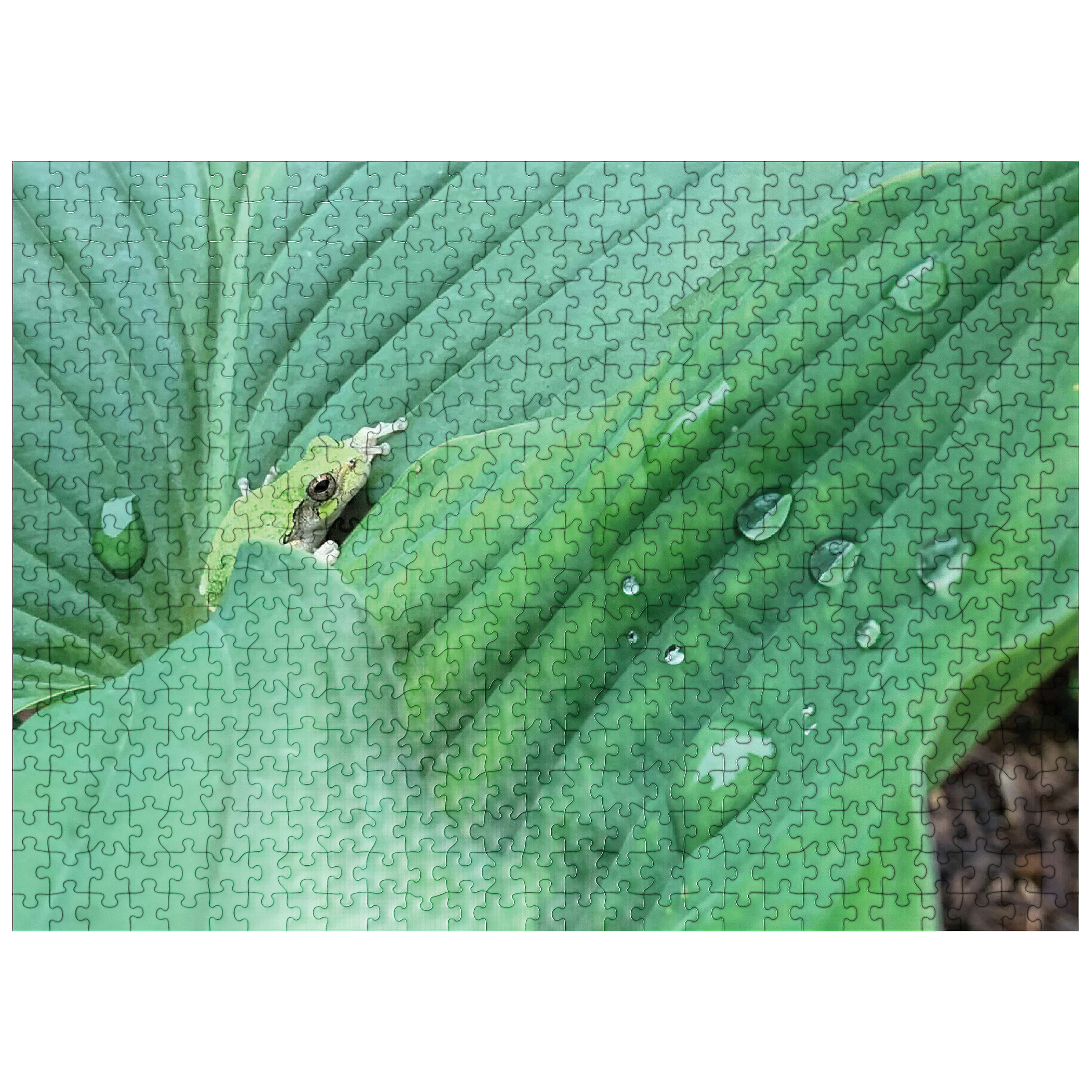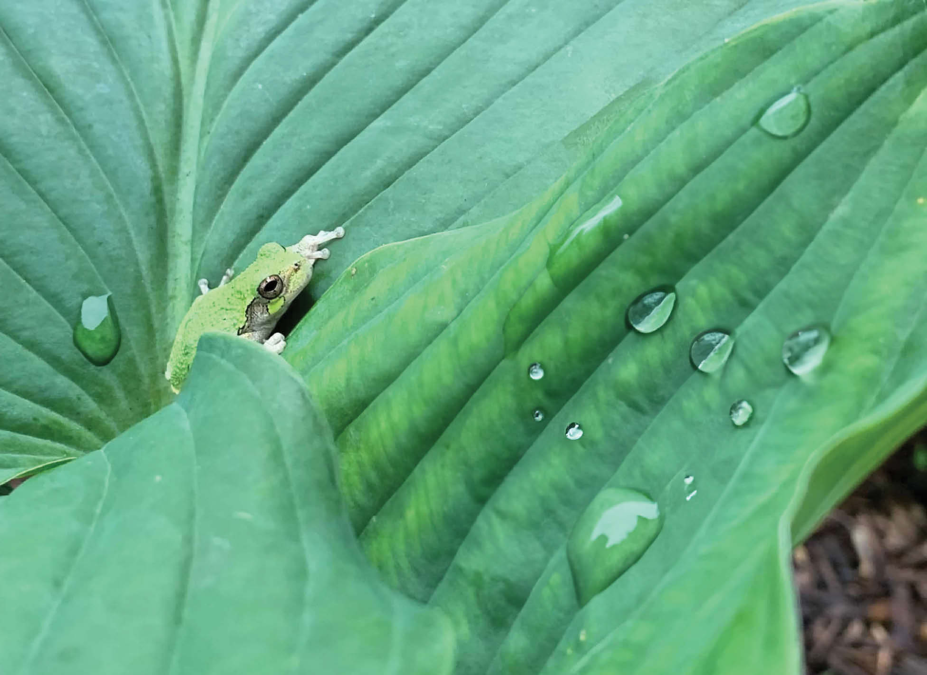 The perfect photograph will add joy and color to your world, and liven up any wall. Enjoy this cute little frog resting in the rain on a Hosta leaf and add a touch of nature to your home.