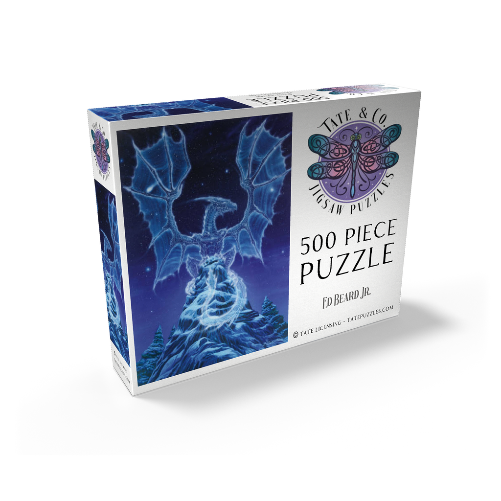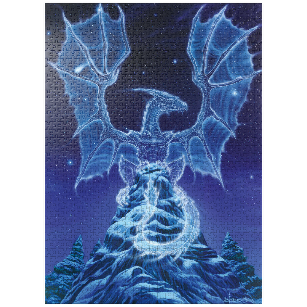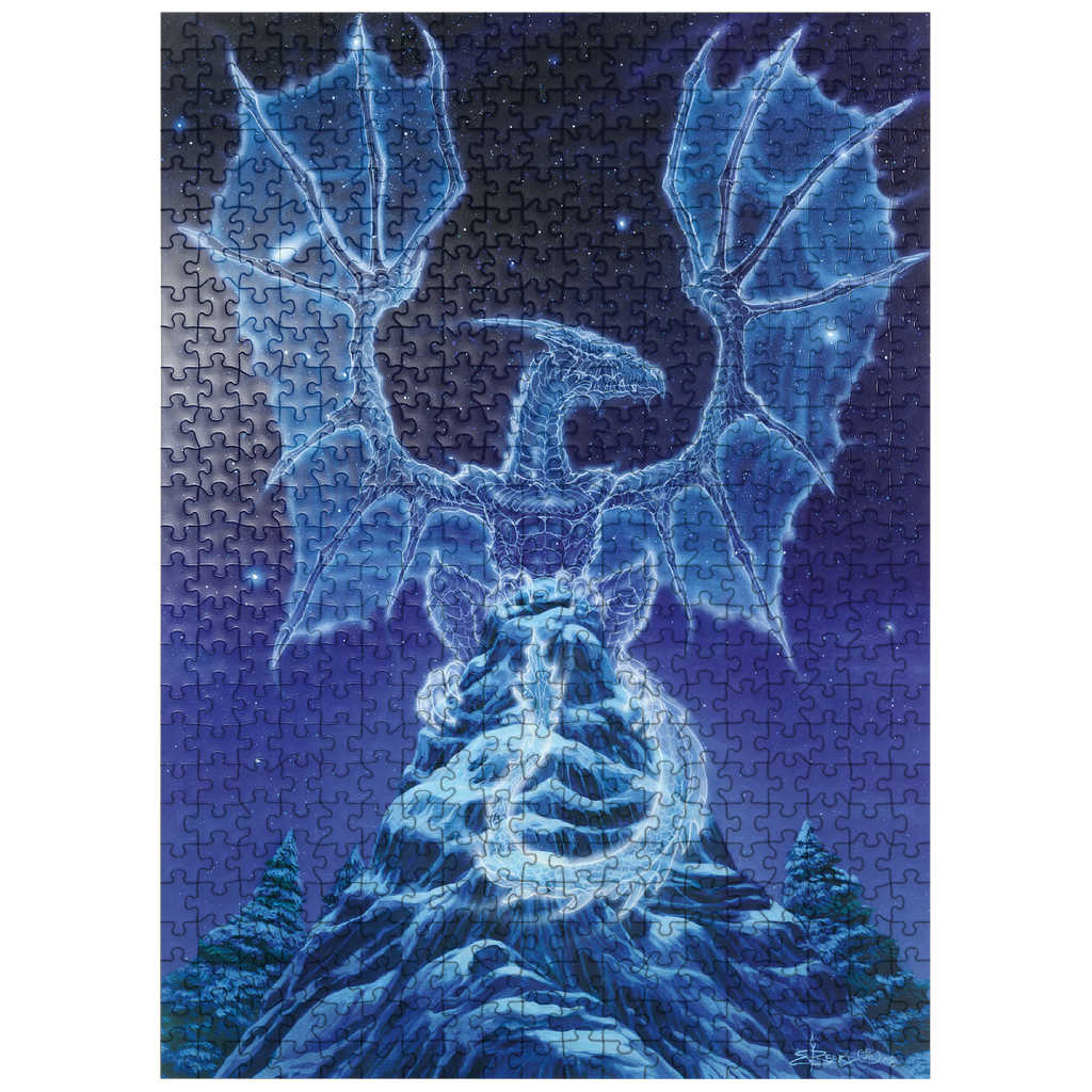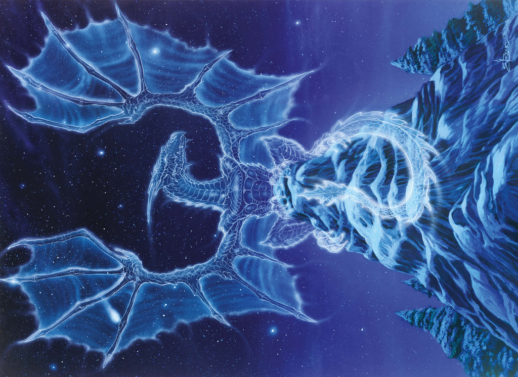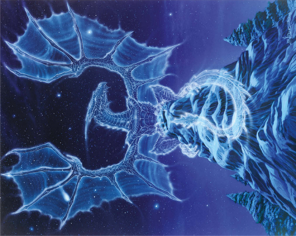 The Dragon Spirit of Winter arises in the brisk air of the Winter Solstice. Ethereal essence swirls together in a ghostly mist of the dragon form and spreads its wings across the midnight sky. The stars shine bright and a comet sails across the sky while this silent sentinel watches.