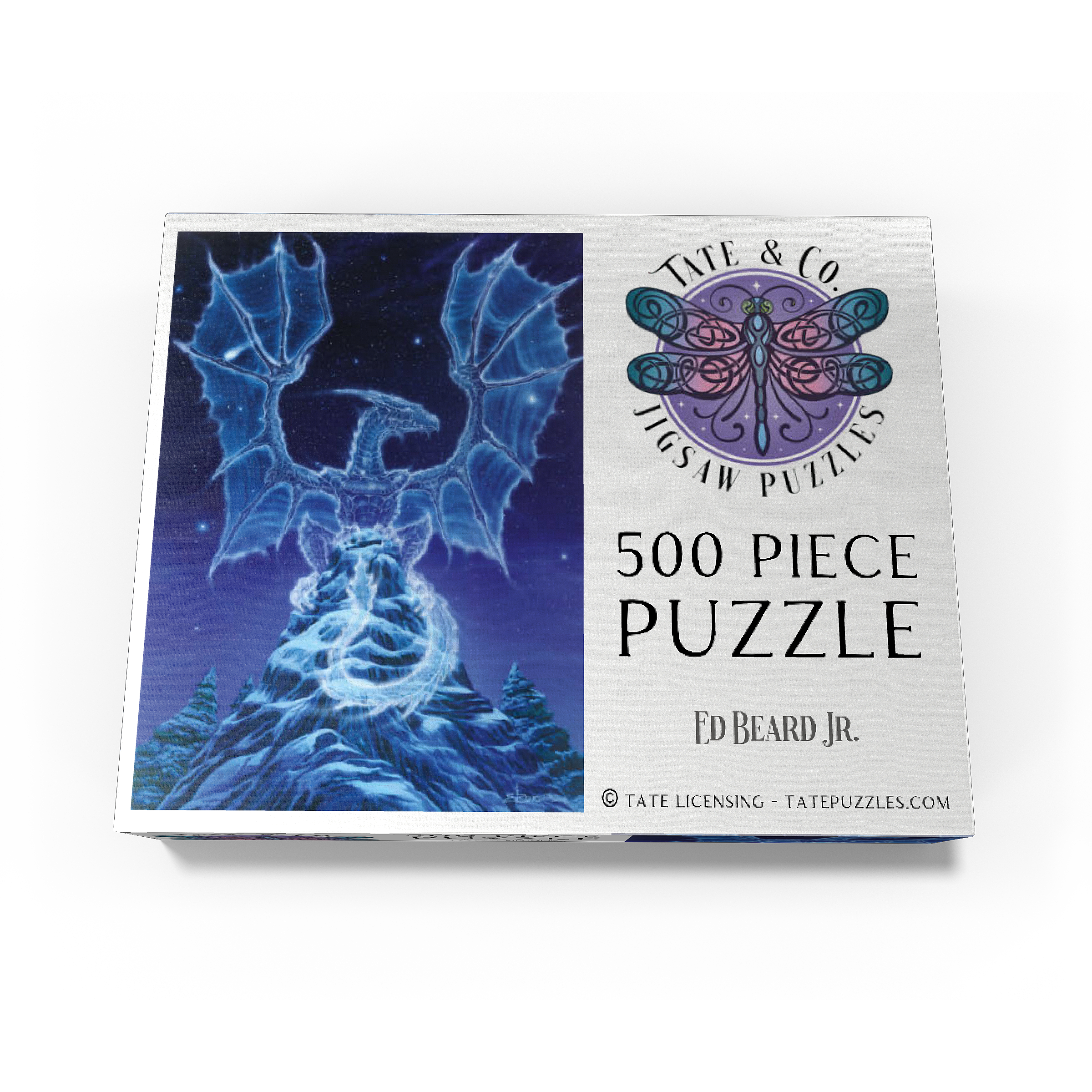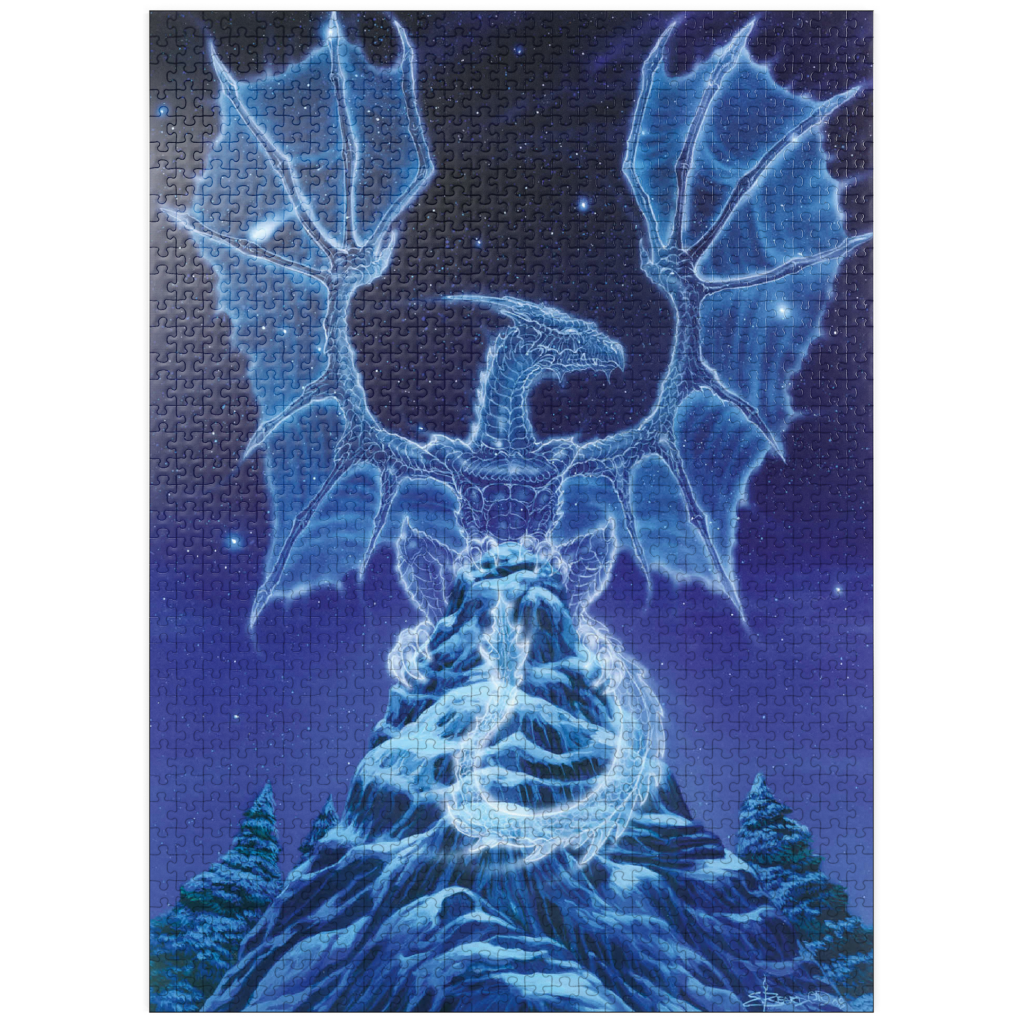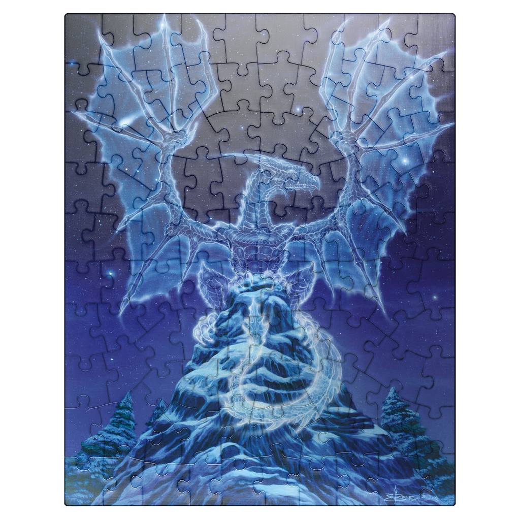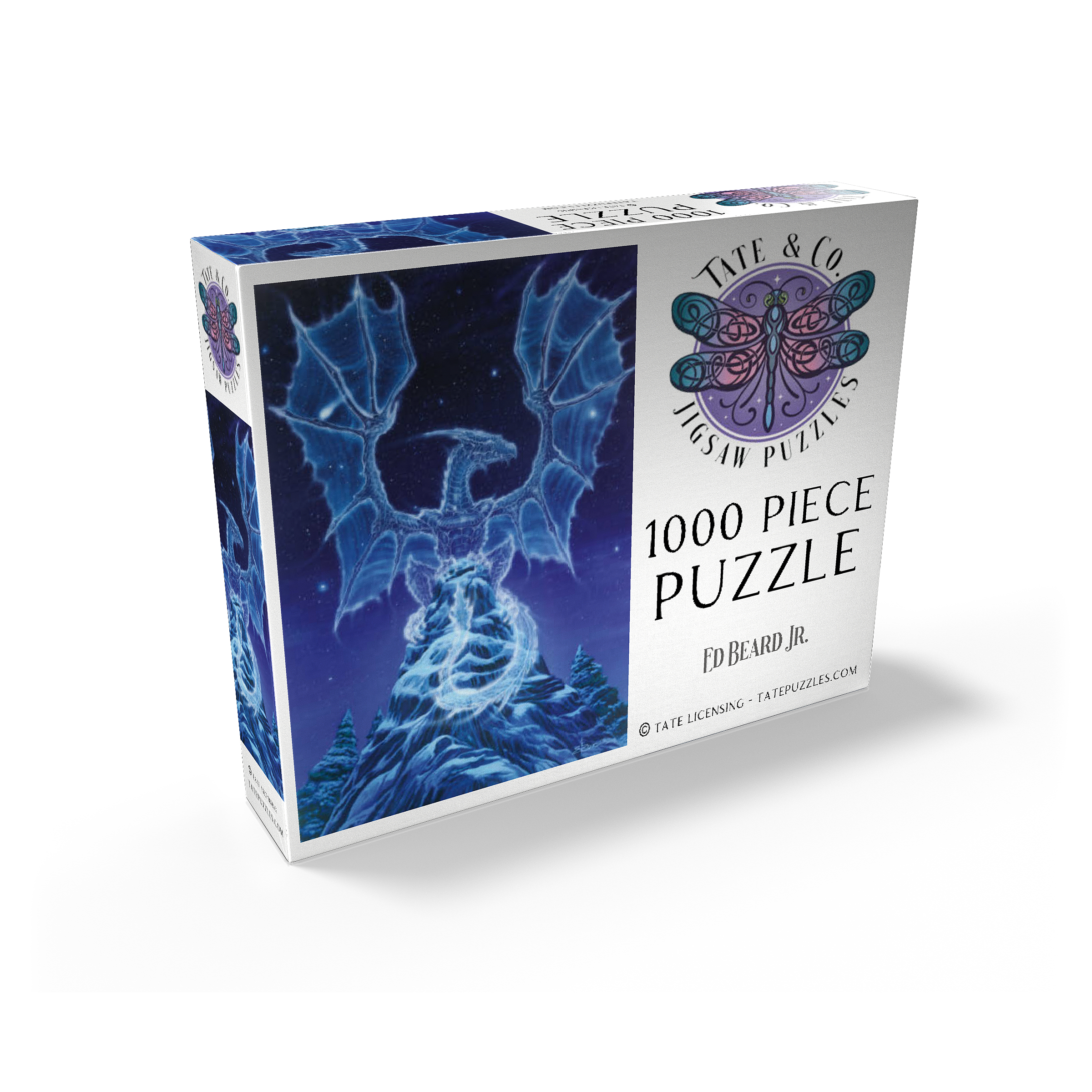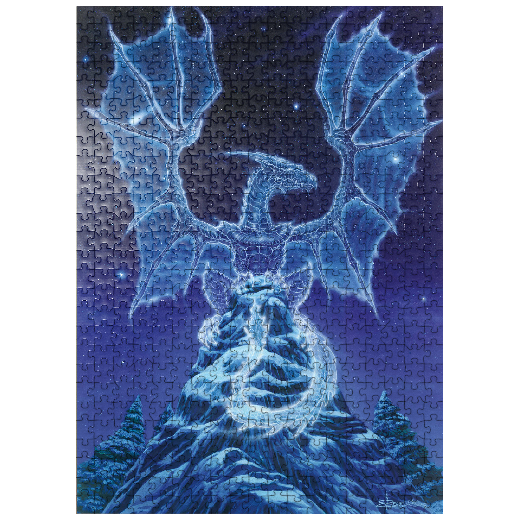The Dragon Spirit of Winter arises in the brisk air of the Winter Solstice. Ethereal essence swirls together in a ghostly mist of the dragon form and spreads its wings across the midnight sky. The stars shine bright and a comet sails across the sky while this silent sentinel watches.