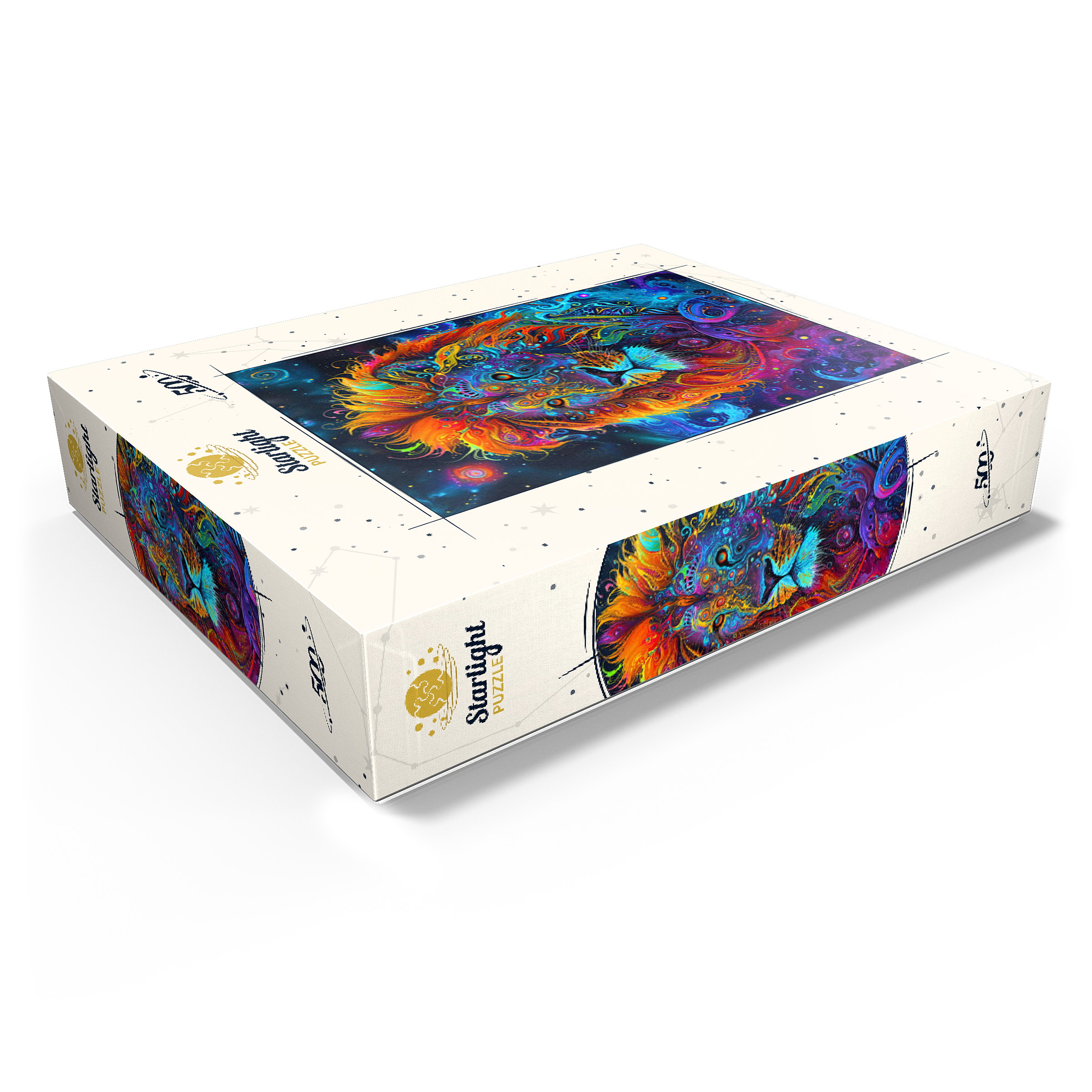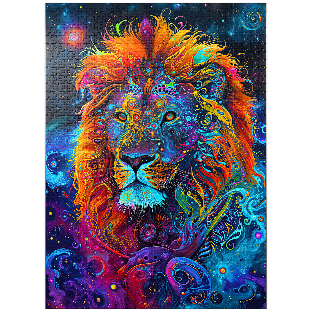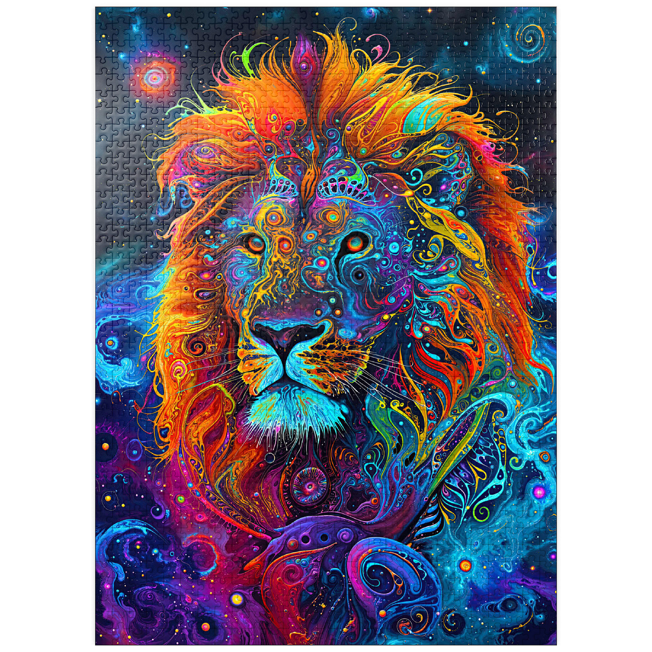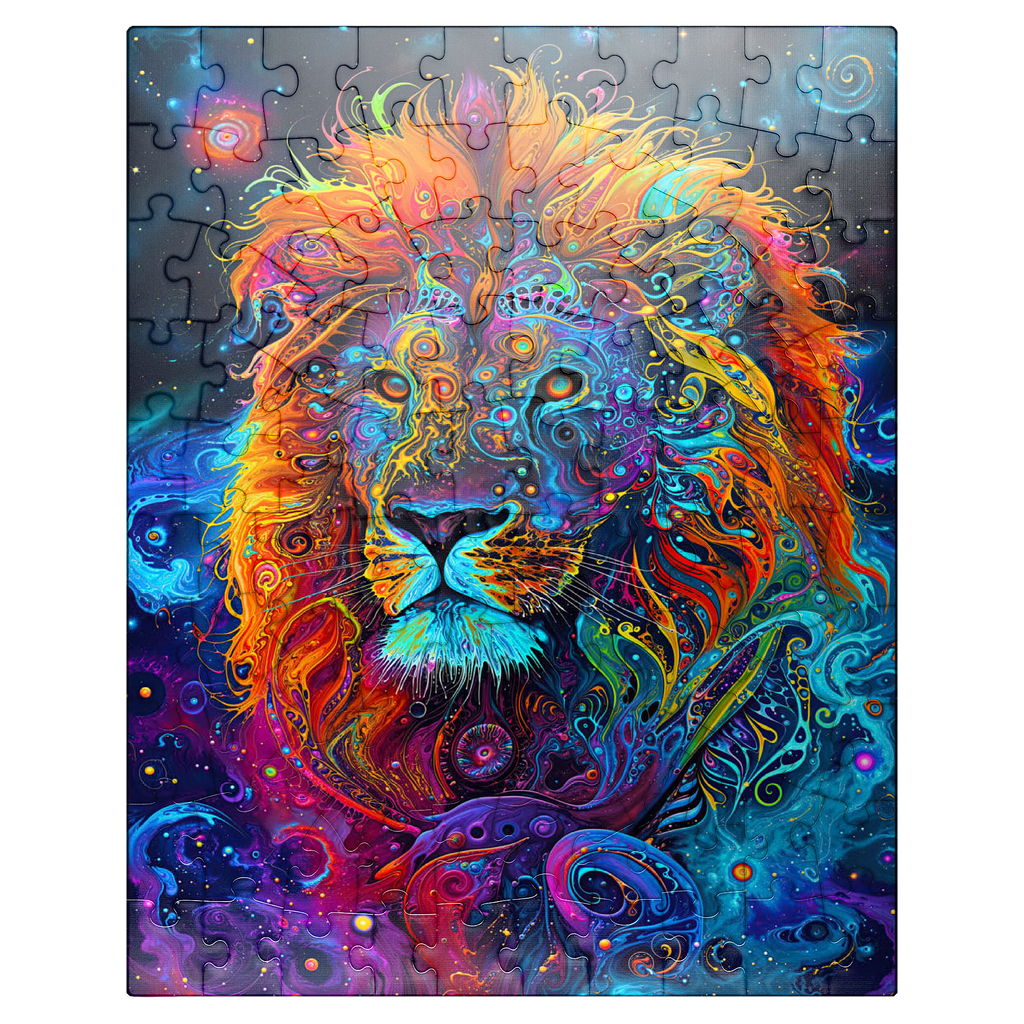 This breathtaking artwork features a majestic lion rendered in an explosion of cosmic colors and swirling psychedelic patterns. The lion’s fiery mane is a kaleidoscope of vibrant hues, blending seamlessly into a mesmerizing galaxy filled with stars, spirals, and celestial energy. Its intense eyes seem to glow with wisdom and strength, embodying the lion’s regal and powerful essence. The intricate details and dynamic composition create a captivating fusion of natural majesty and cosmic wonder, making this piece a celebration of the universe’s beauty and mystique.