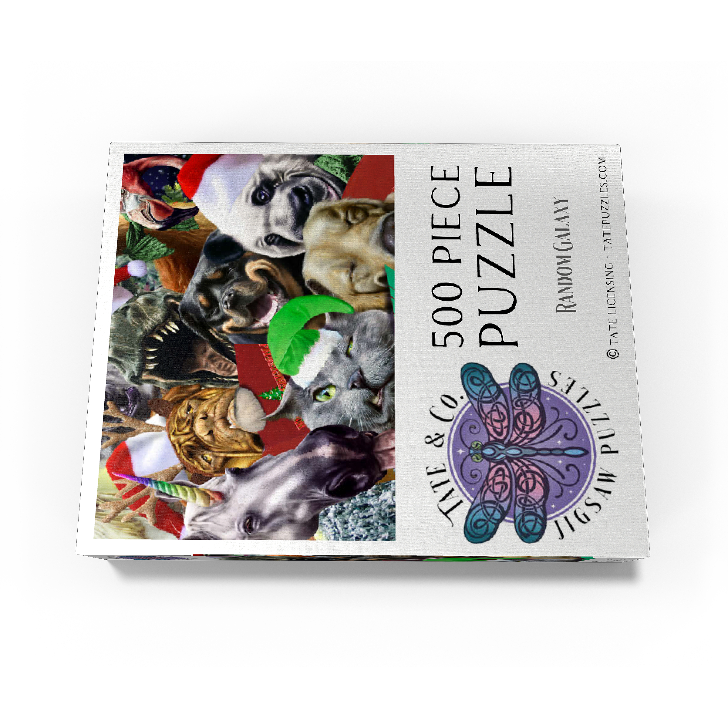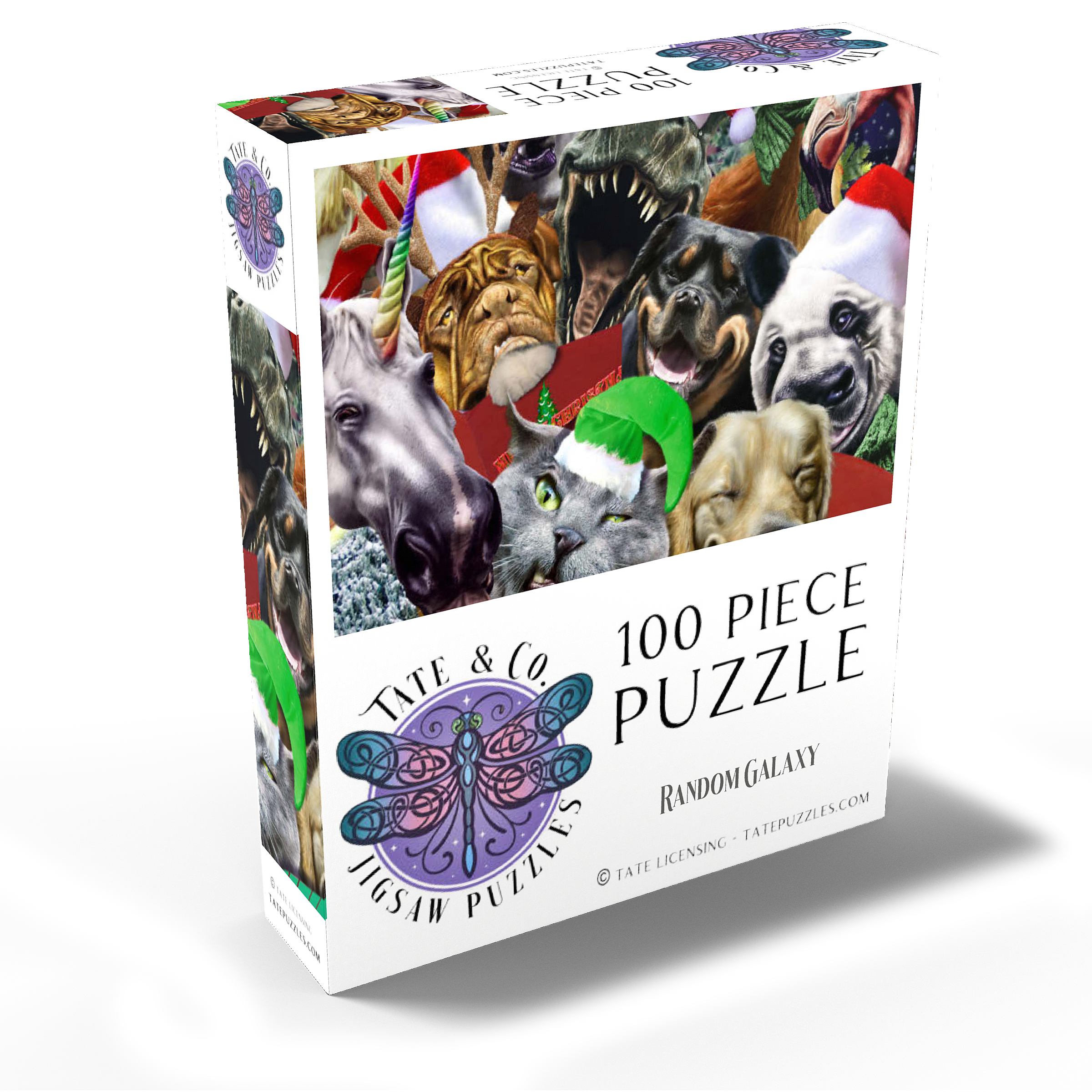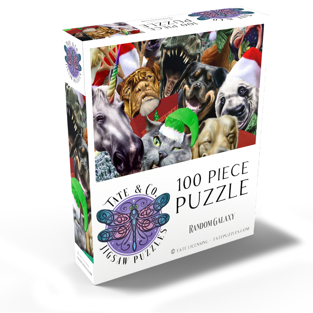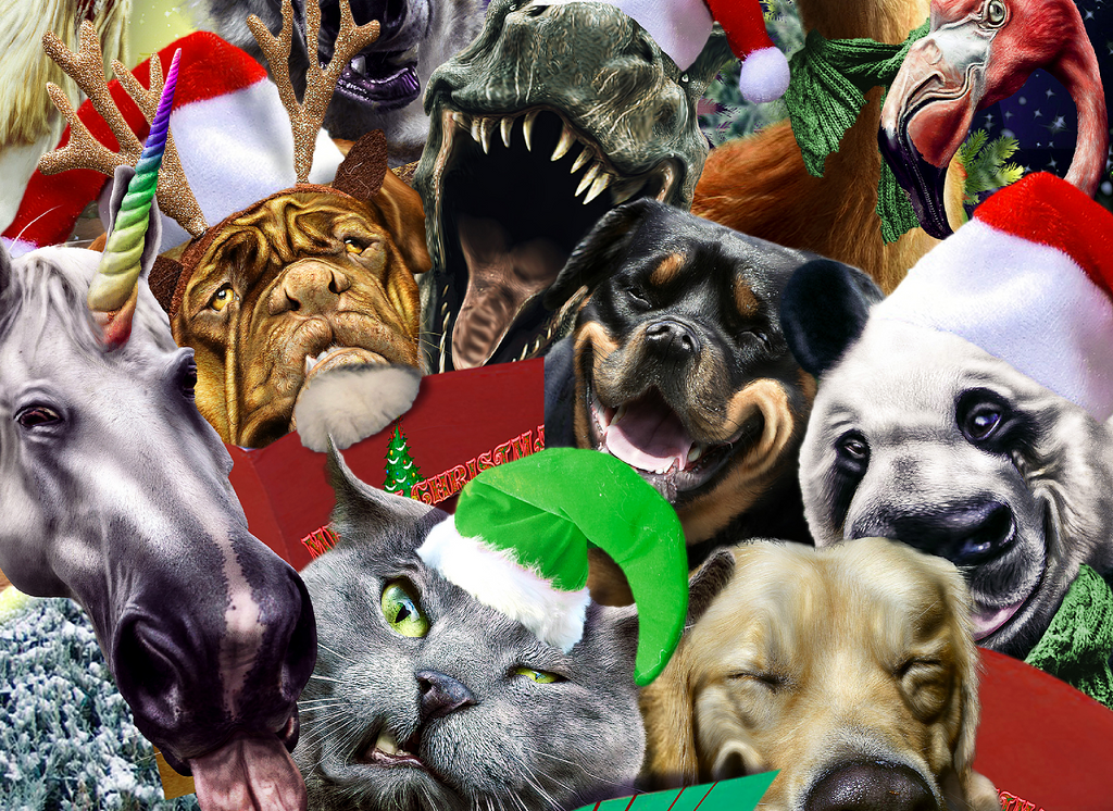 A joyful chorus of festive animals sings under a glittering winter sky. Wrapped in scarves and Santa hats, this merry menagerie embodies Random Galaxy's whimsical holiday cheer-pure, playful, and irresistibly weird.