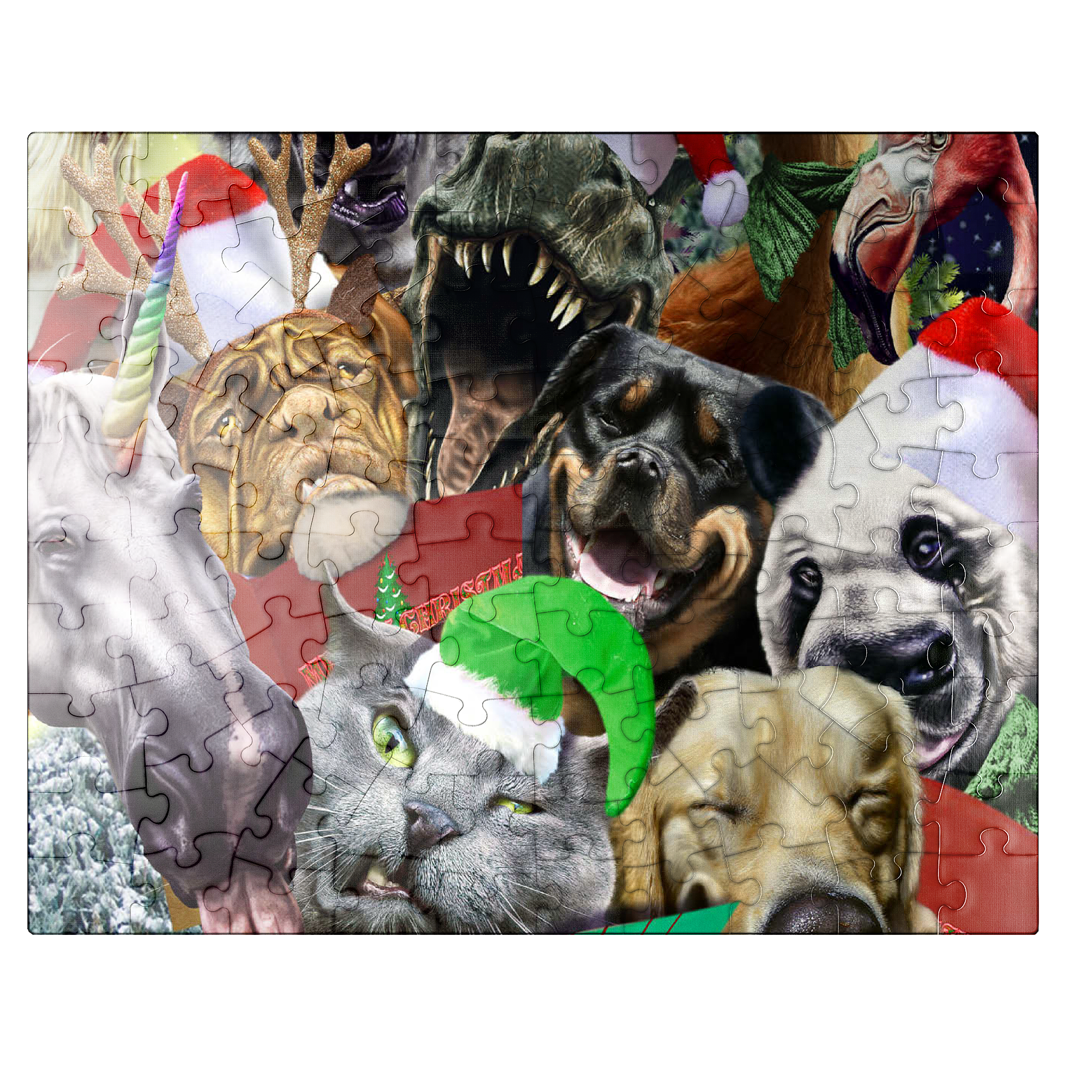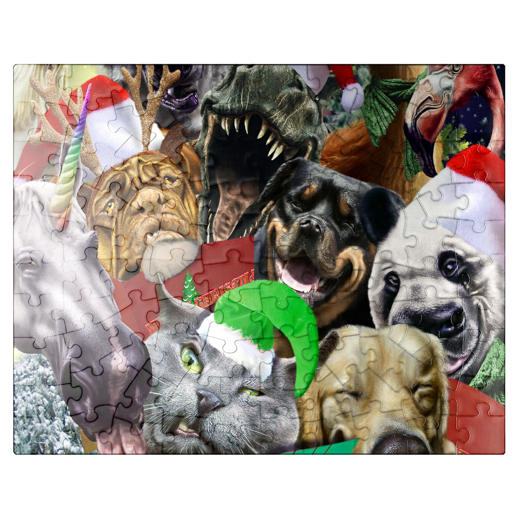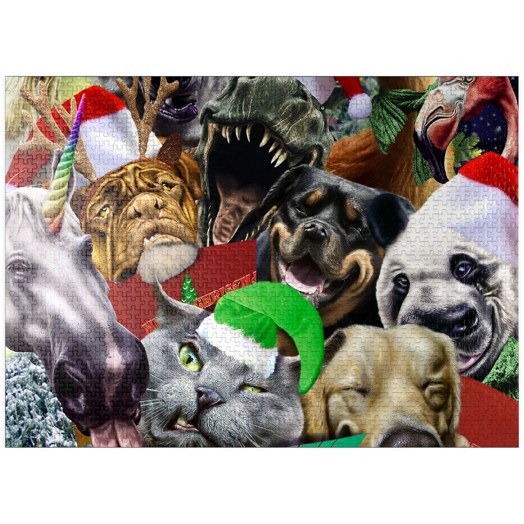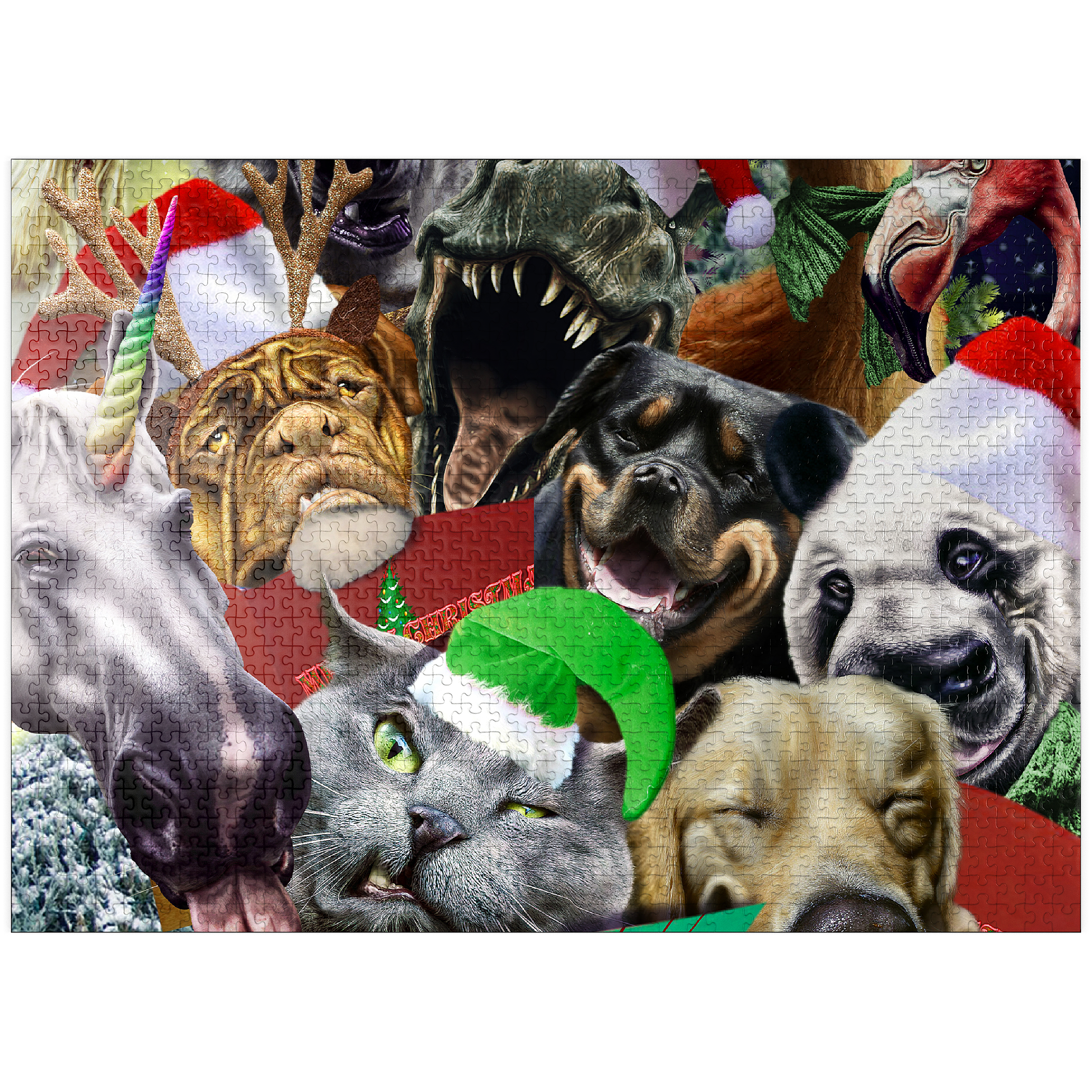A joyful chorus of festive animals sings under a glittering winter sky. Wrapped in scarves and Santa hats, this merry menagerie embodies Random Galaxy's whimsical holiday cheer-pure, playful, and irresistibly weird.