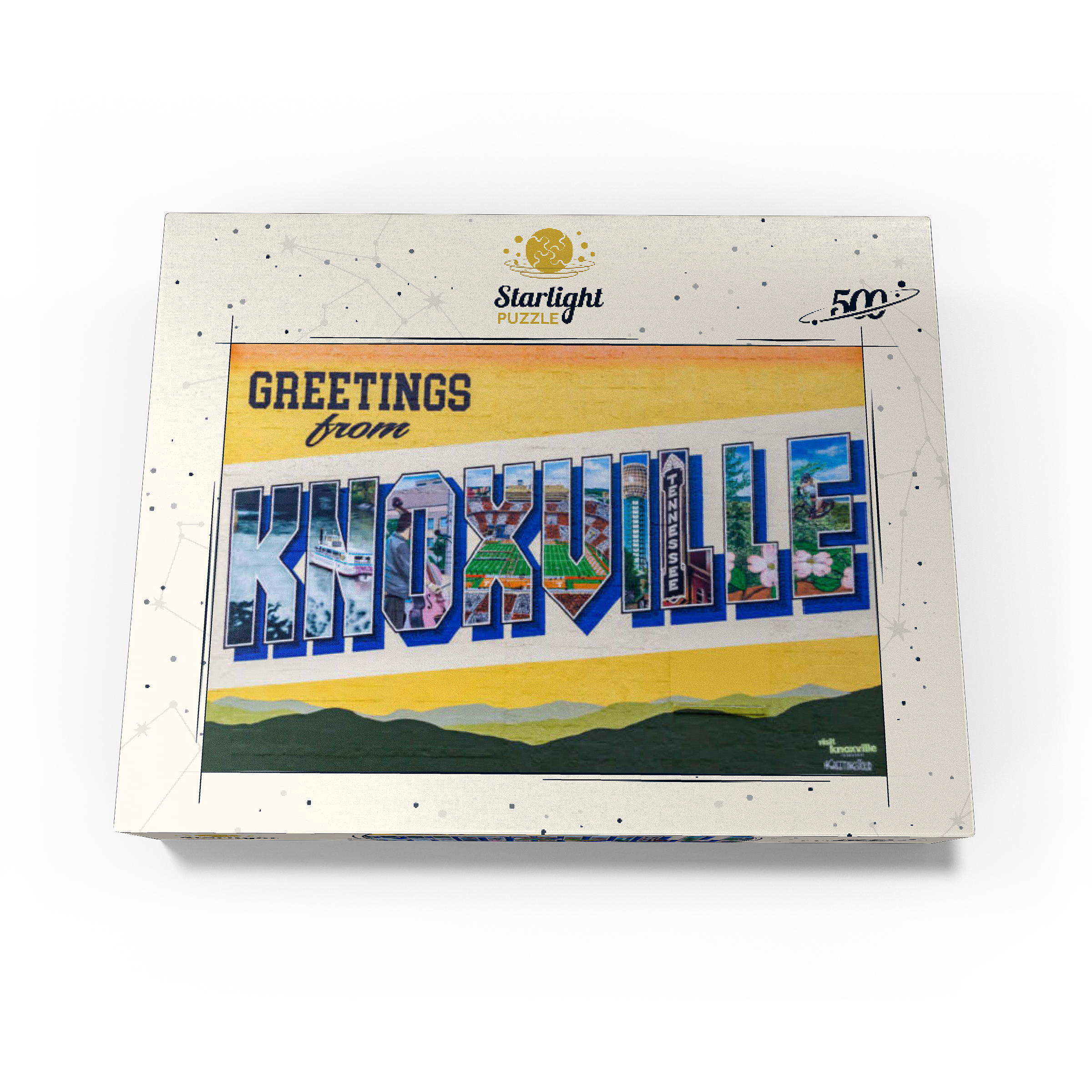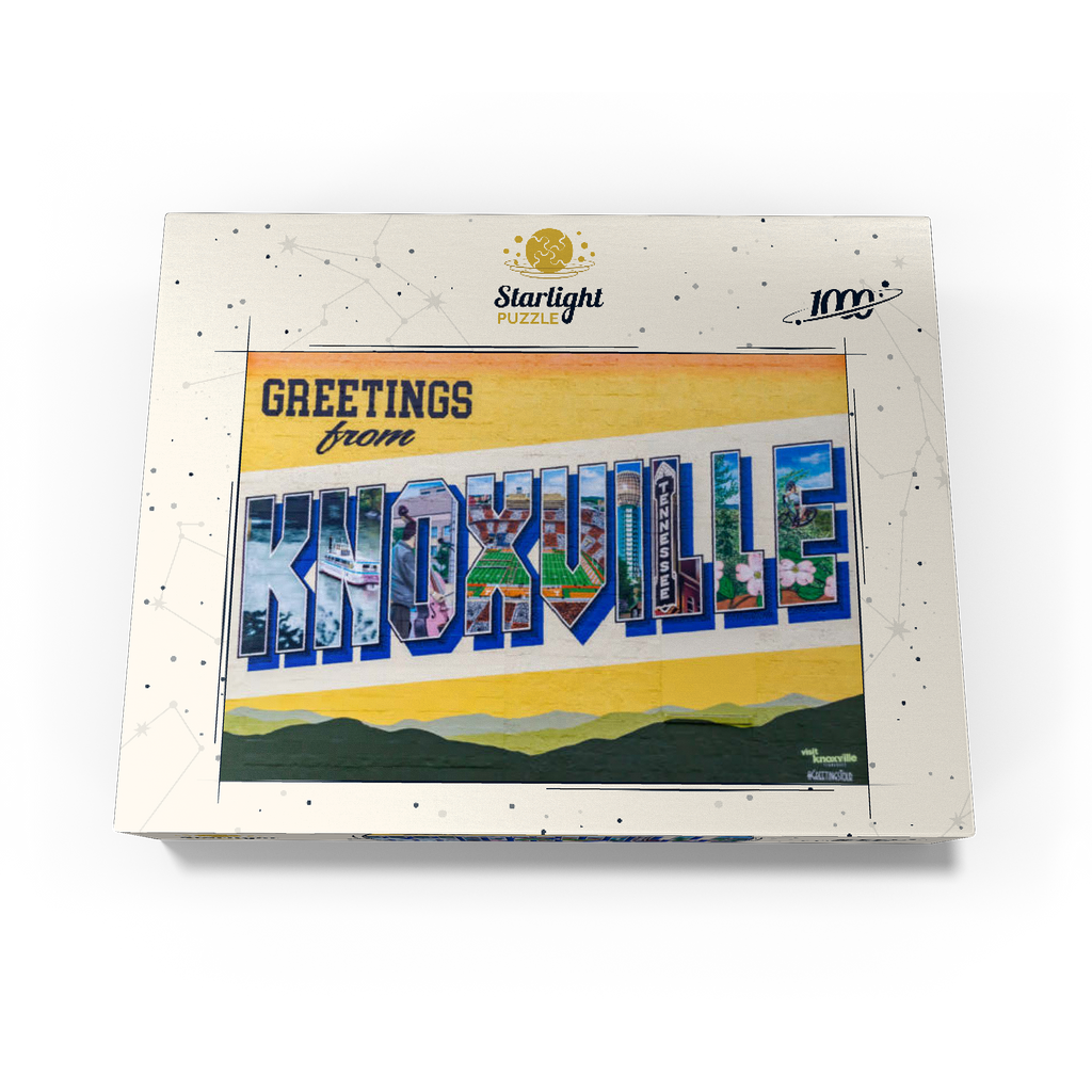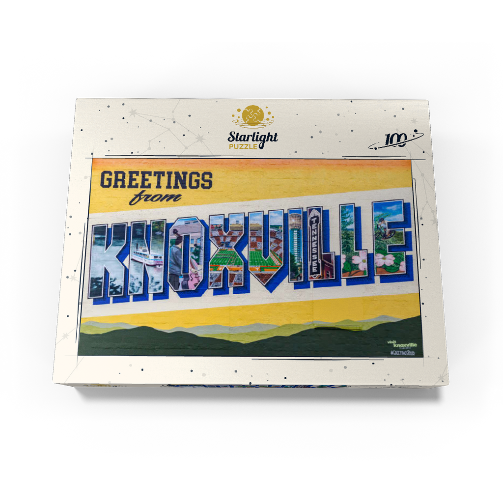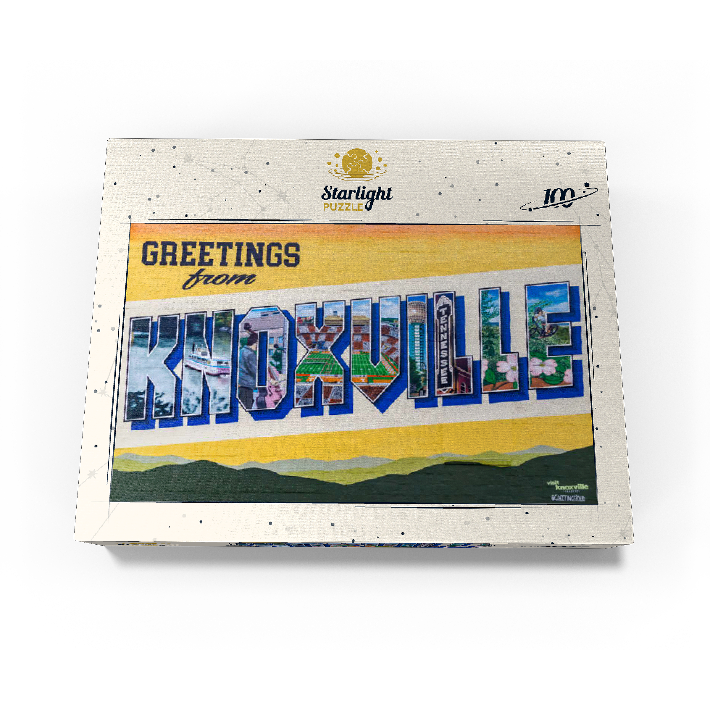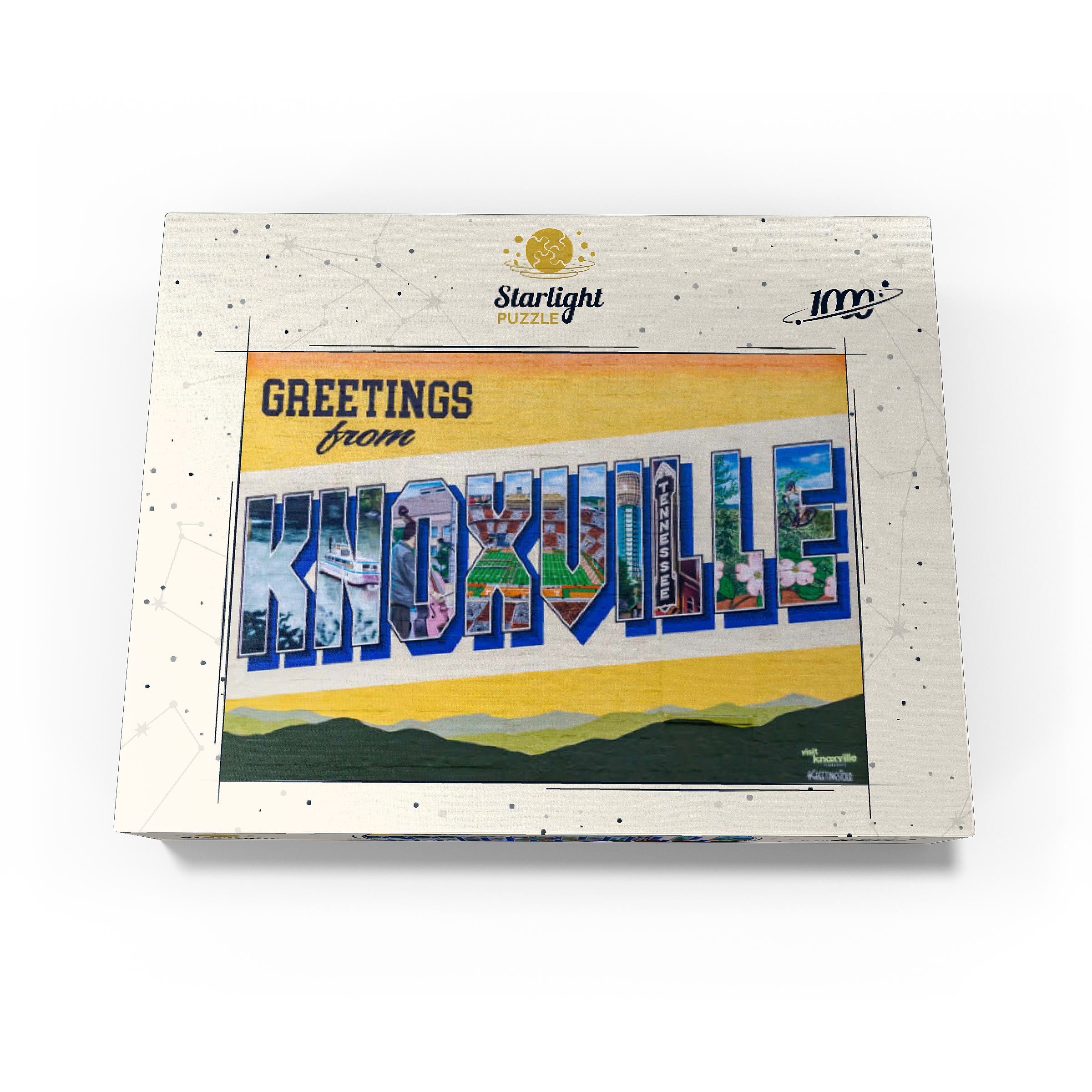This vibrant and colorful mural titled “Greetings from Knoxville, Tennessee” showcases iconic elements of the city’s identity through a retro postcard-style design. Each letter in the word "Knoxville" contains detailed artwork representing landmarks such as Neyland Stadium, the Sunsphere from the 1982 World’s Fair, the Tennessee Theatre marquee, and scenes of local culture like riverboats, live music, biking, and dogwood blossoms. Set against a warm gradient of orange and yellow, the mural captures the spirit of this historic Southern city. Located in downtown Knoxville, this mural is a popular photo spot for both visitors and locals, celebrating the rich cultural heritage, natural beauty, and vibrant arts scene of East Tennessee. With its nostalgic style and local pride, this image perfectly embodies the welcoming charm of Knoxville.