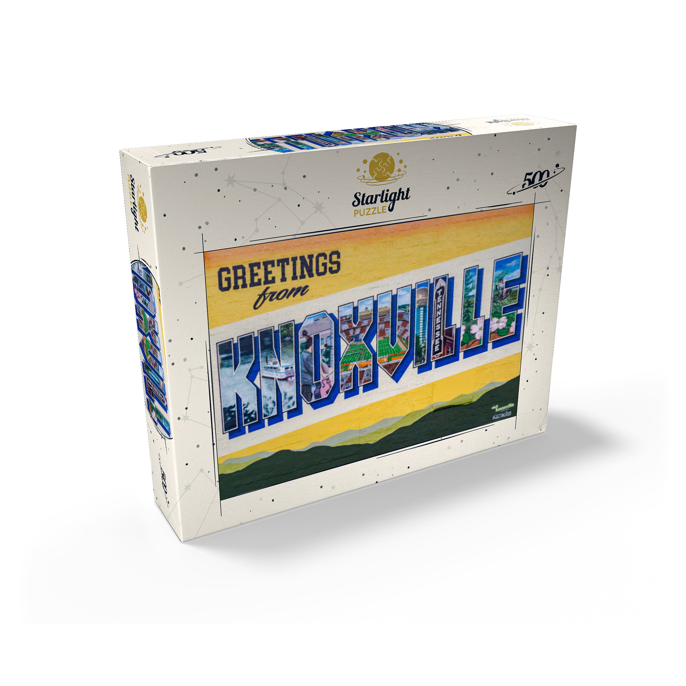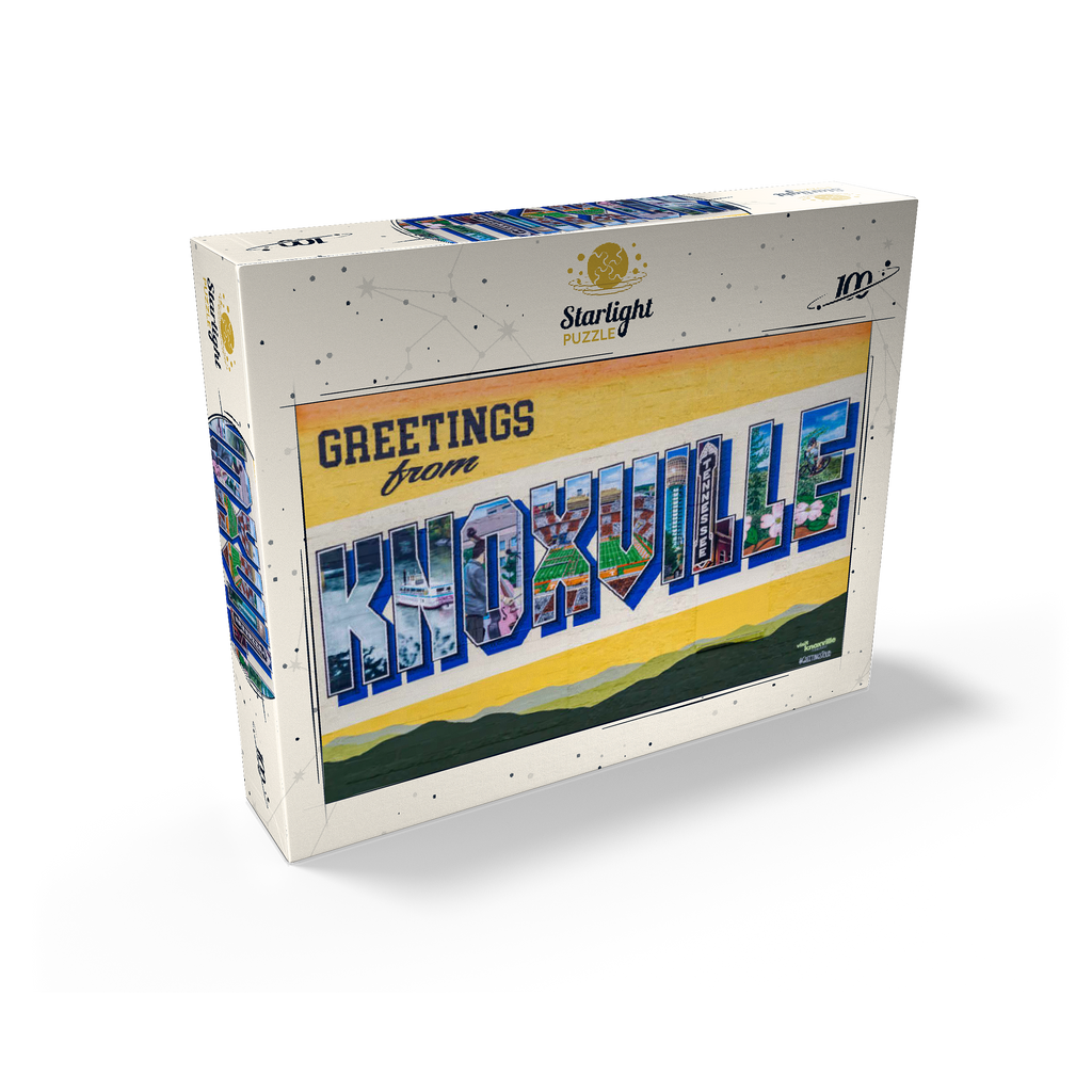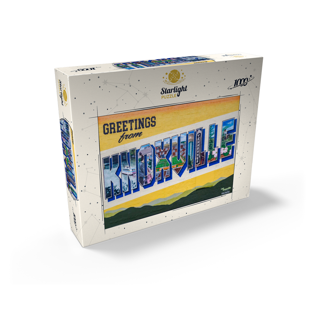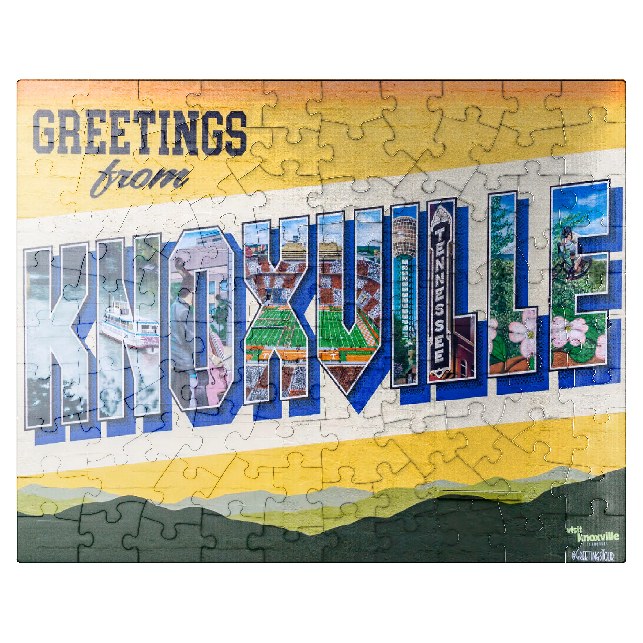 This vibrant and colorful mural titled “Greetings from Knoxville, Tennessee” showcases iconic elements of the city’s identity through a retro postcard-style design. Each letter in the word "Knoxville" contains detailed artwork representing landmarks such as Neyland Stadium, the Sunsphere from the 1982 World’s Fair, the Tennessee Theatre marquee, and scenes of local culture like riverboats, live music, biking, and dogwood blossoms. Set against a warm gradient of orange and yellow, the mural captures the spirit of this historic Southern city. Located in downtown Knoxville, this mural is a popular photo spot for both visitors and locals, celebrating the rich cultural heritage, natural beauty, and vibrant arts scene of East Tennessee. With its nostalgic style and local pride, this image perfectly embodies the welcoming charm of Knoxville.