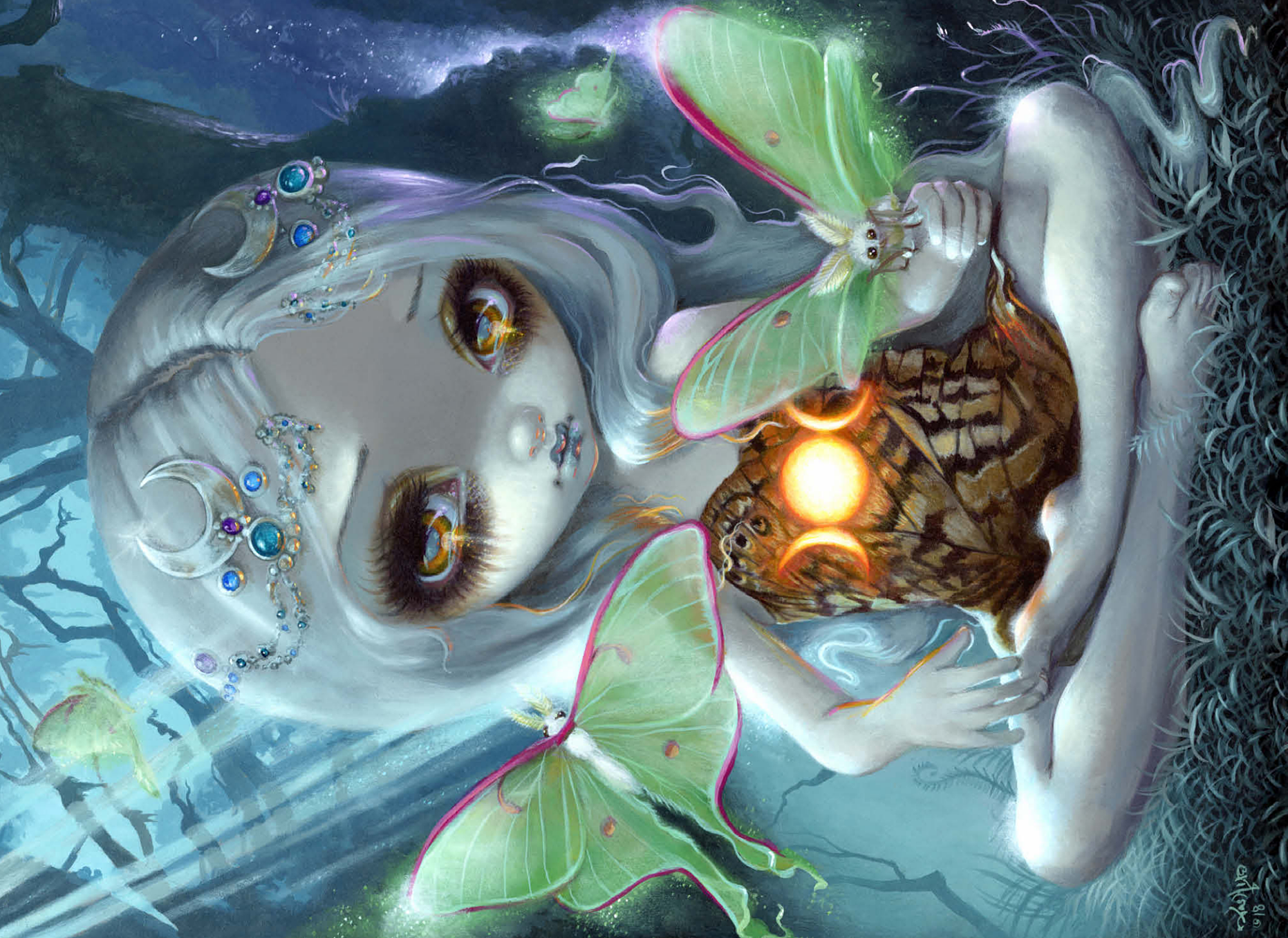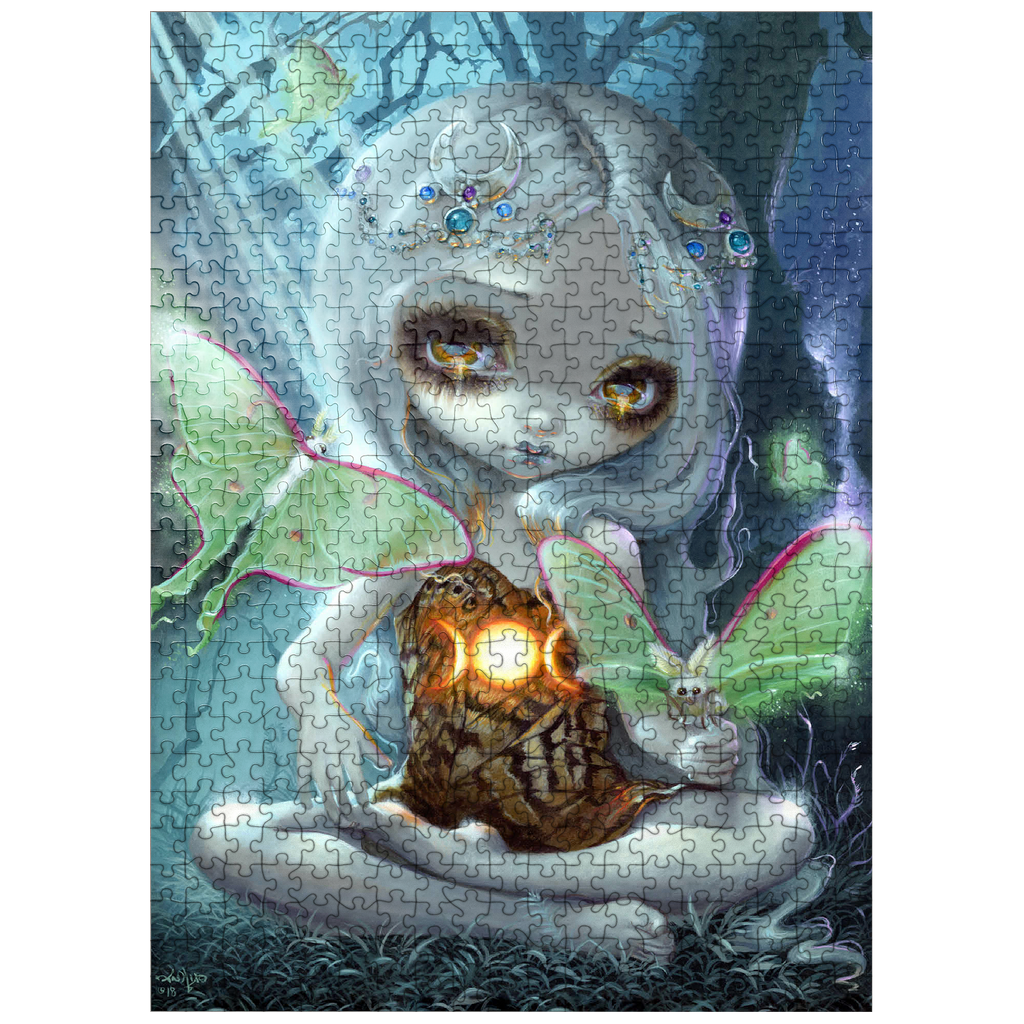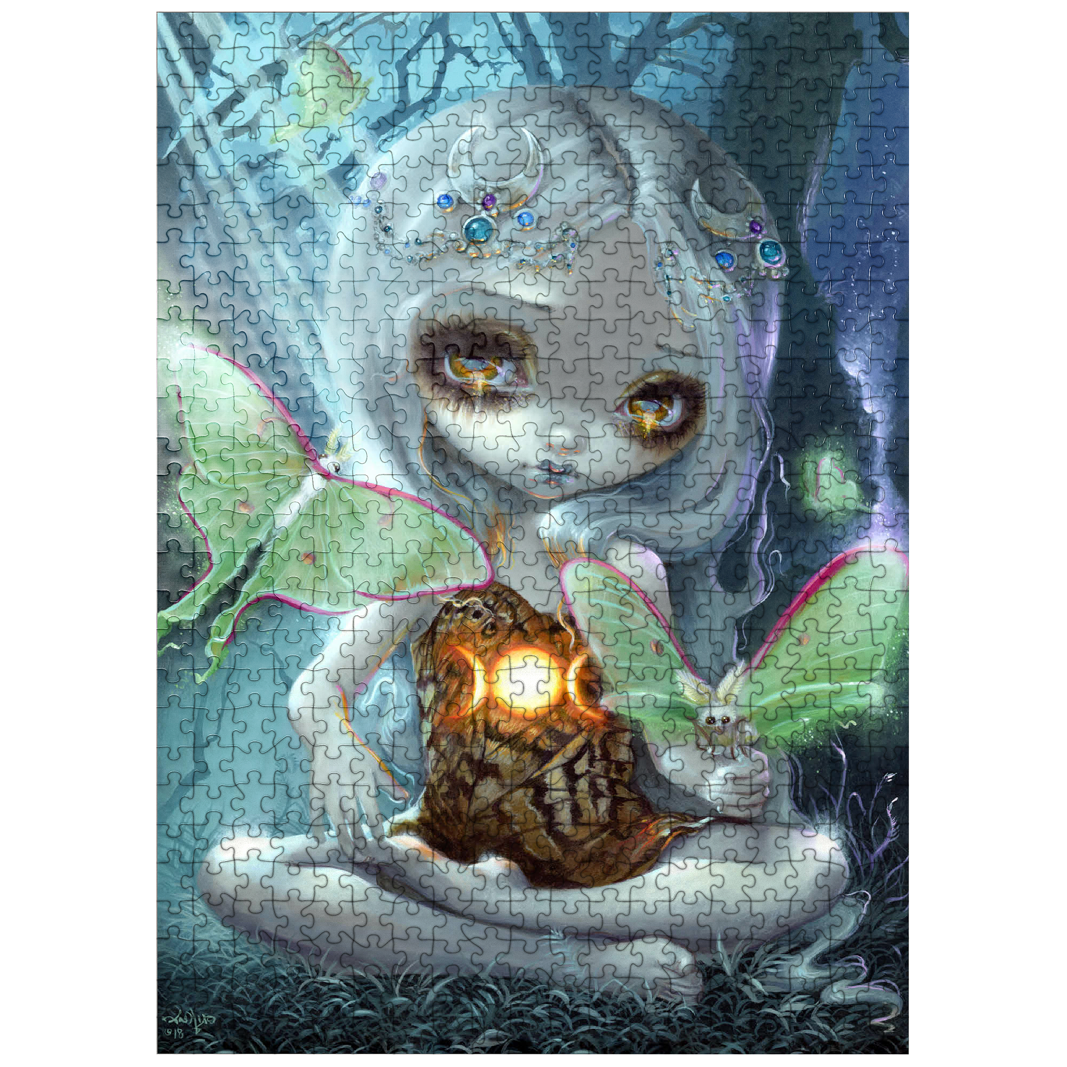 Experience the magic of the night with the beautiful Luna Moths puzzle. this enchanting artwork features a glowing moth fairy surrounded by ethereal, luminous Luna Moths. capture the quiet beauty of this fantastical scene piece by piece. a captivating, high-quality jigsaw for lovers of moth art, glowing fantasy, and mystical fairy designs. add this stunning piece to your puzzle collection!