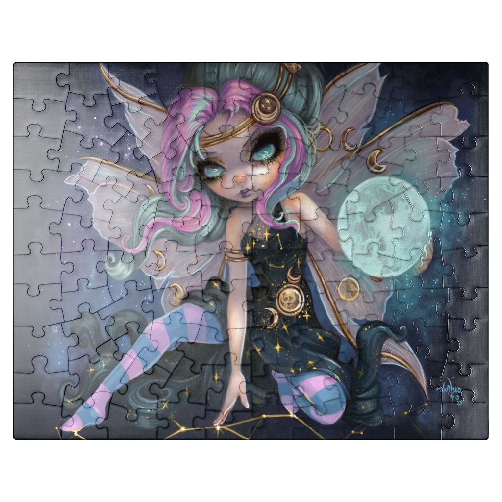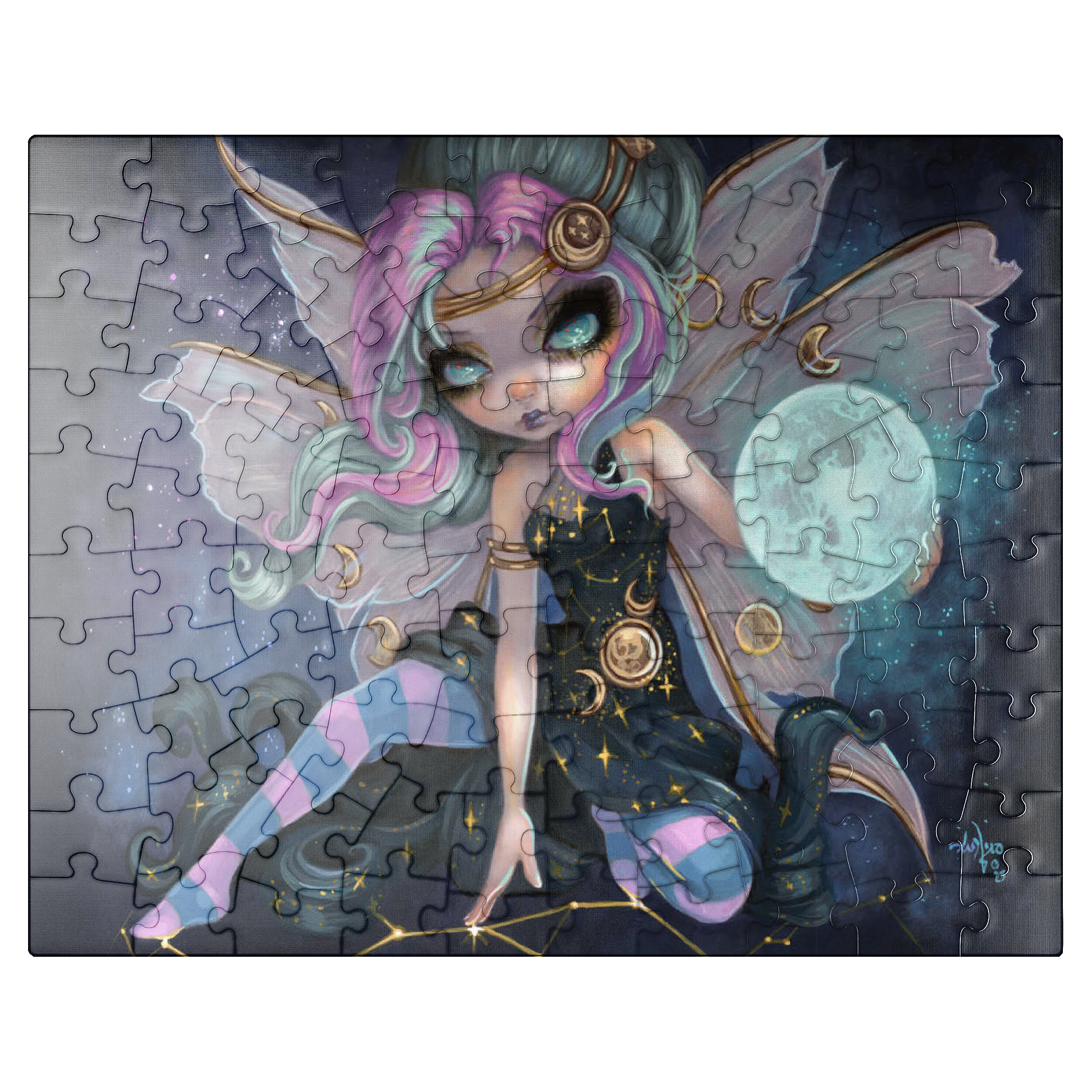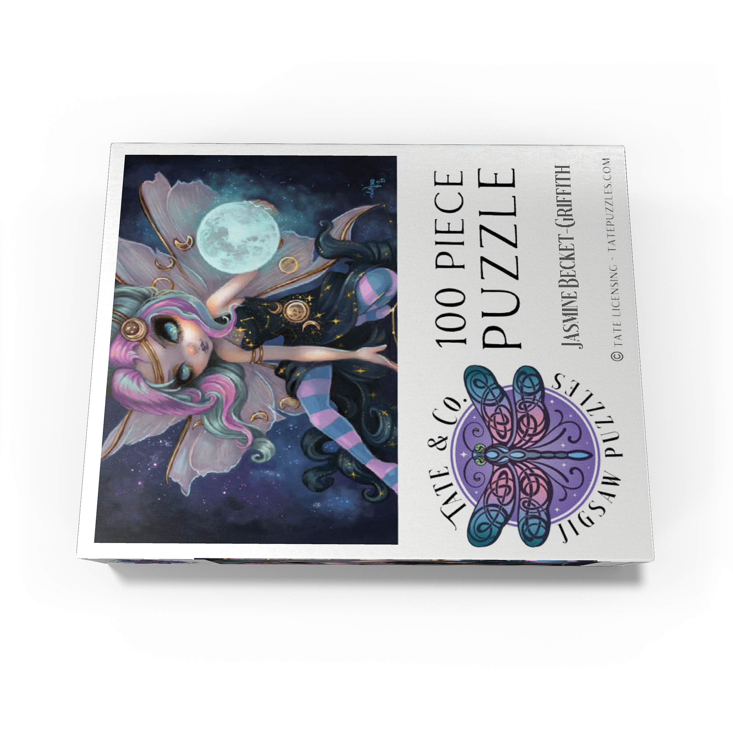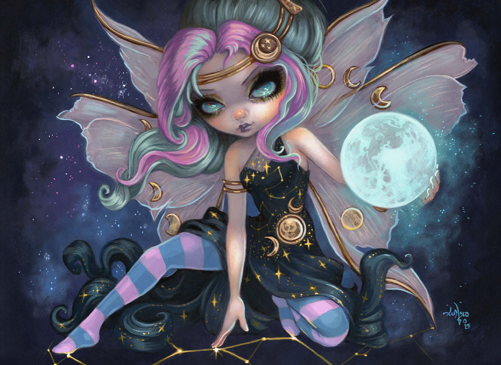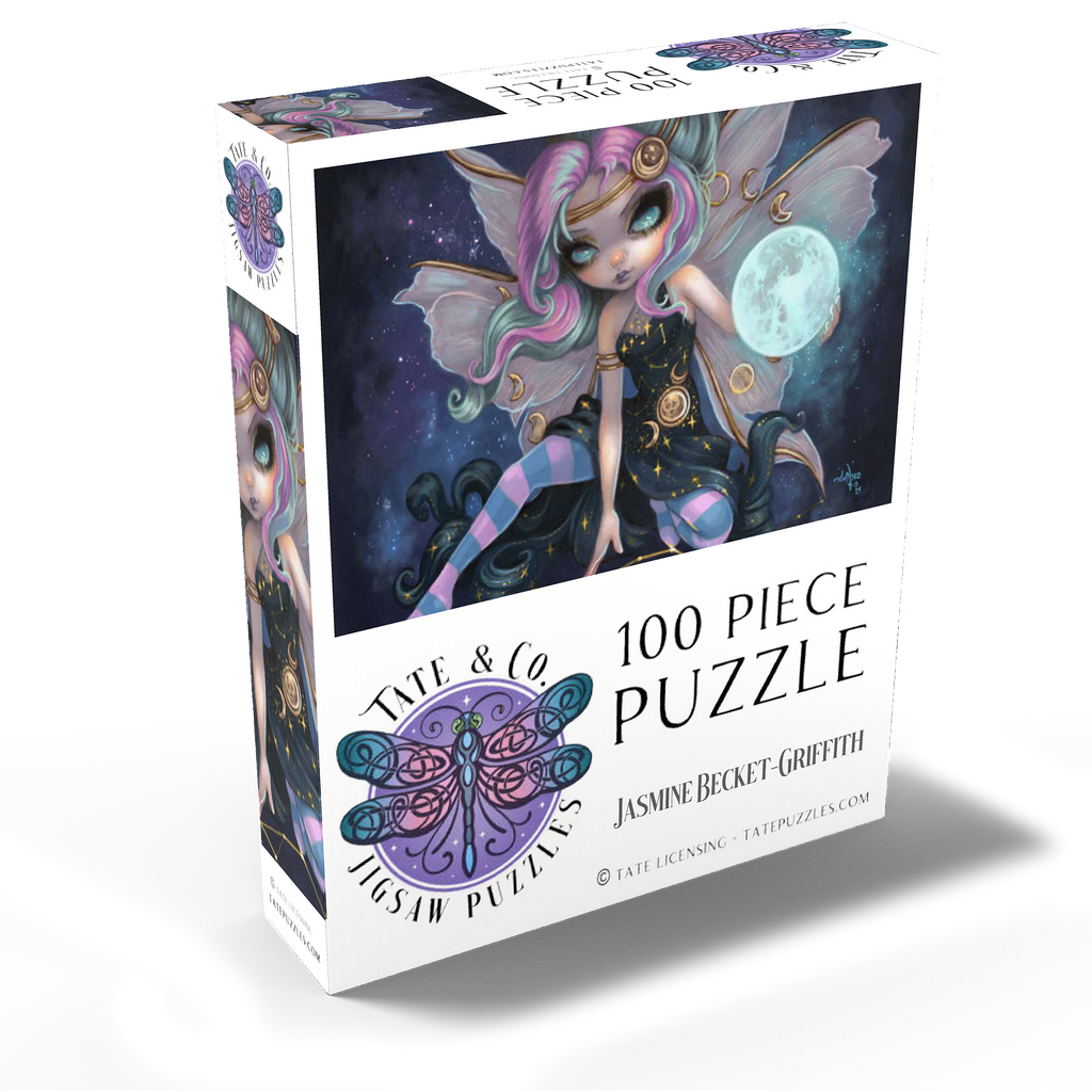 Glimmering among the stars, the captivating Onyx Moonshadow puzzle features a beautiful celestial Strangeling fairy. Shining darkly in the constellations, she elegantly holds the Moon in the palm of her hand. This beloved, dark fantasy artwork captures the mystique of the cosmos and the magic of the night sky. Assemble this favorite fairy painting and bring the lunar shadow to life. A stunning puzzle for celestial and fantasy art fans!